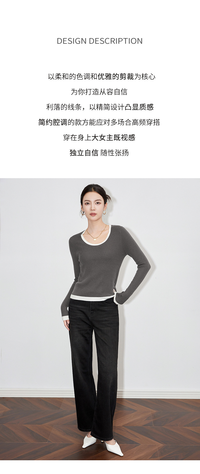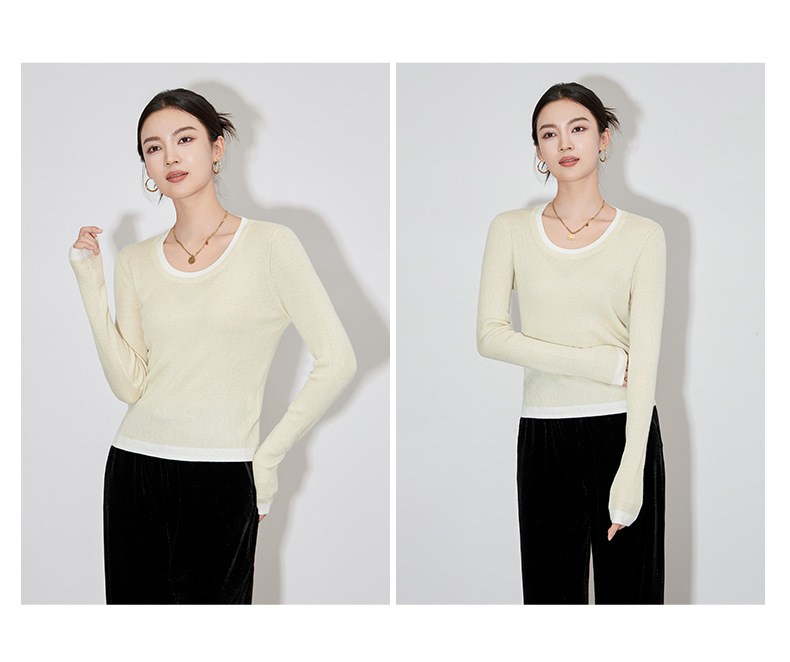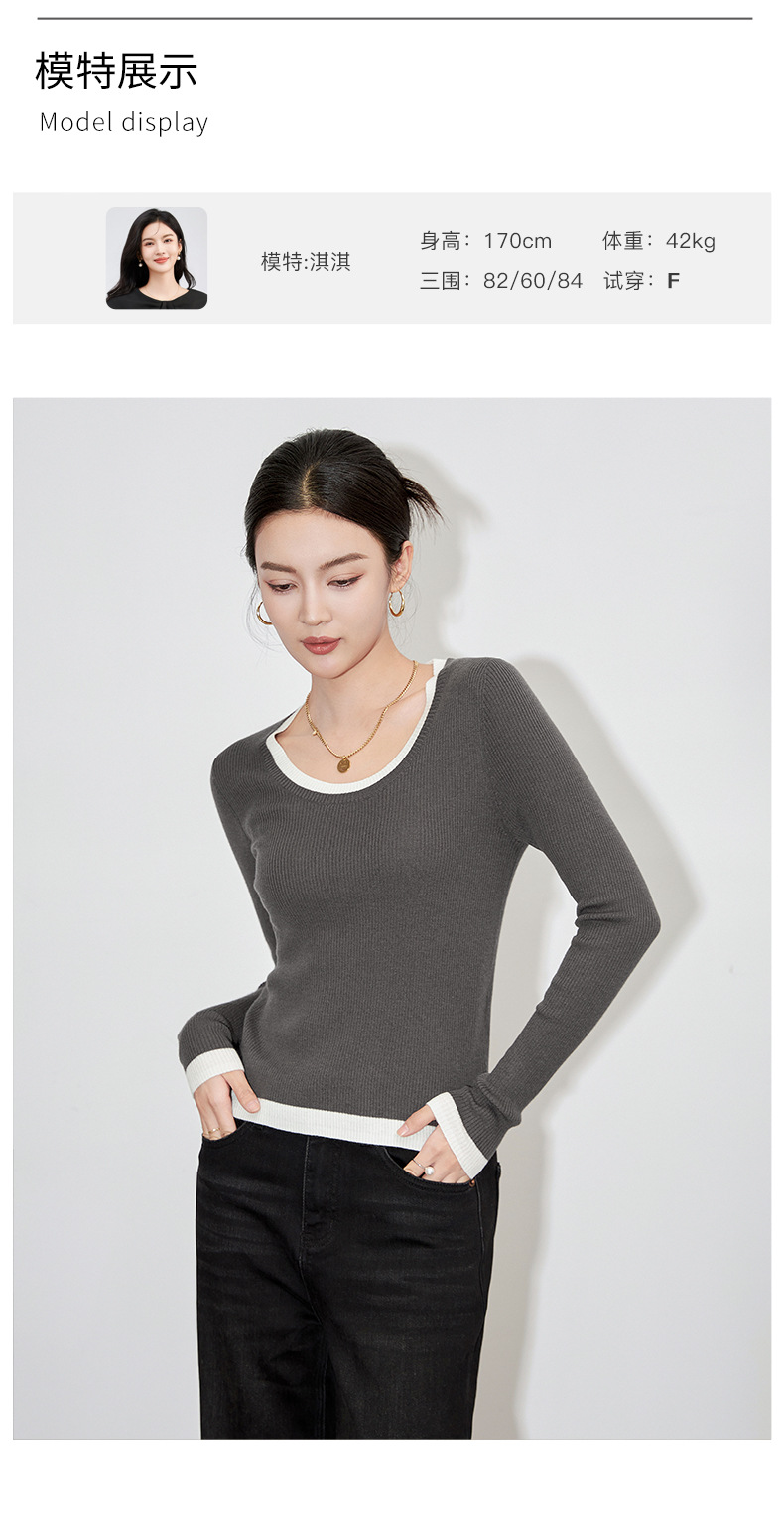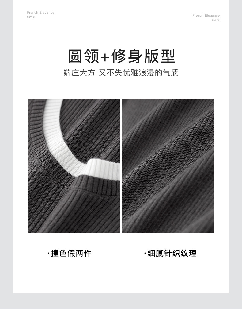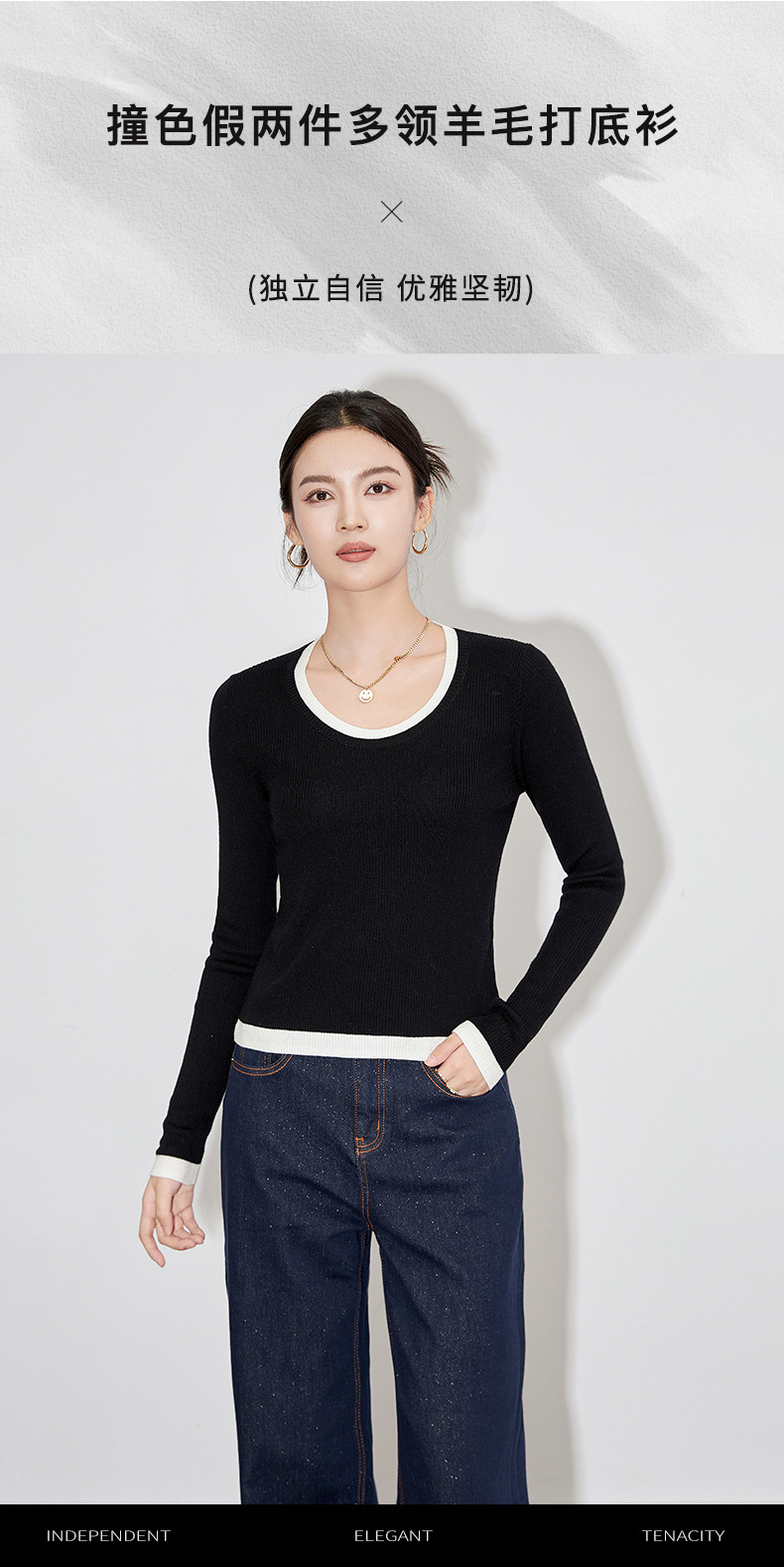 【高货wl】全新升级【铂金会员165/天猫229/差价64】(10016) 洛诗琳撞色假两件针织打底衫秋冬羊毛混纺百搭圆领上衣