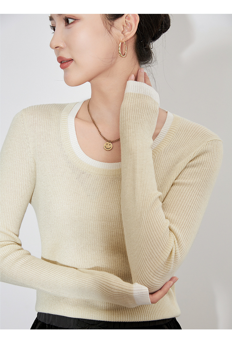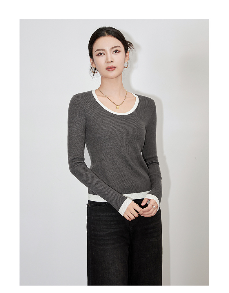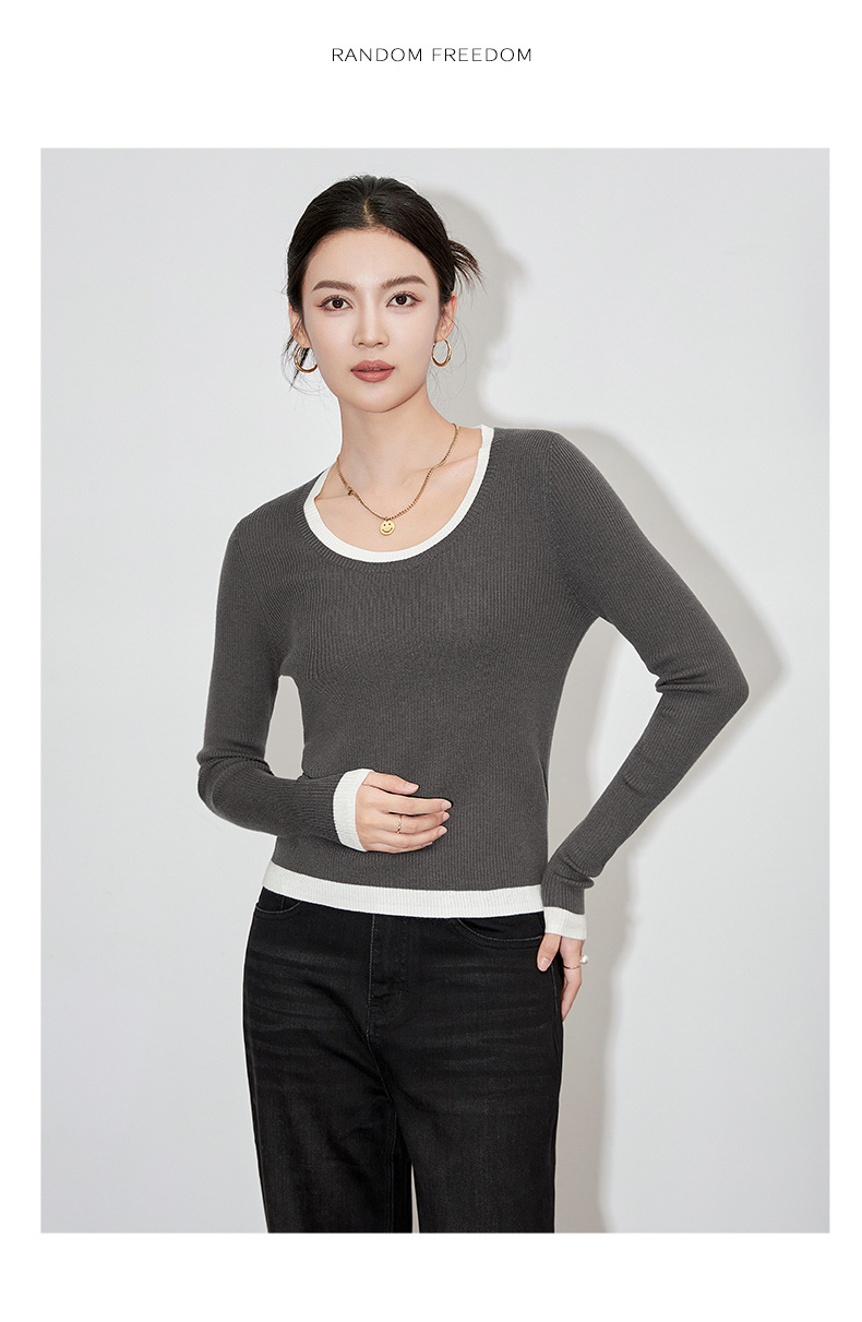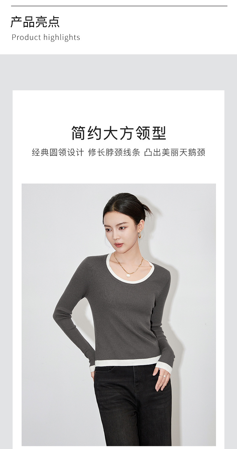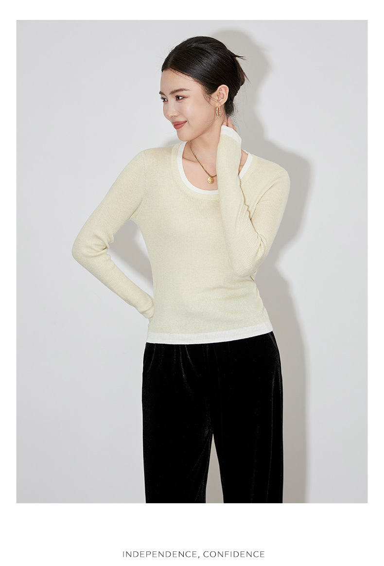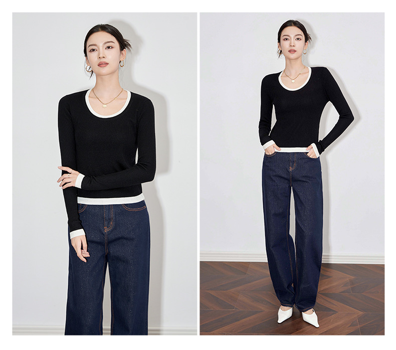 【高货wl】全新升级【铂金会员165/天猫229/差价64】(10016) 洛诗琳撞色假两件针织打底衫秋冬羊毛混纺百搭圆领上衣