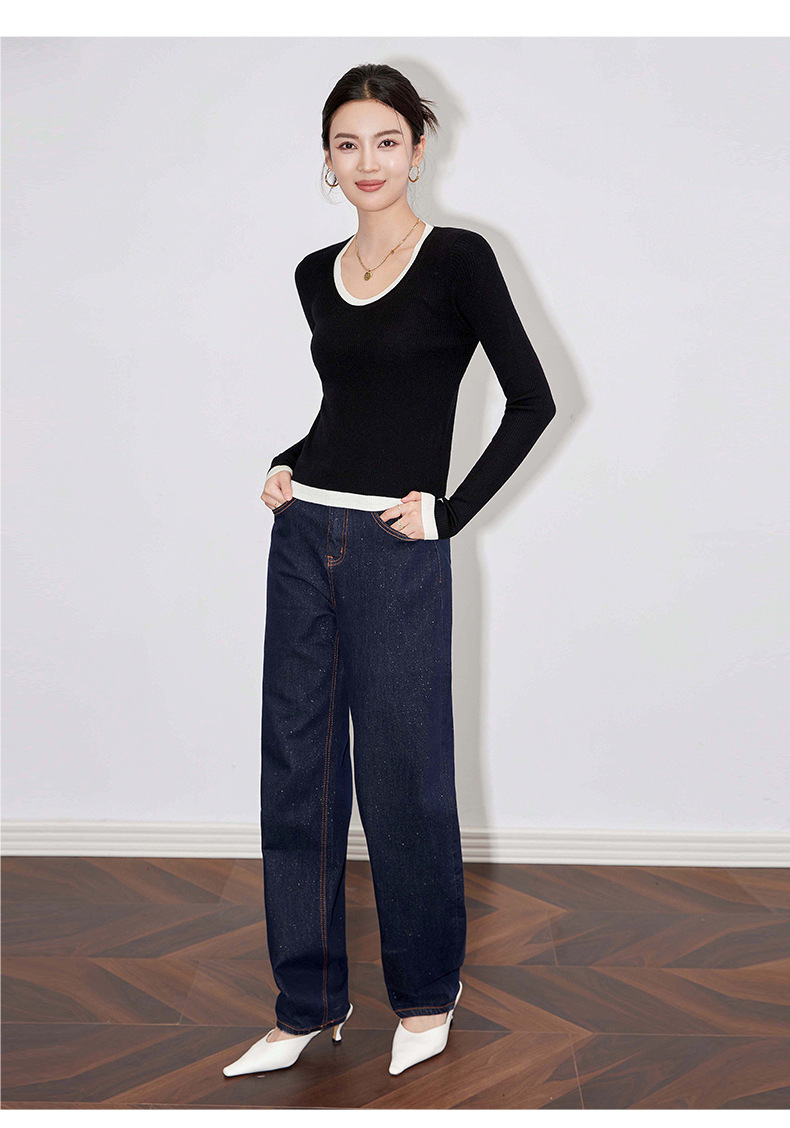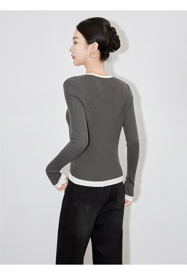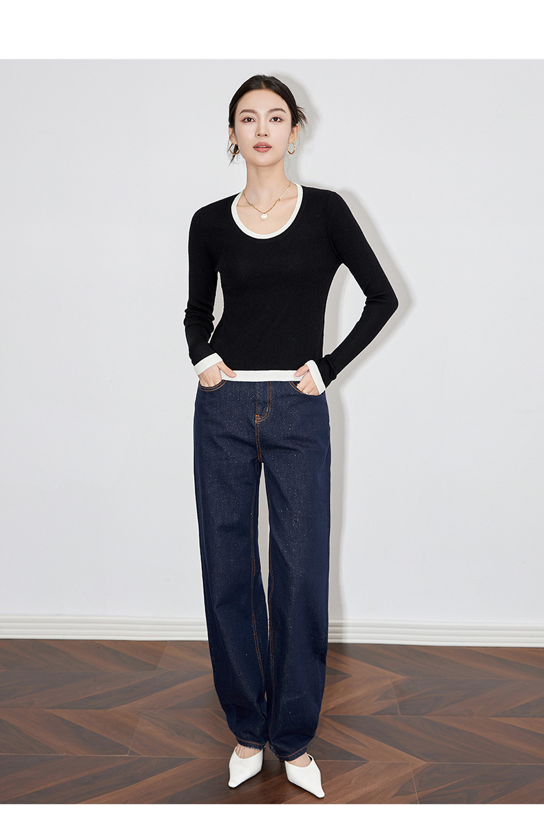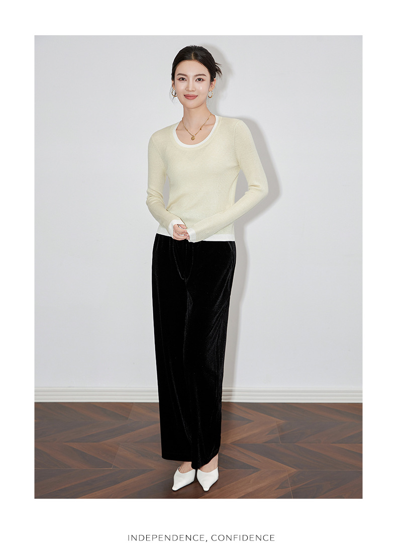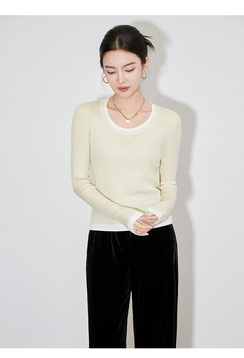 【高货wl】全新升级【铂金会员165/天猫229/差价64】(10016) 洛诗琳撞色假两件针织打底衫秋冬羊毛混纺百搭圆领上衣