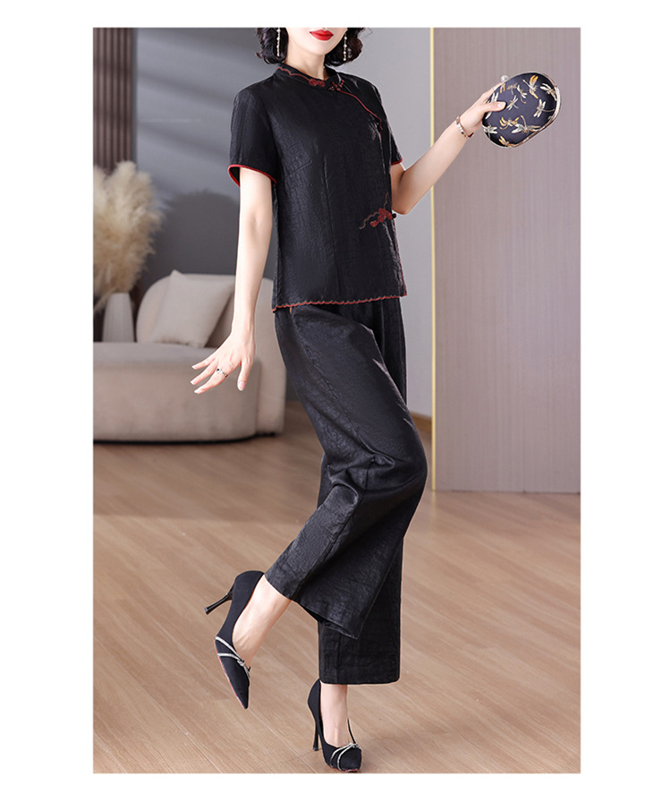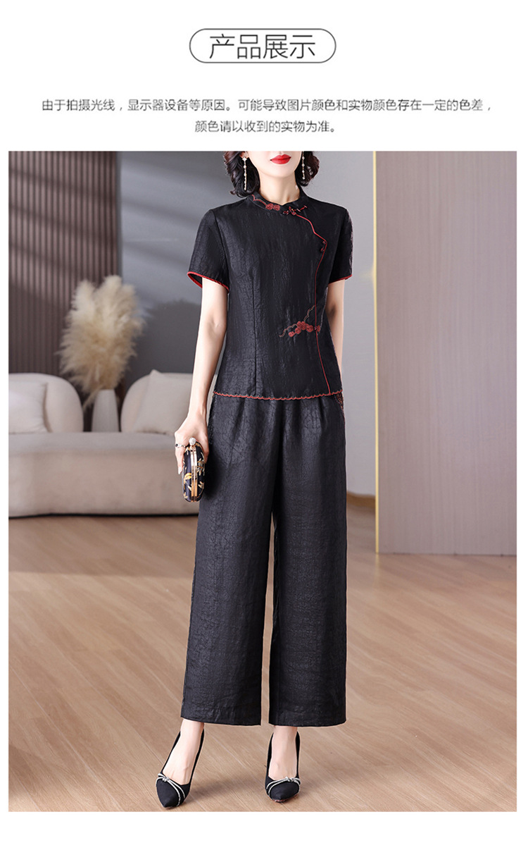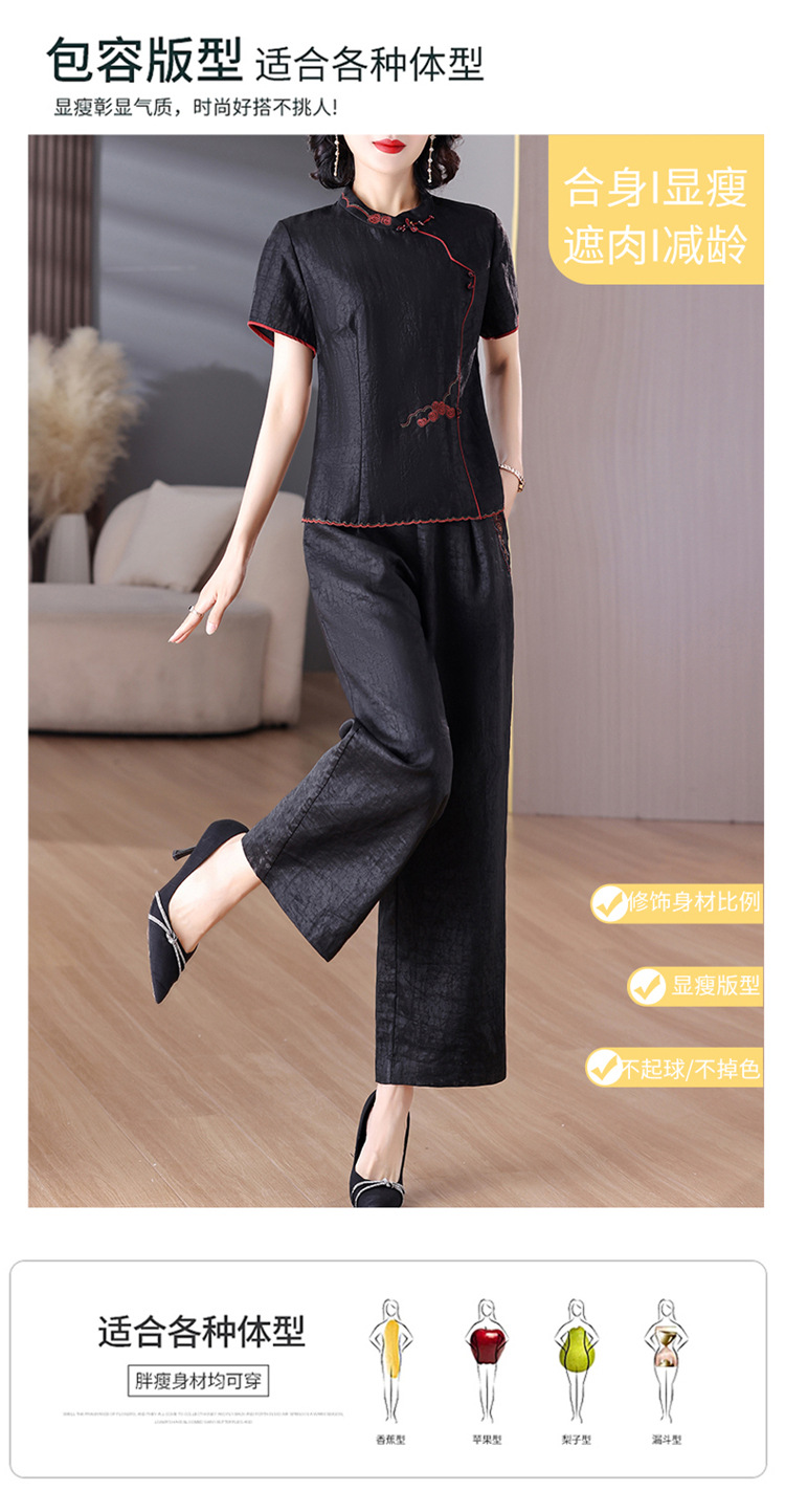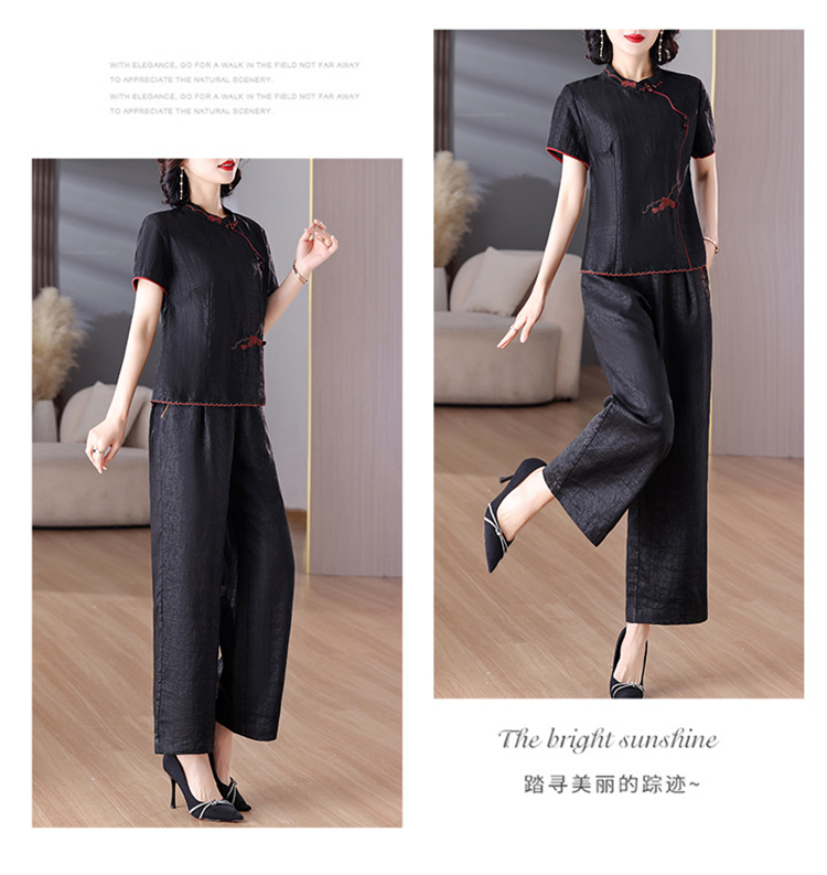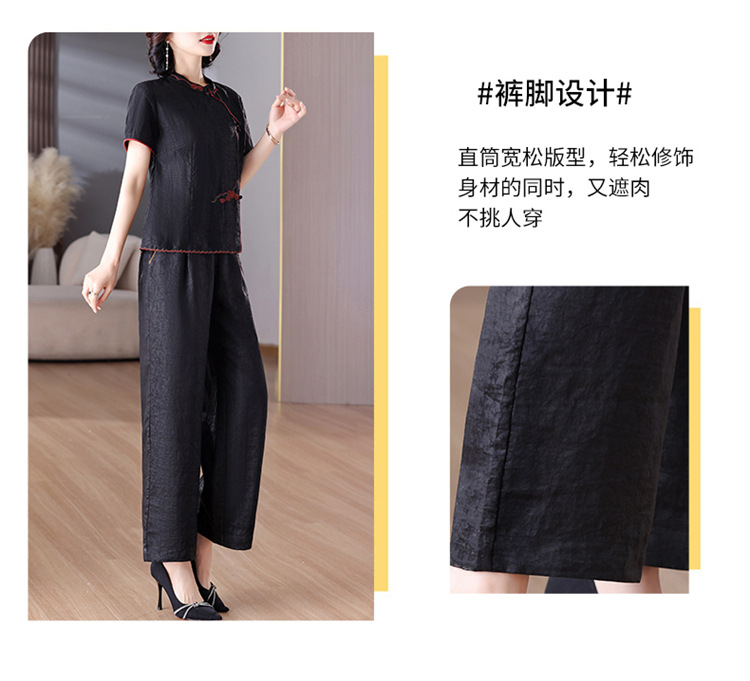 A8925新中式香云纱套装女国风真丝衬衫两件套高端桑蚕丝阔腿裤2025