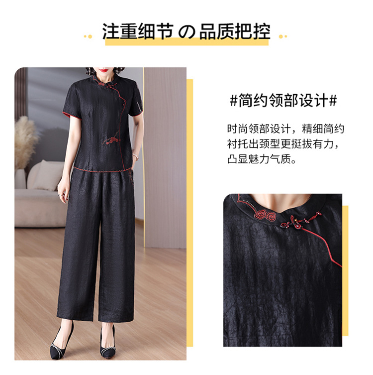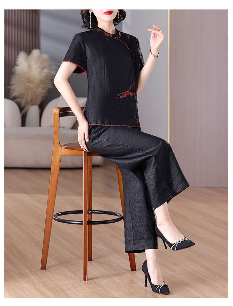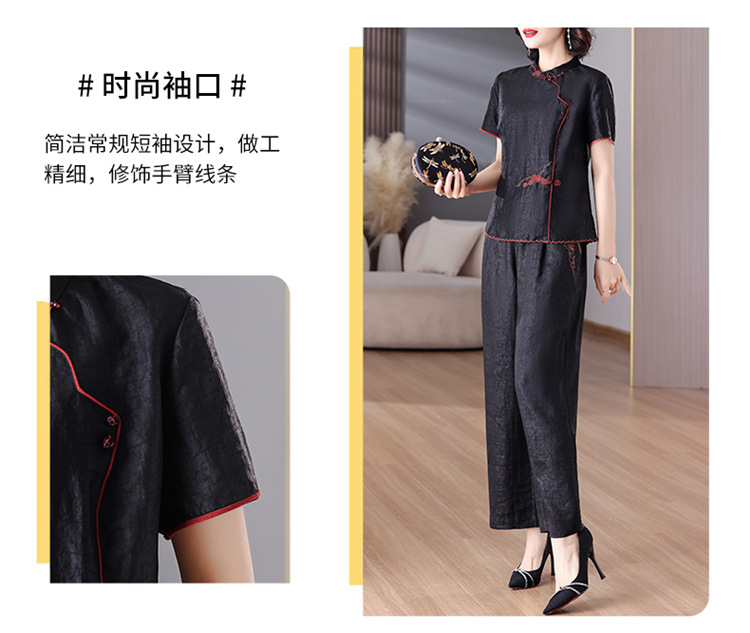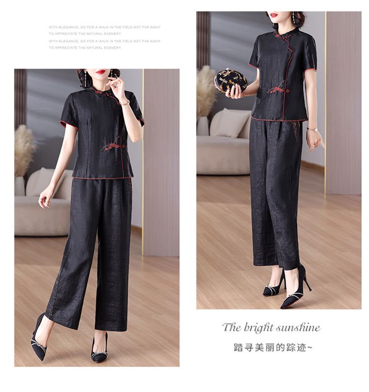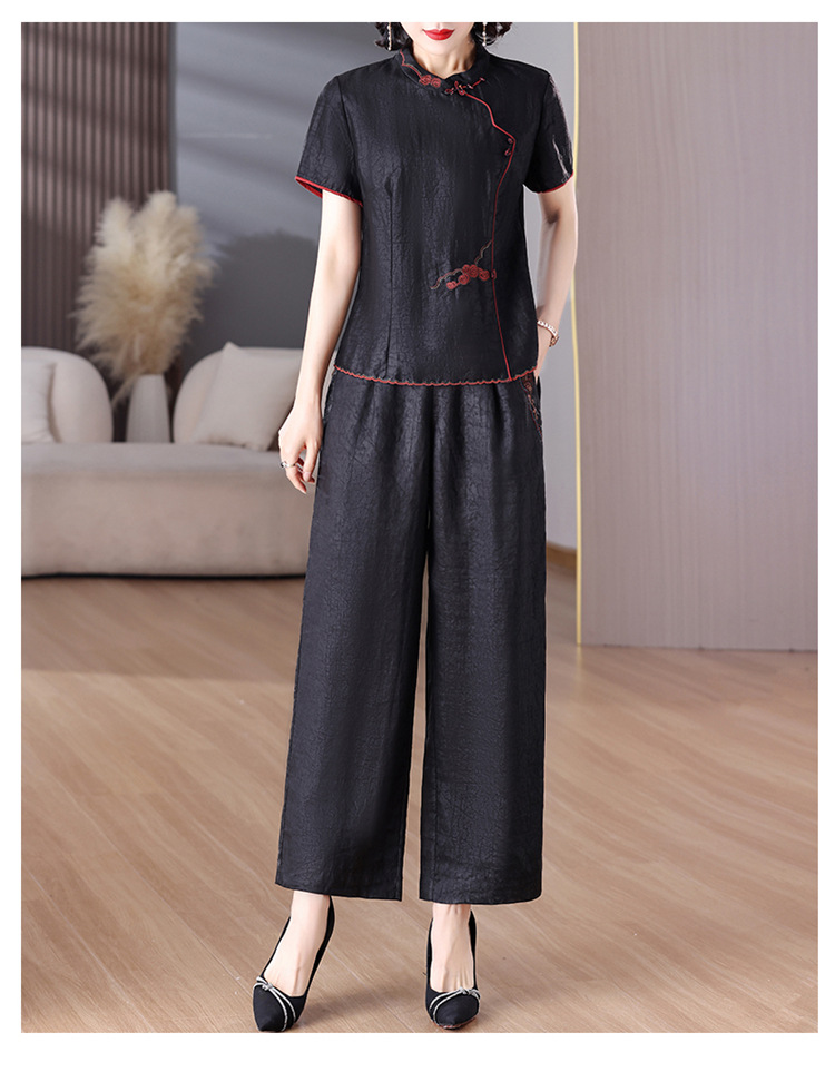 A8925新中式香云纱套装女国风真丝衬衫两件套高端桑蚕丝阔腿裤2025