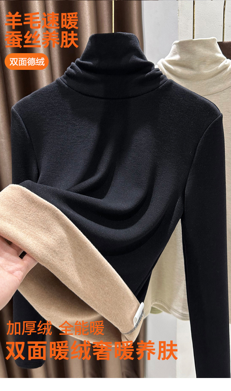 【自】全新升级【铂金会员109/天猫149/差价40】(03154) 洛诗琳堆堆领女冬季高领羊毛桑蚕丝内衣德绒加绒打底上衣
