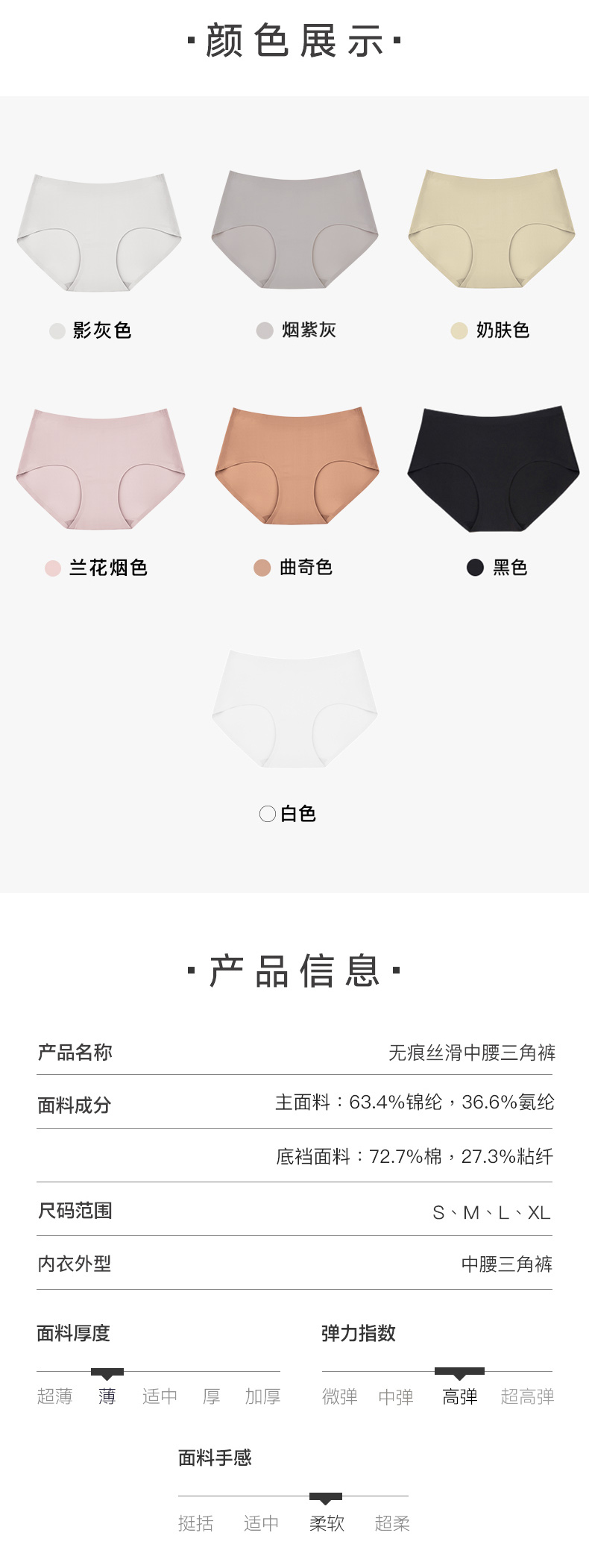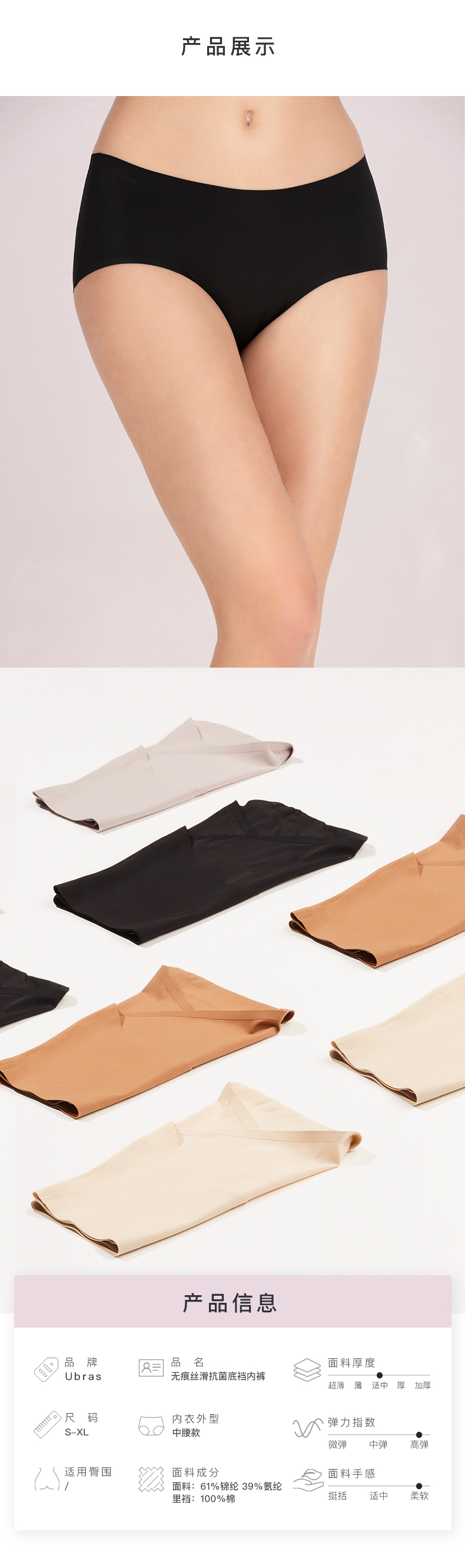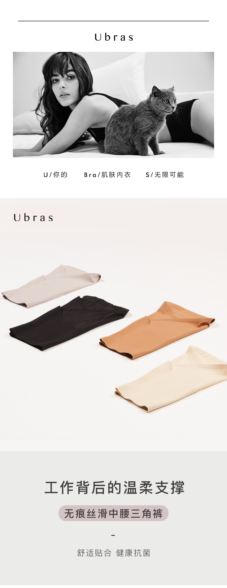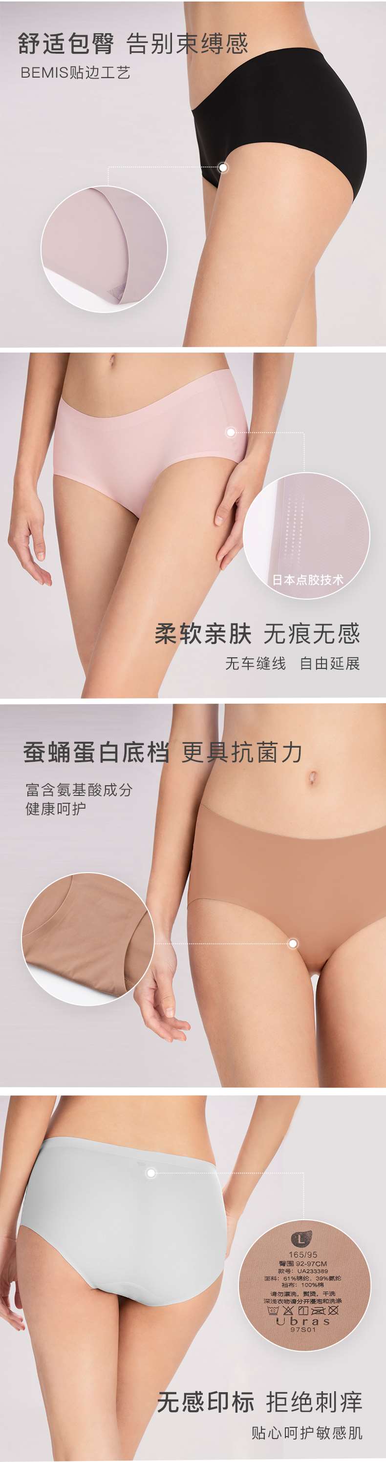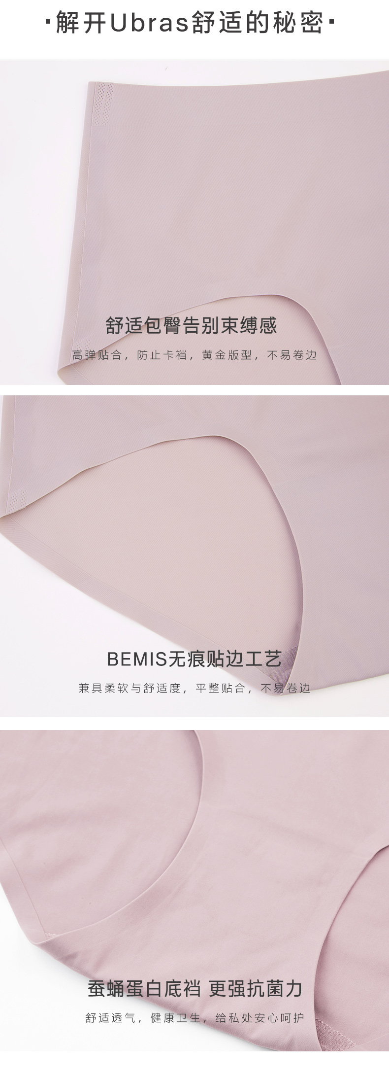 Ubras无痕丝滑中腰内裤透气高弹蚕蛹蛋白三角裤2件装