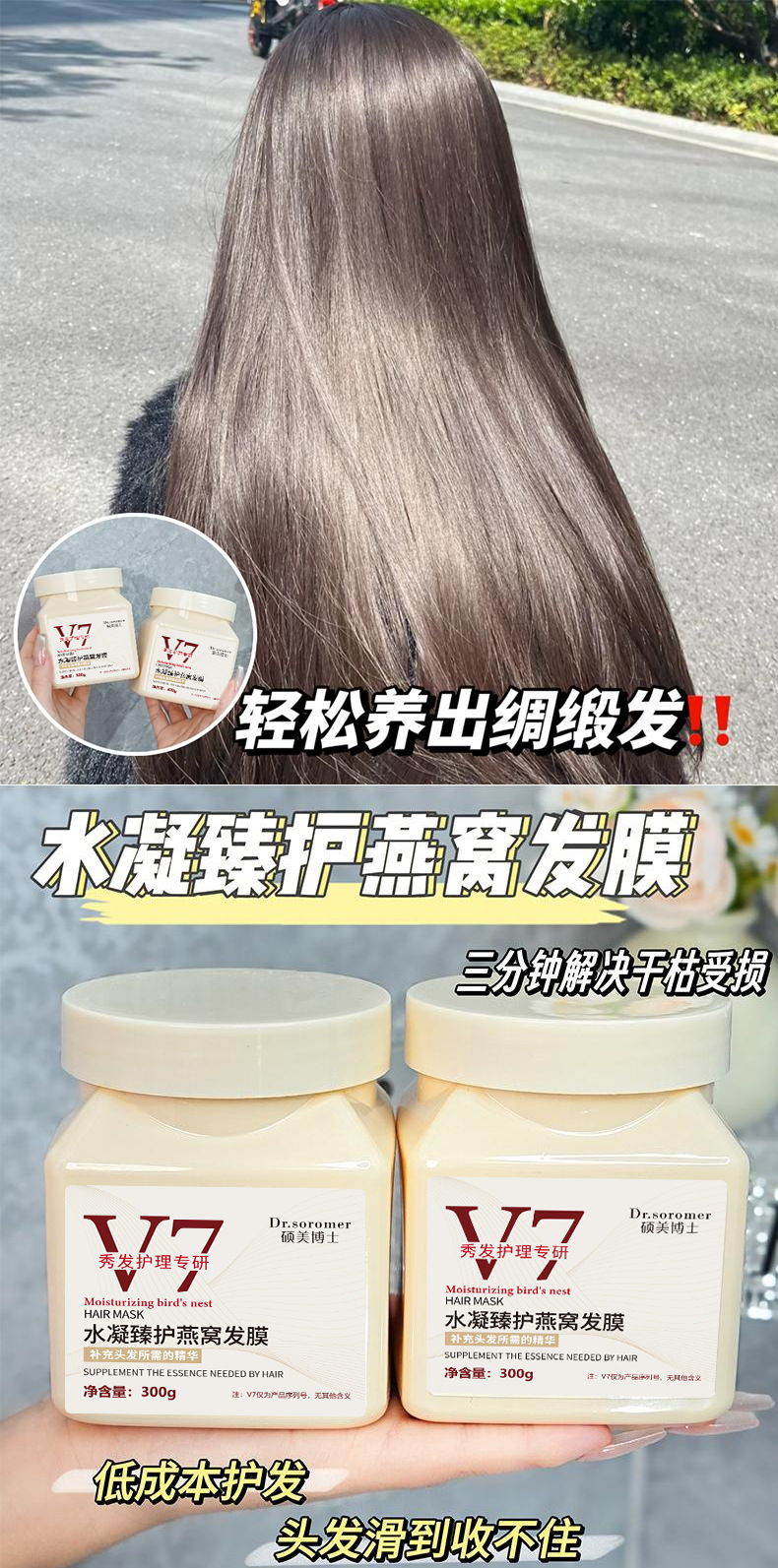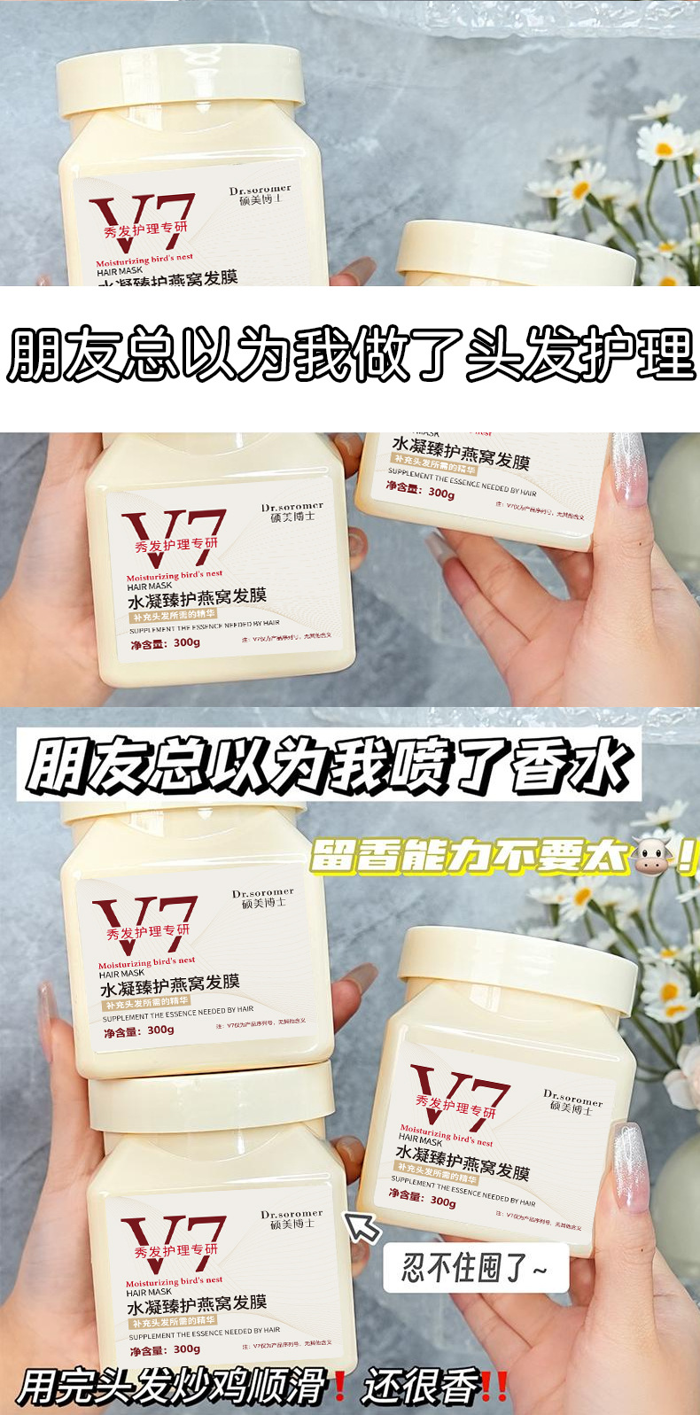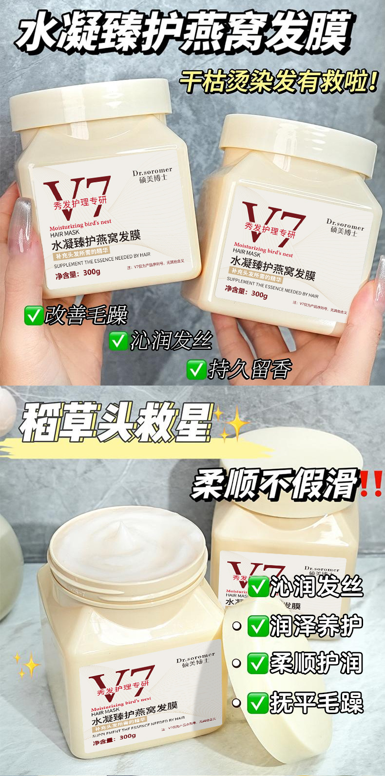 【稻草头救星,柔顺不假滑~】硕美博士v7水凝臻护燕窝发膜 头发修护 护理免蒸发膜 营养焗油护发膏-QQ