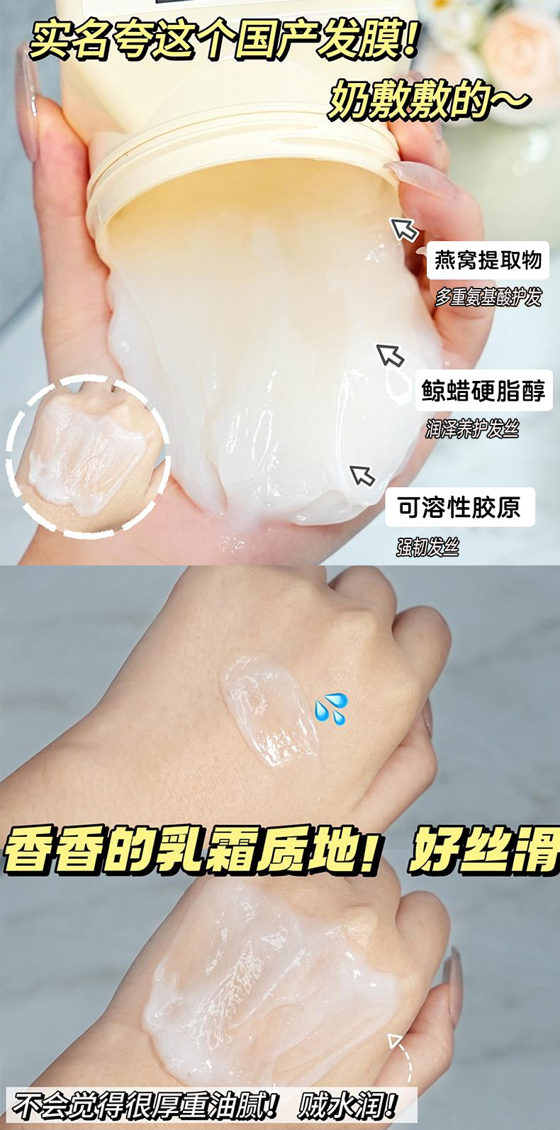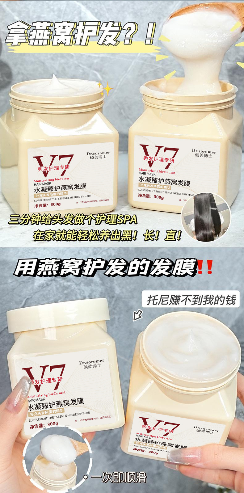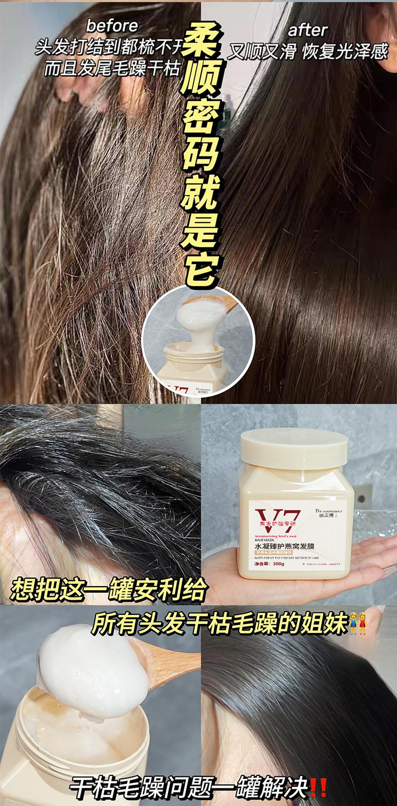 【稻草头救星,柔顺不假滑~】硕美博士v7水凝臻护燕窝发膜 头发修护 护理免蒸发膜 营养焗油护发膏-QQ