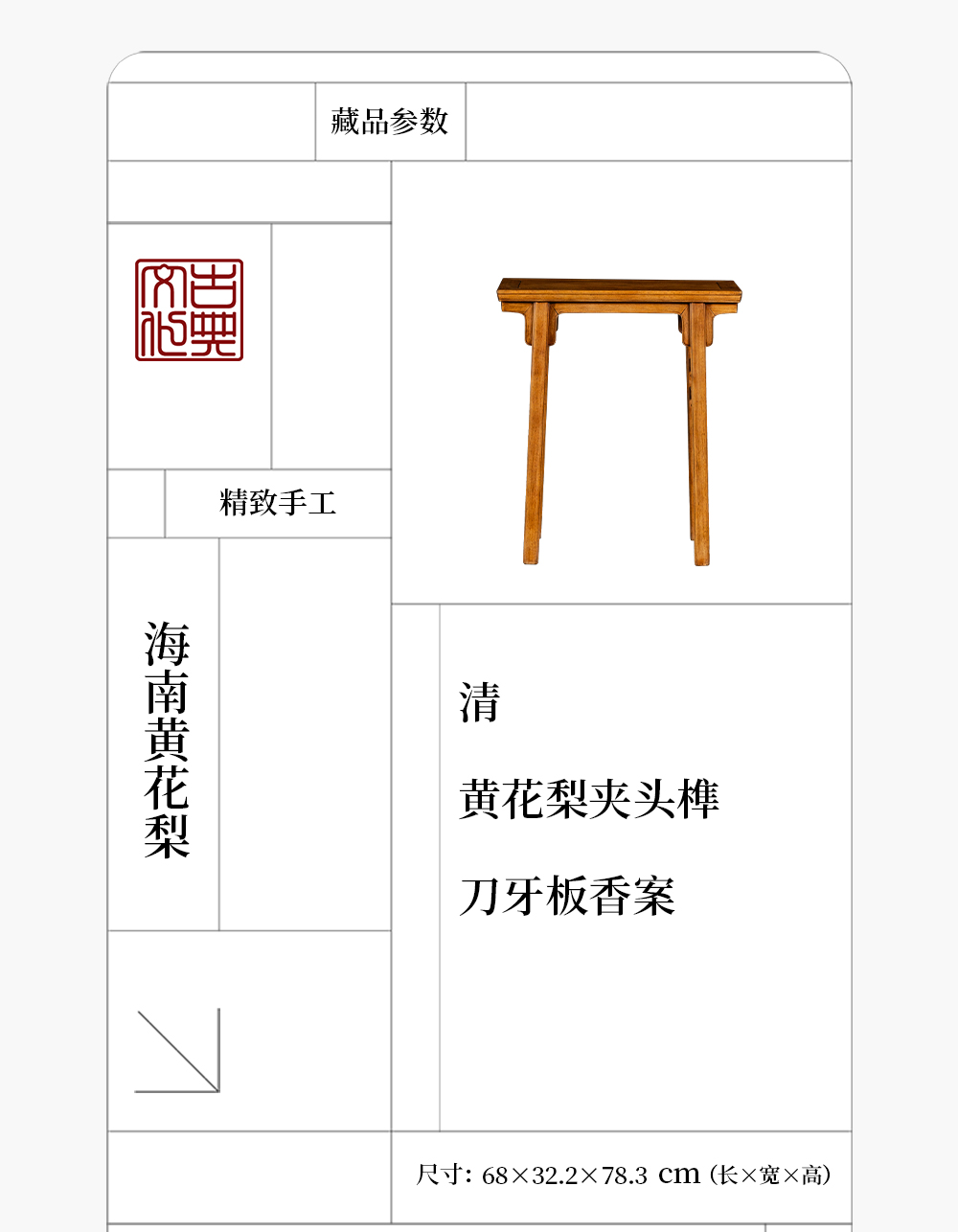 清 黄花梨夹头榫刀牙板香案