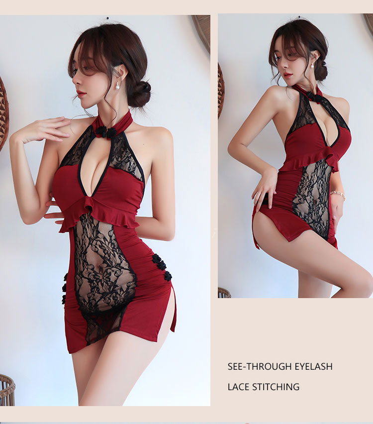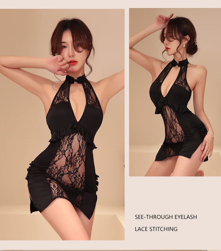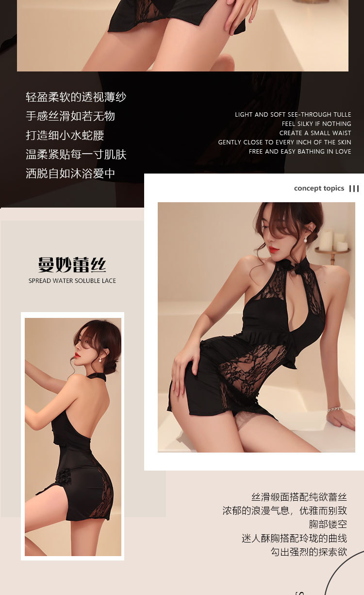 长夜漫漫情趣内衣复古旗袍风制服诱惑性感睡衣女激情透视睡裙1328