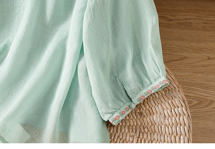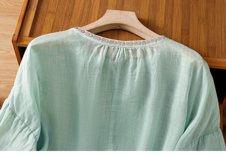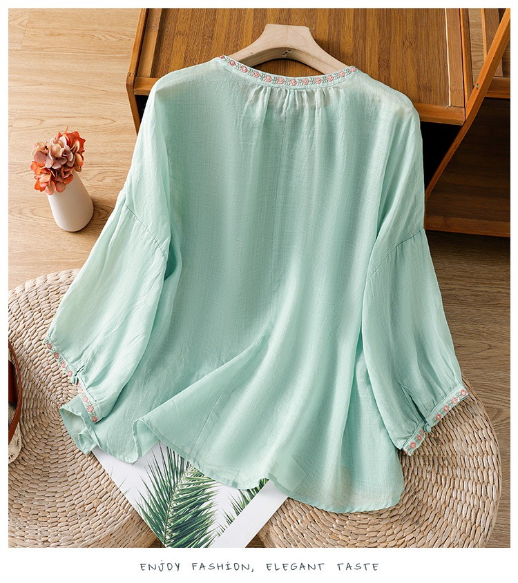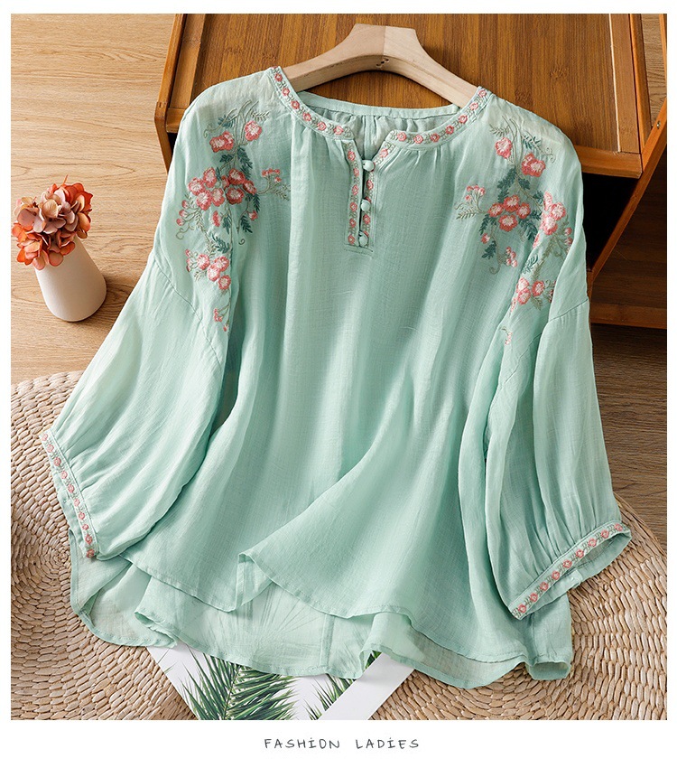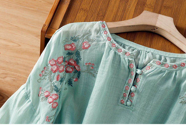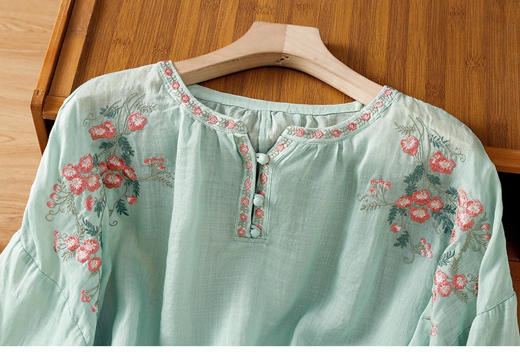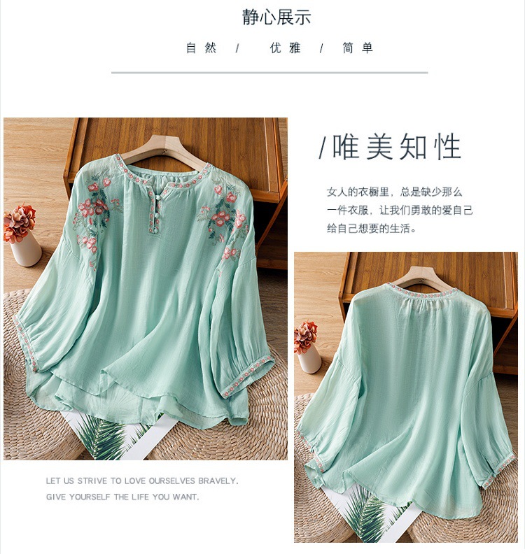 A80912025夏新款复古民族风改良文艺休闲棉麻刺绣宽松衬衫上衣女