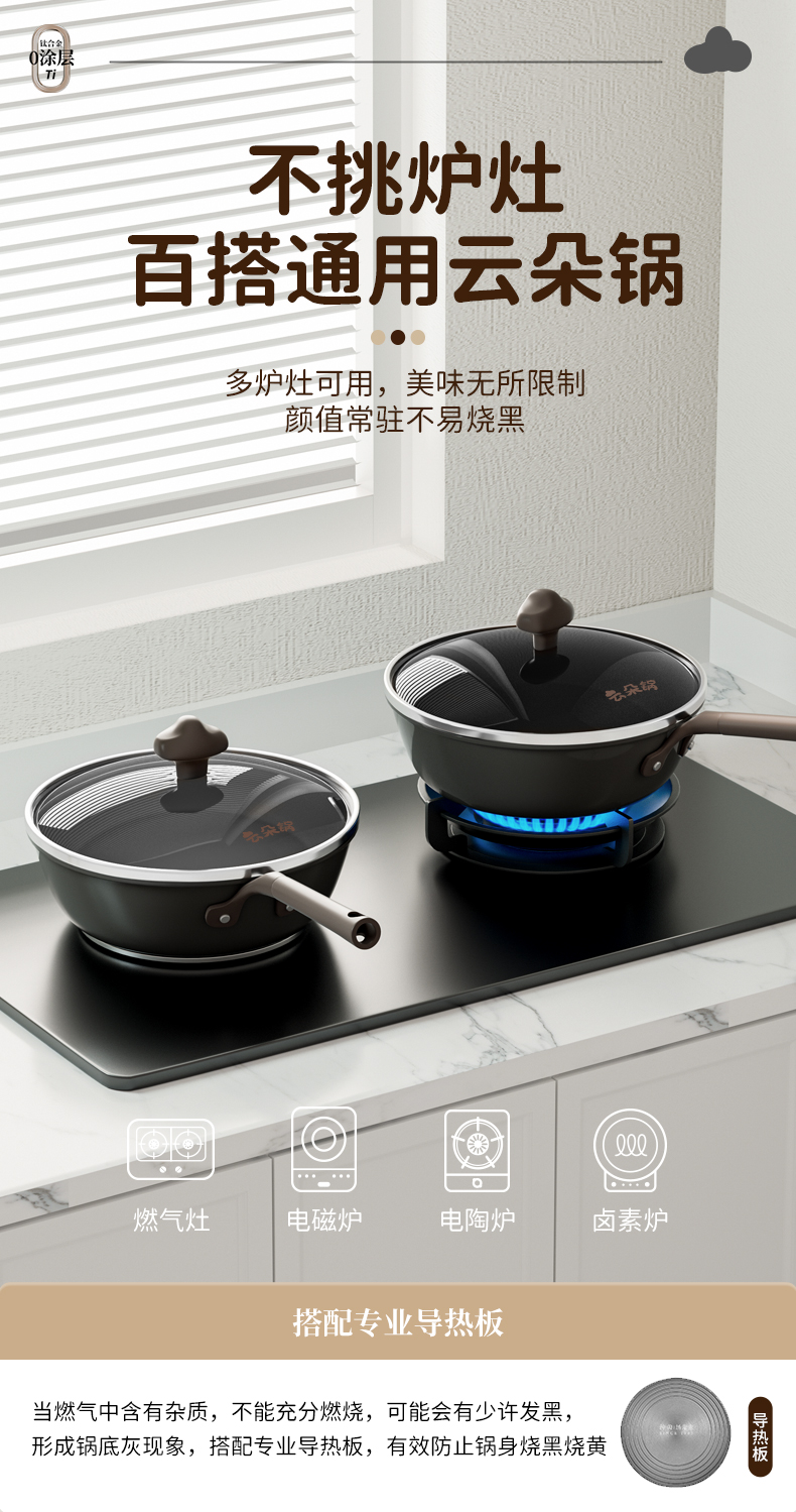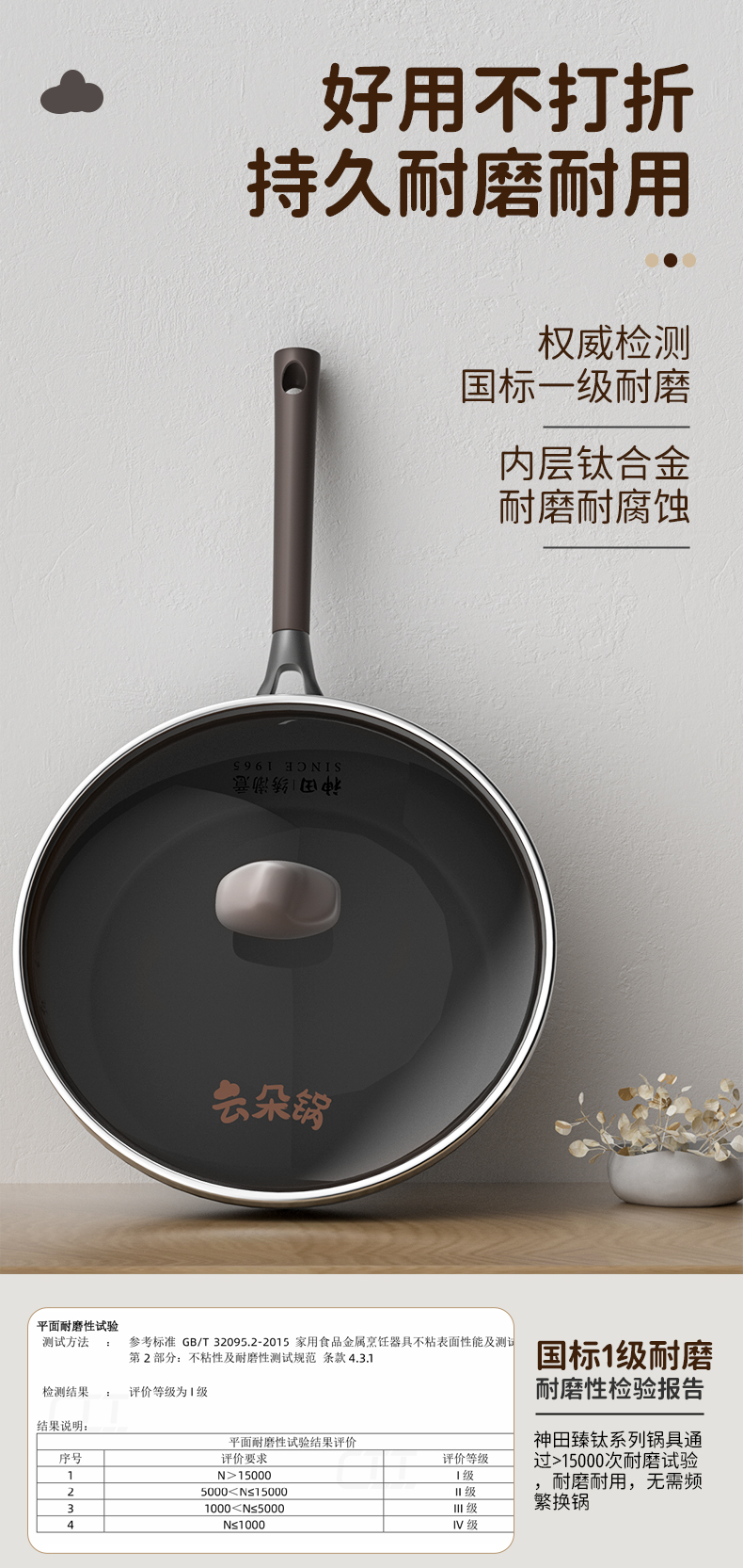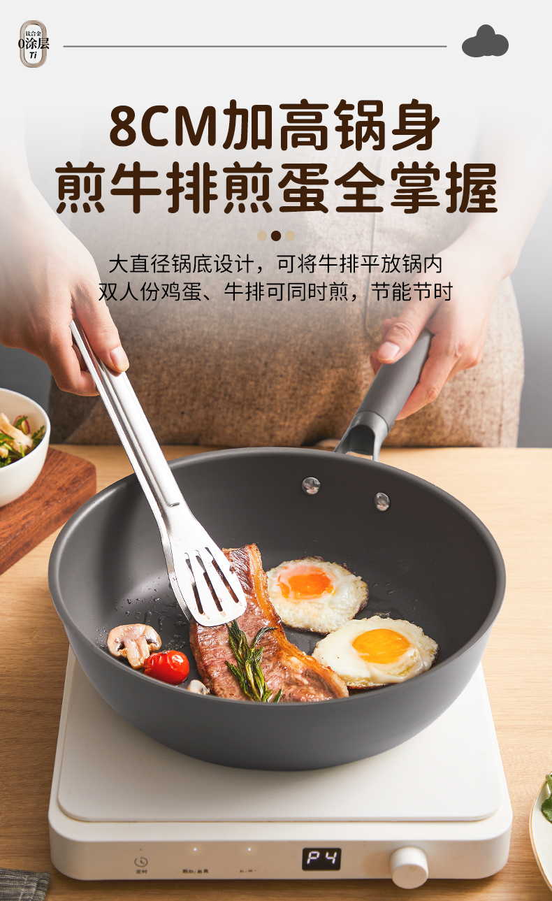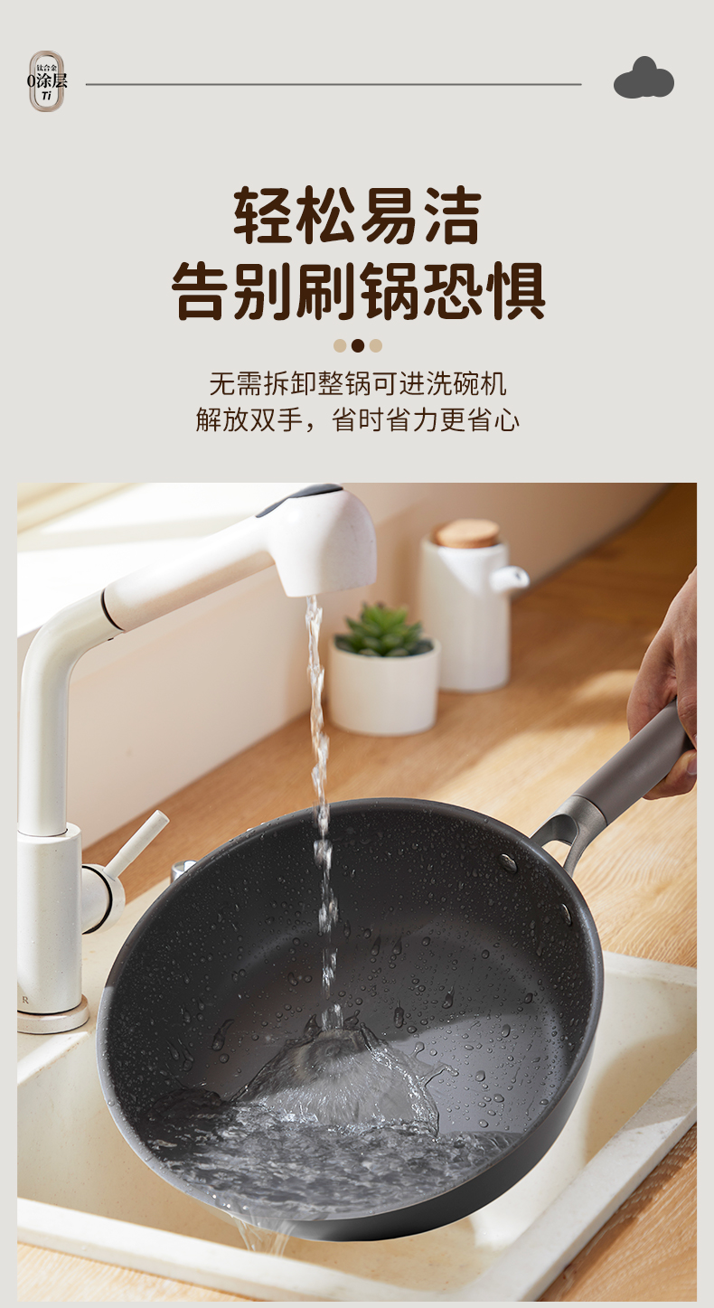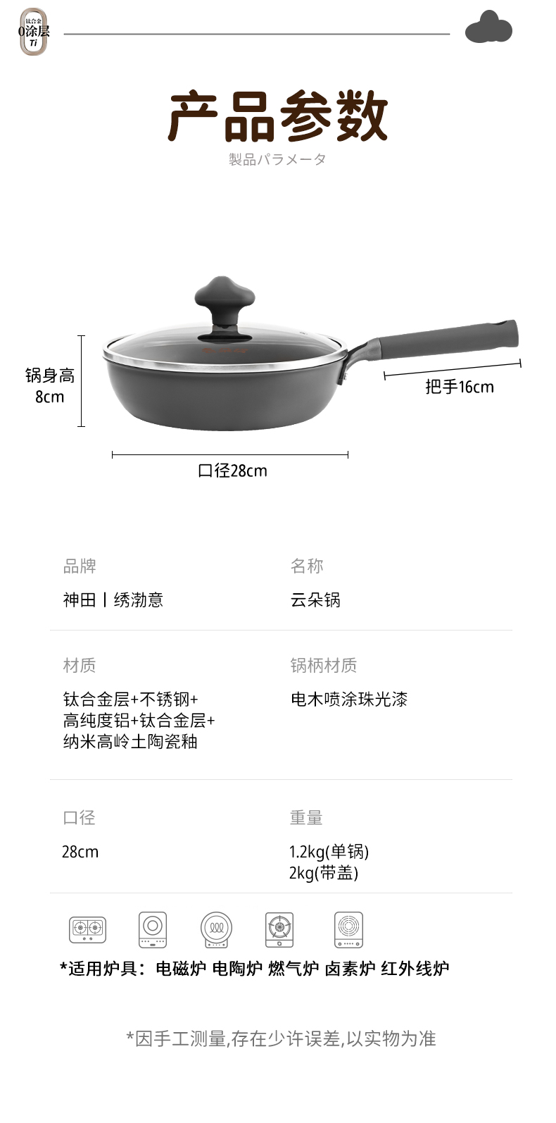 神田 云朵锅钛合金不粘锅 平底煎炒锅28cm 落栗棕 下单赠导热板+硅胶铲