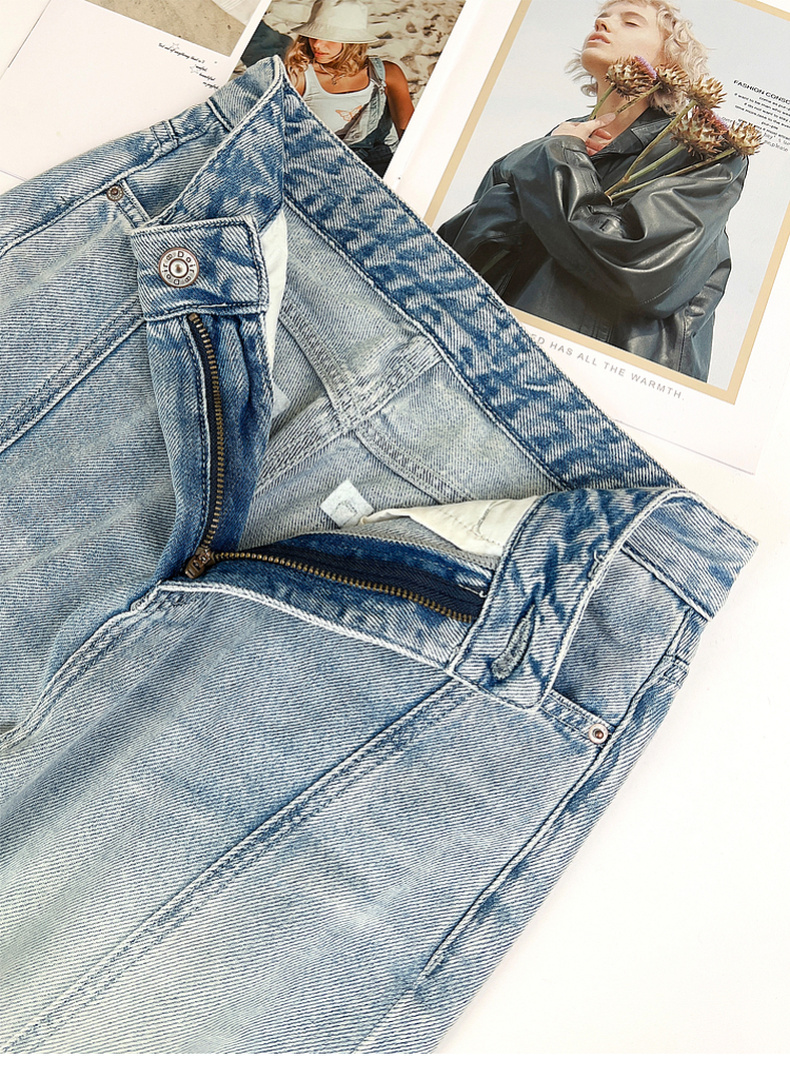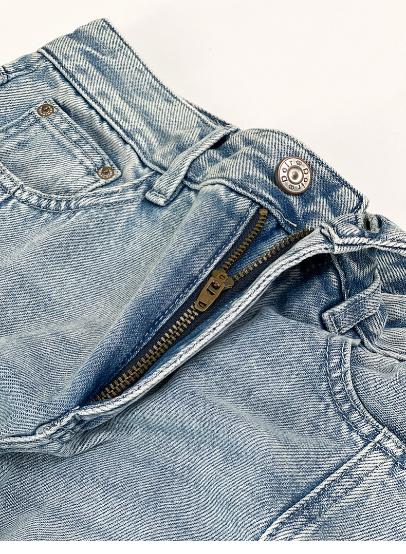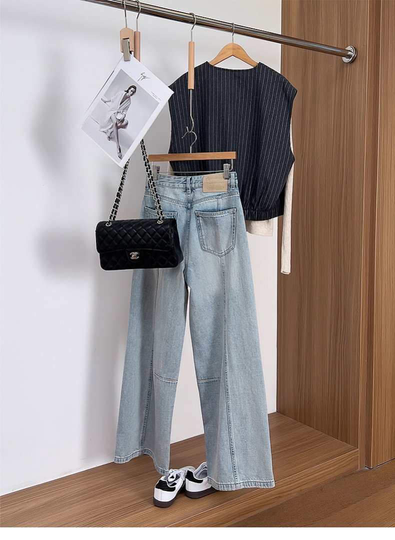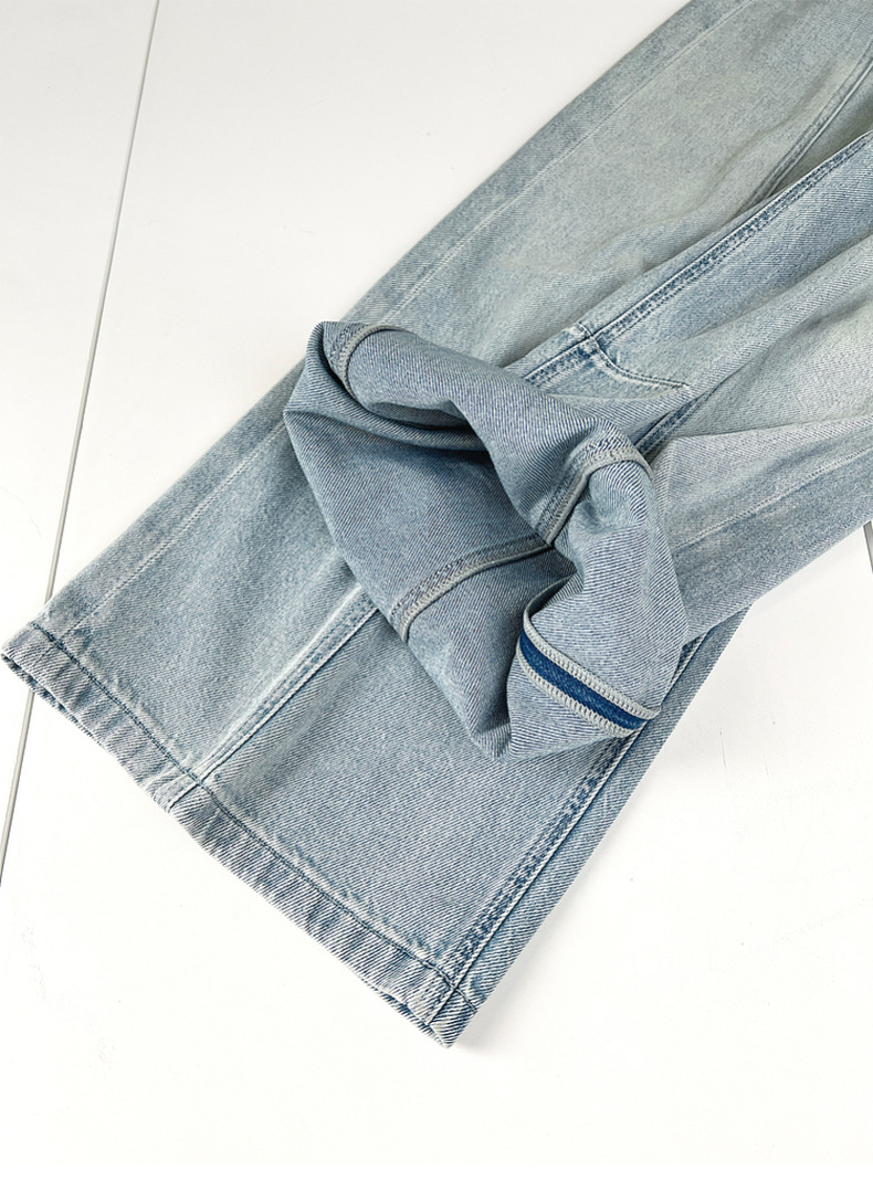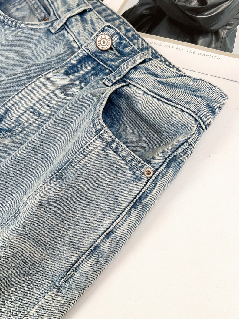 专柜实拍【100棉+垂感有型】拉夏贝尔/La Chapelle复古水洗浅蓝牛仔直筒裤显瘦显腿直长裤