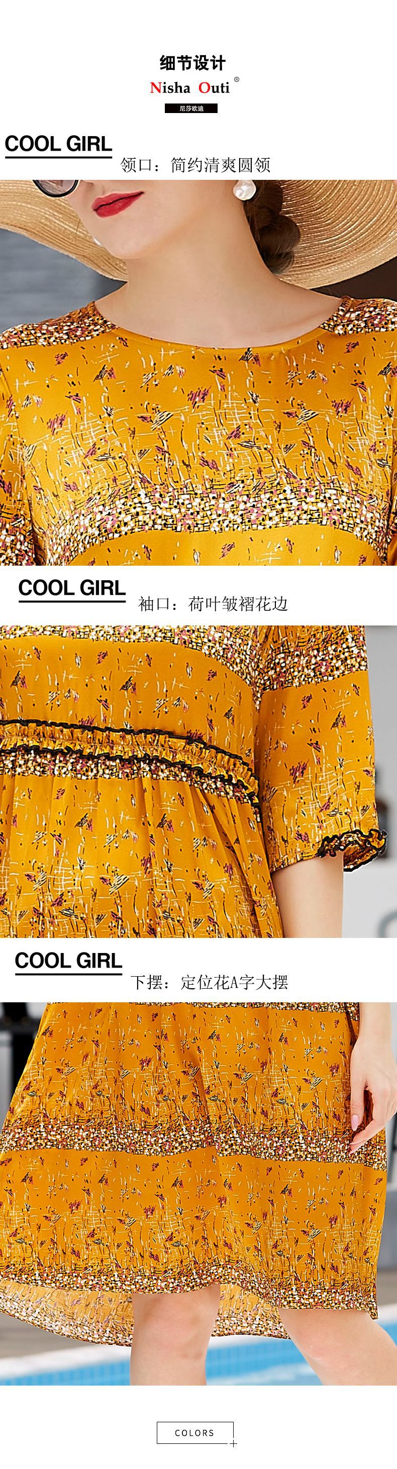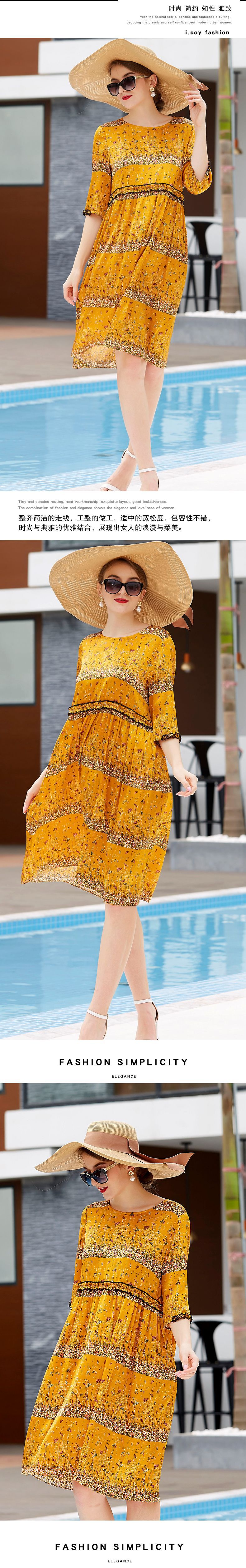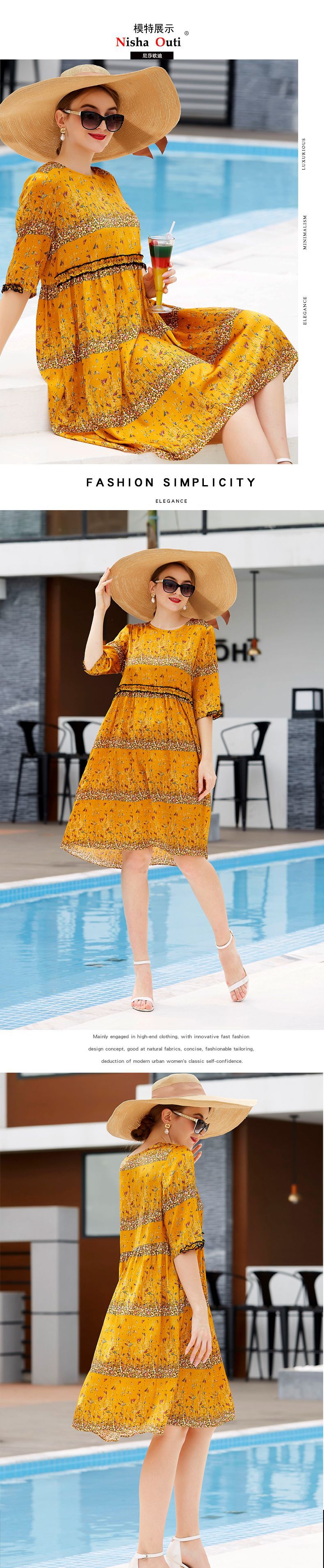 WYFH0505素绉缎真丝2020新款宽松圆领短袖印花高名媛连衣裙