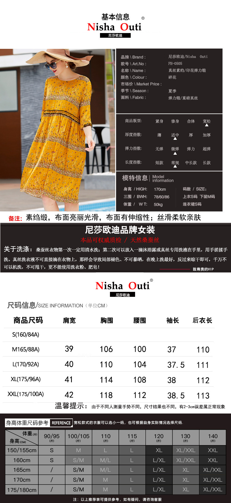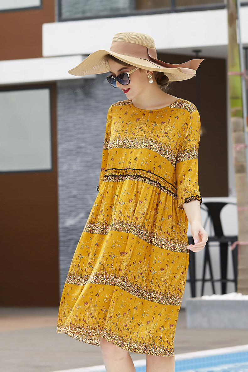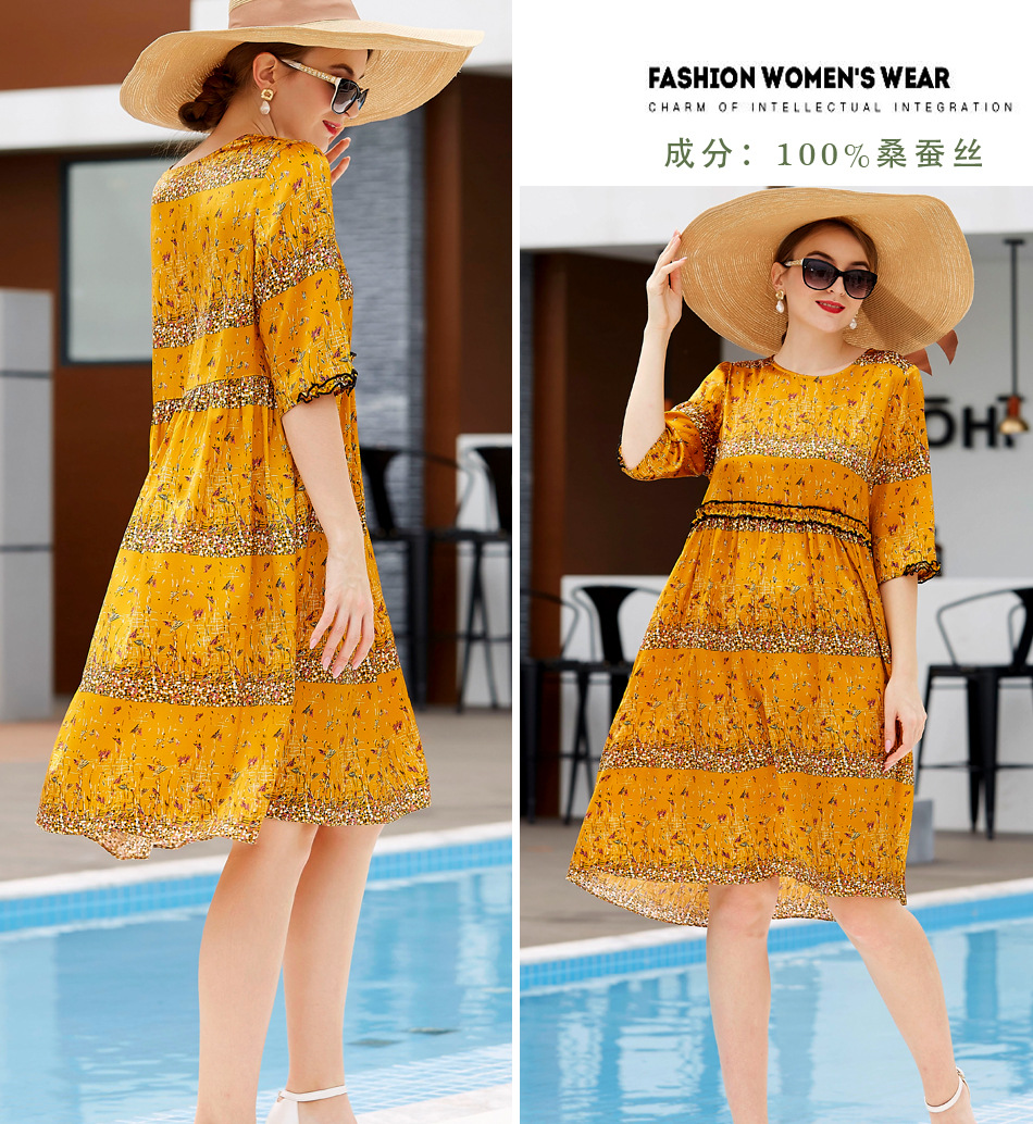 WYFH0505素绉缎真丝2020新款宽松圆领短袖印花高名媛连衣裙