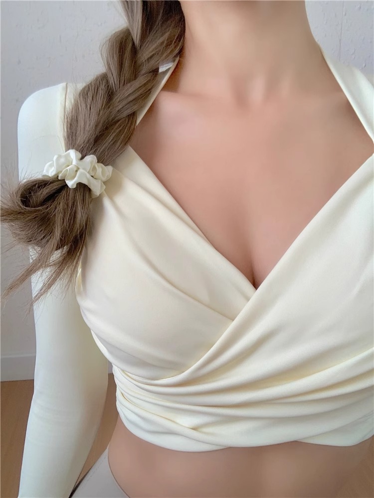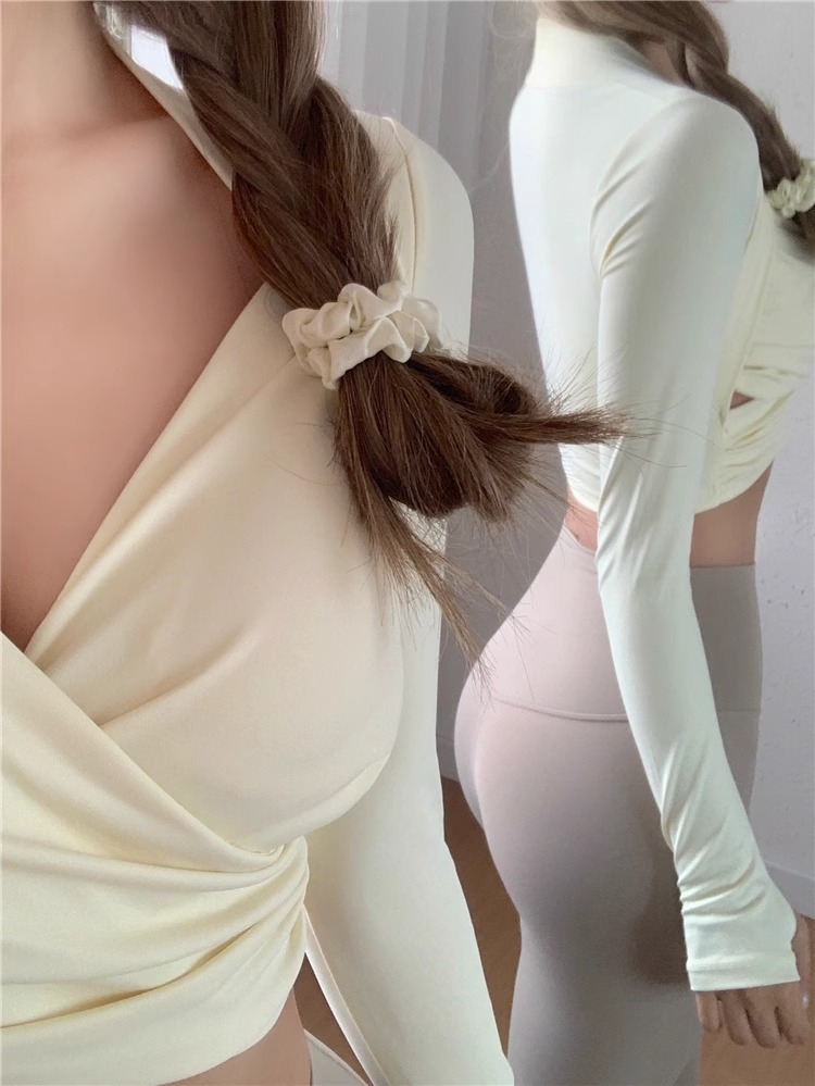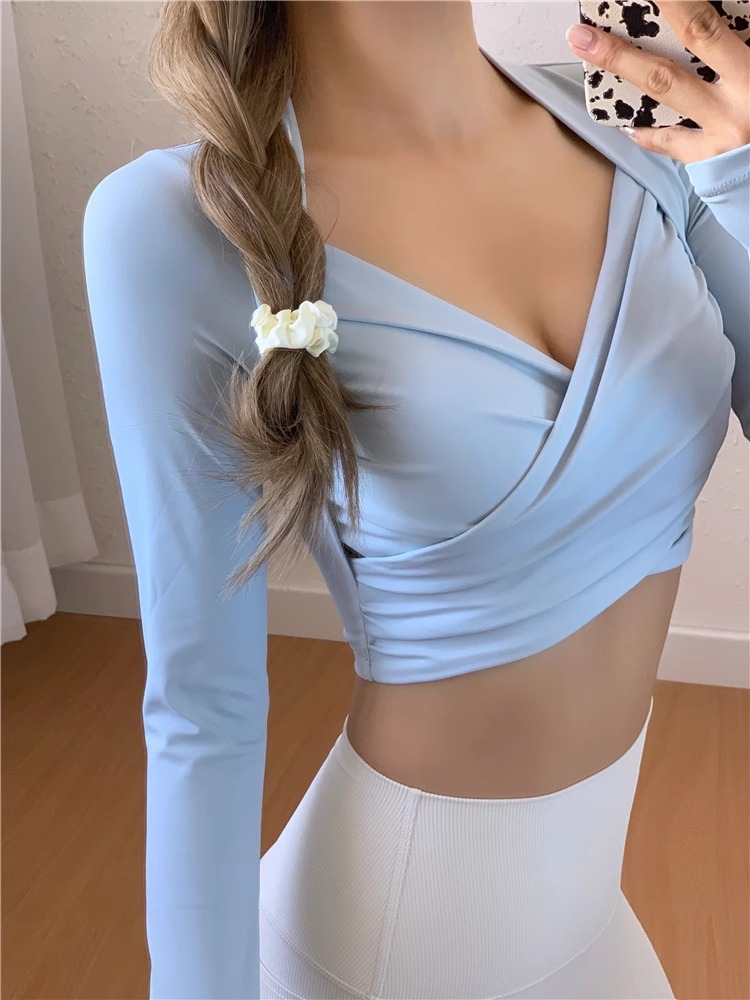 跃牌【洛水之神系列】带胸垫女瑜伽服性感交叉紧身长袖气质纯欲运动健身衣上衣HN184