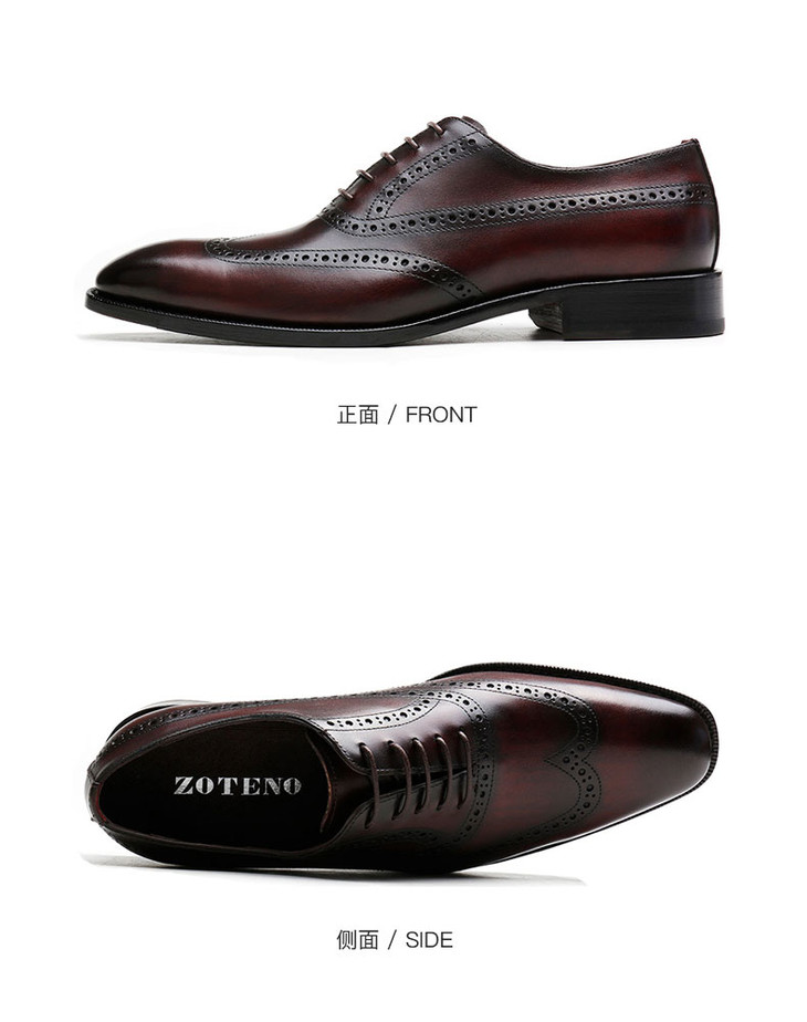 左天奴/ZOTENO 男鞋高端商务正装皮鞋布洛克雕花头层牛皮N627
