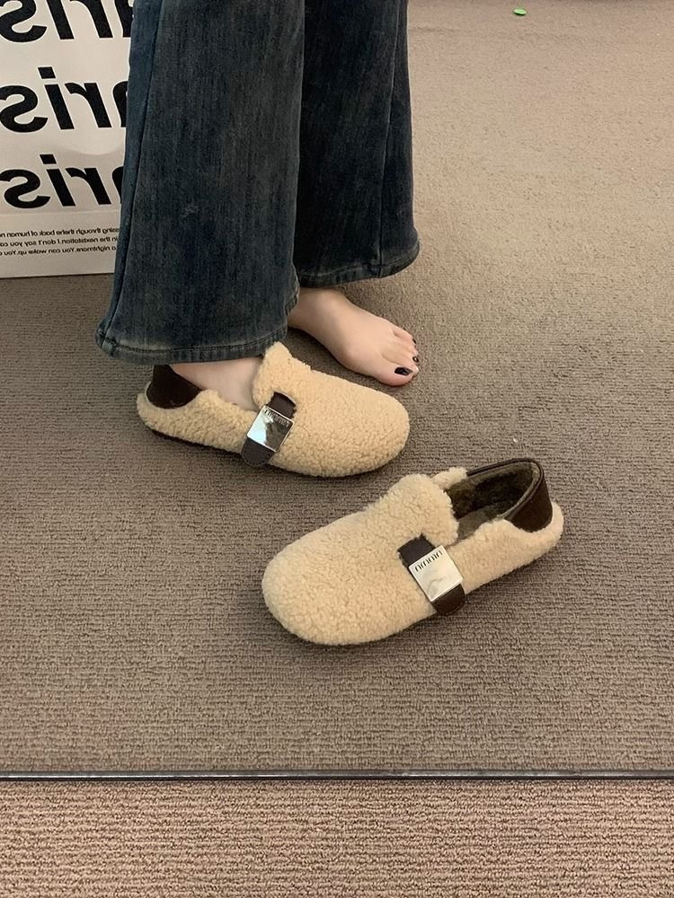 懒人一脚蹬鞋❗️防滑大底,耐磨耐穿❗️没有加绒豆豆鞋的冬天没有灵魂!