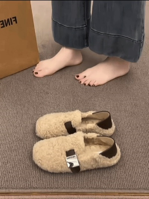 ✅细腻羊羔绒+防滑橡胶大底,像踩在棉花上一样柔软