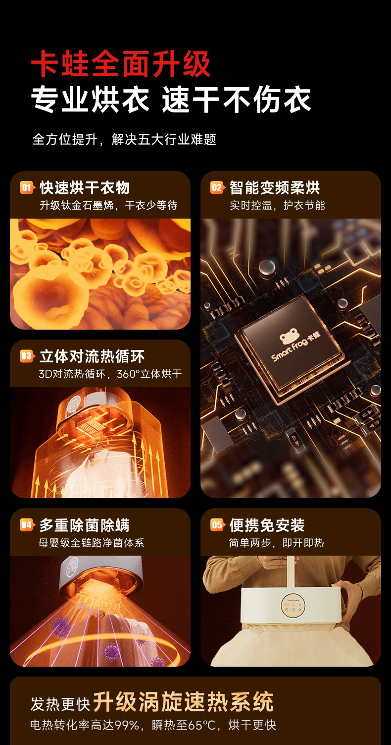 卡蛙烘干机家用便携式烘衣服小型婴儿风干机神器宿舍可折叠干衣机