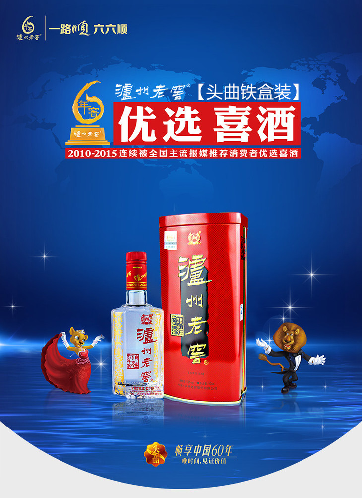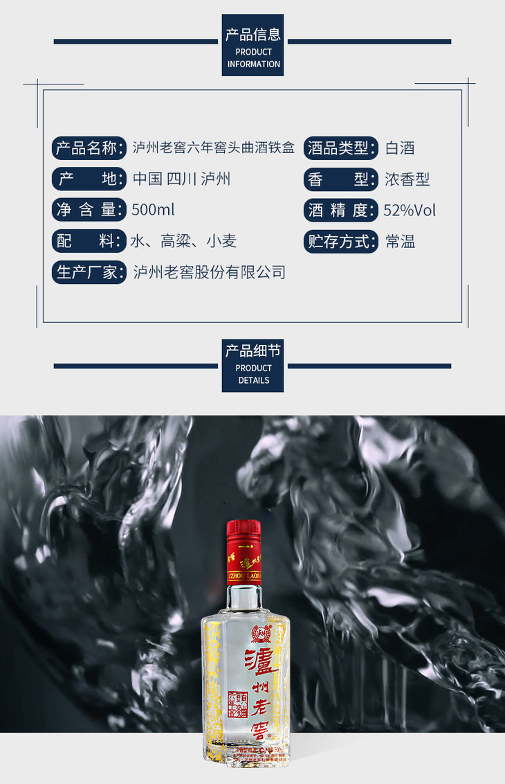 【推荐】52度 泸州老窖六年窖头曲酒铁盒 500ml*6 (整箱)