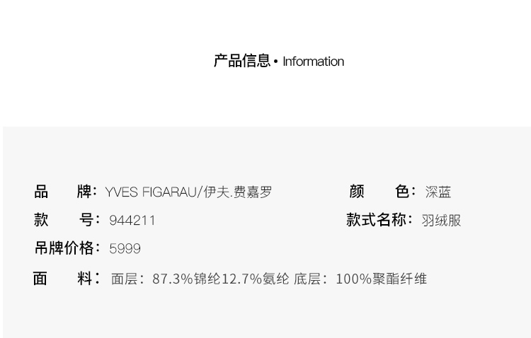 YvesFigarau伊夫·费嘉罗羽绒服944211