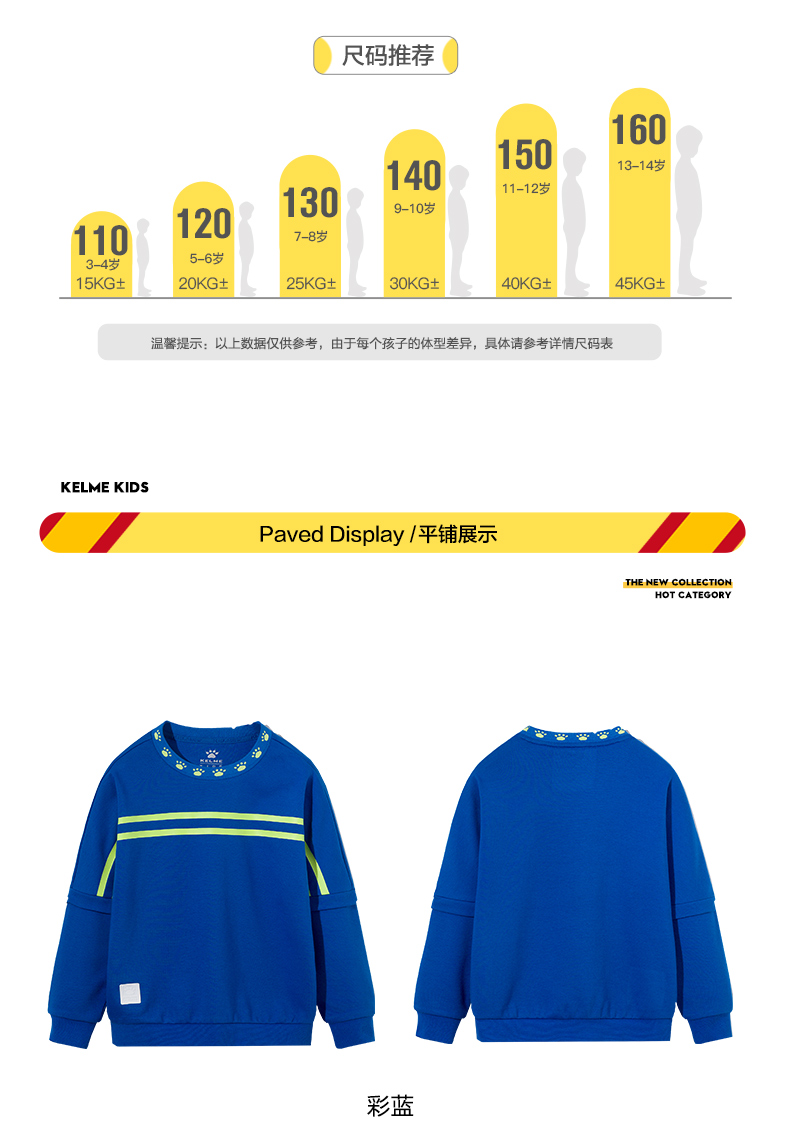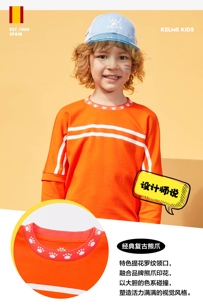 卡尔美 官方正品儿童卫衣男女春秋薄款新款套头休闲上衣