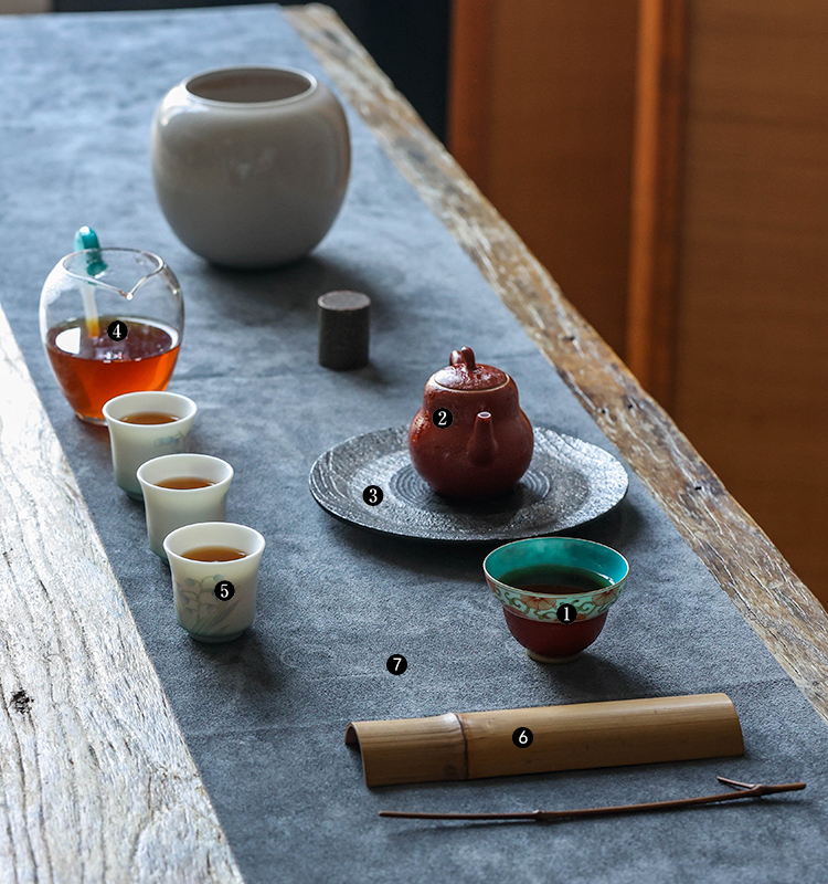 茶香记 古帛扒花松石绿古彩葫芦杯(宫红)70ml茶杯品杯茶室茶具
