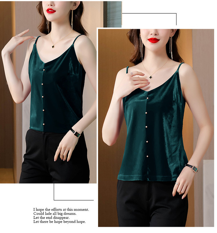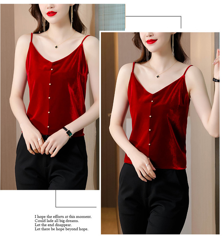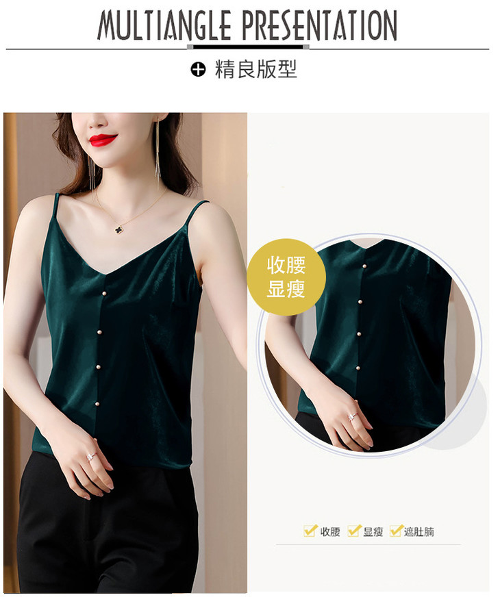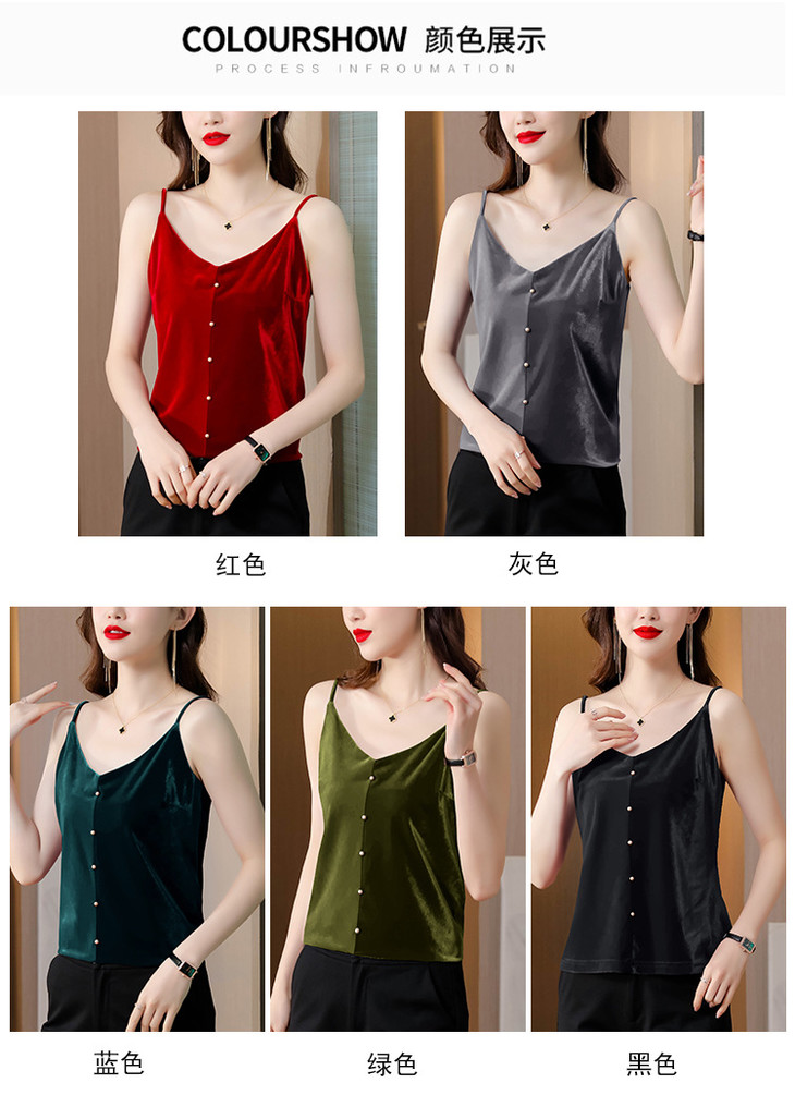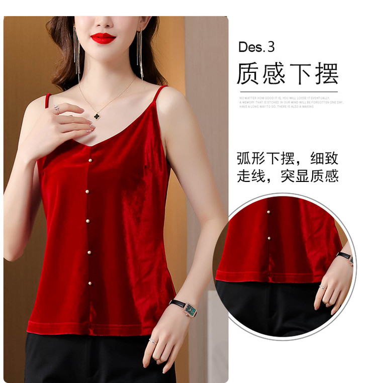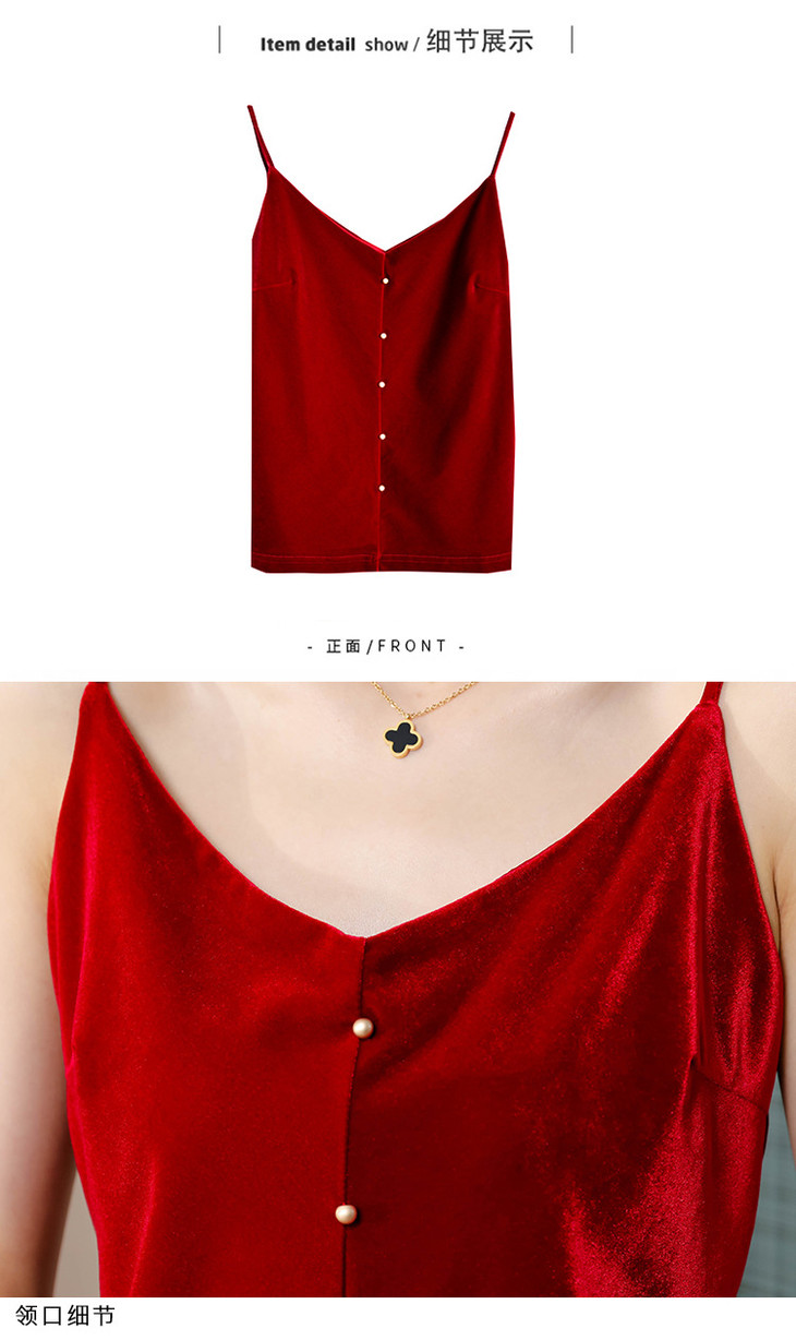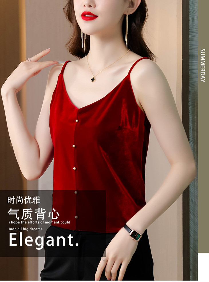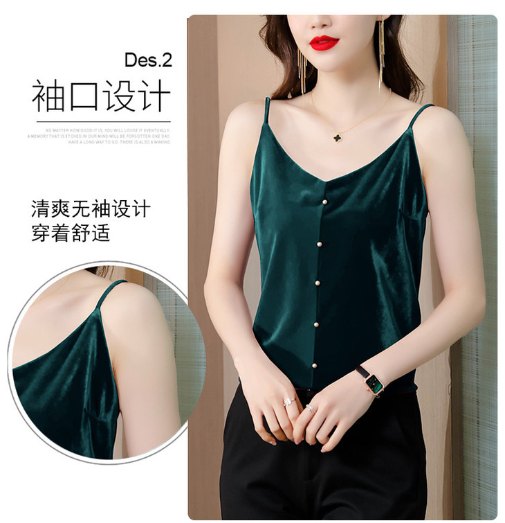 KQL-A83N8133新款时尚气质百搭细肩带双V领丝绒吊带背心