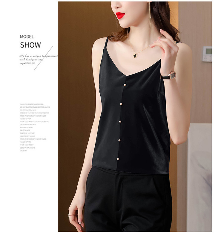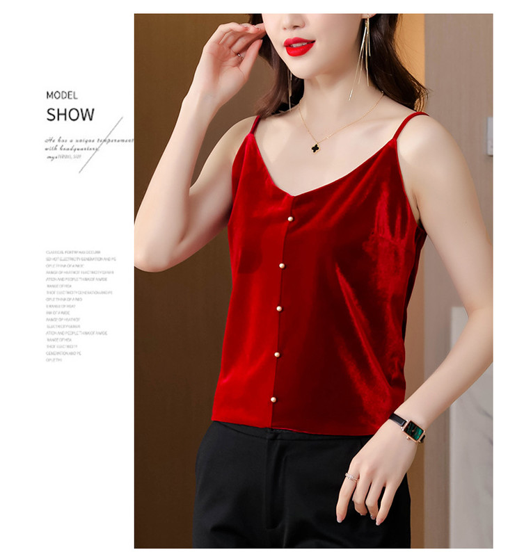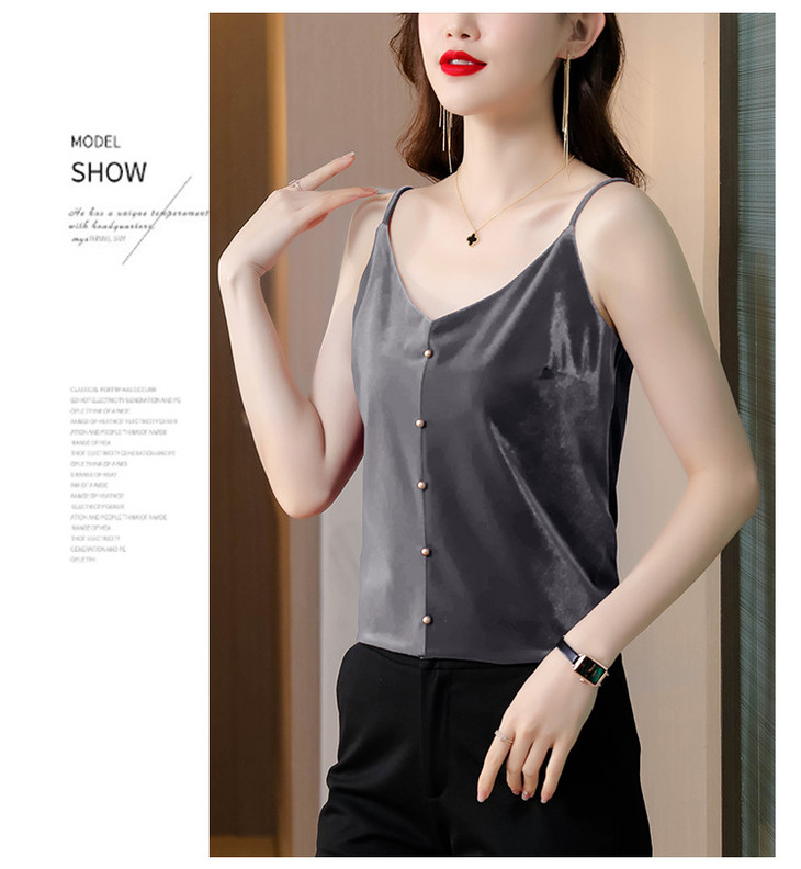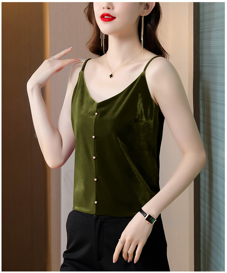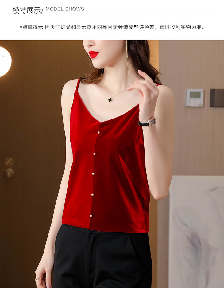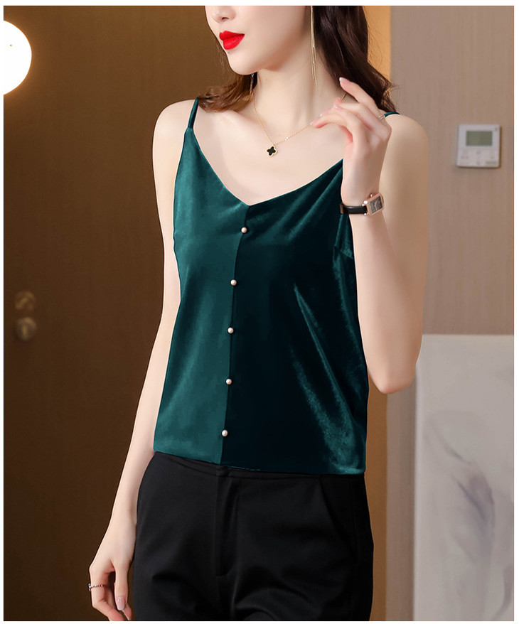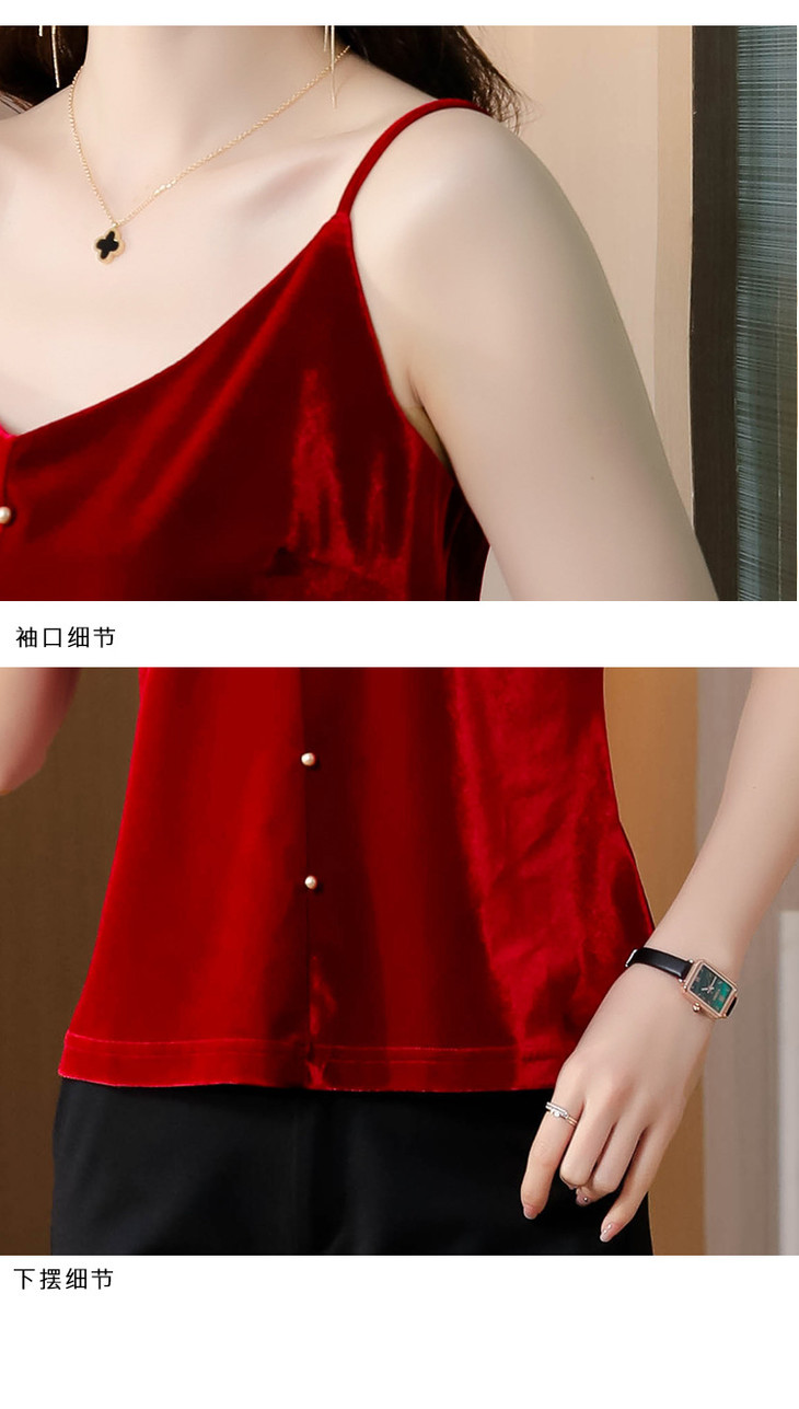 KQL-A83N8133新款时尚气质百搭细肩带双V领丝绒吊带背心