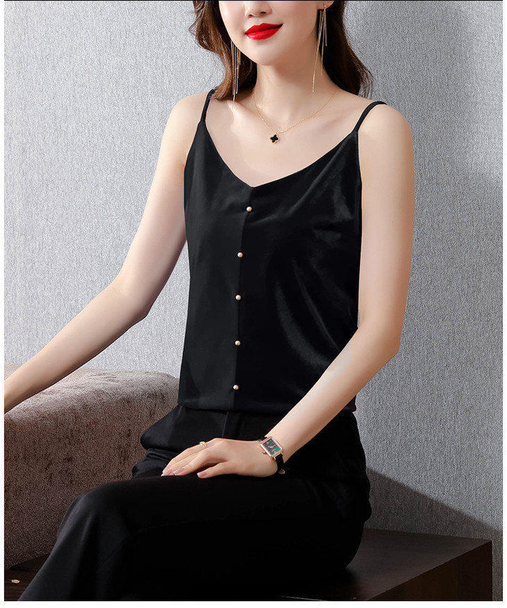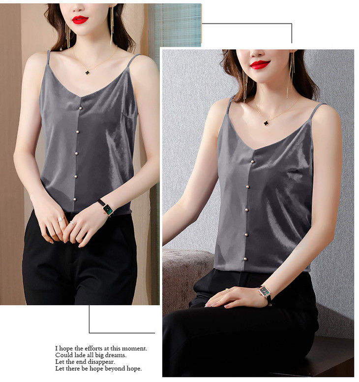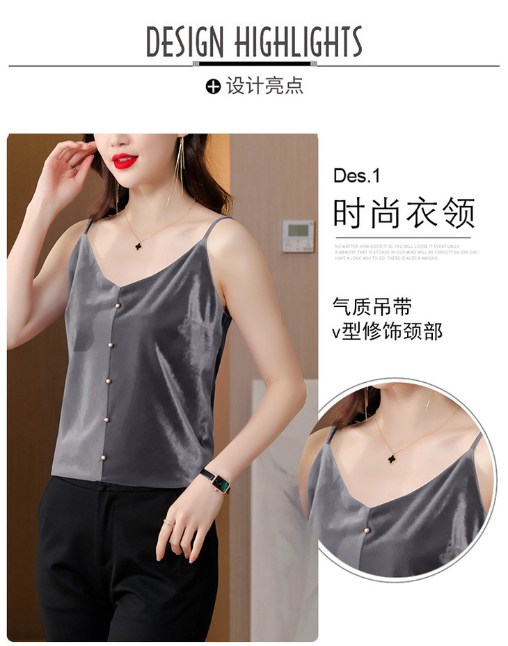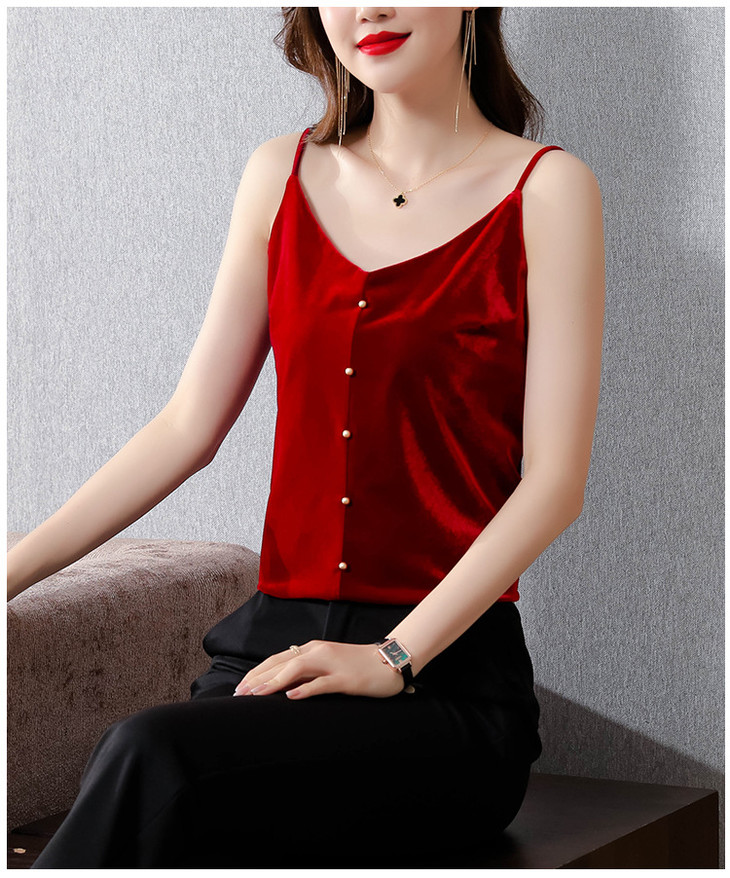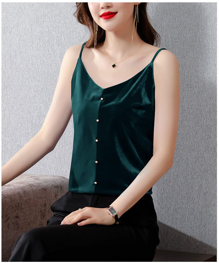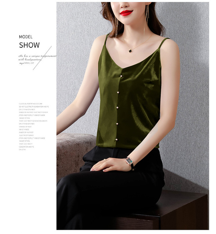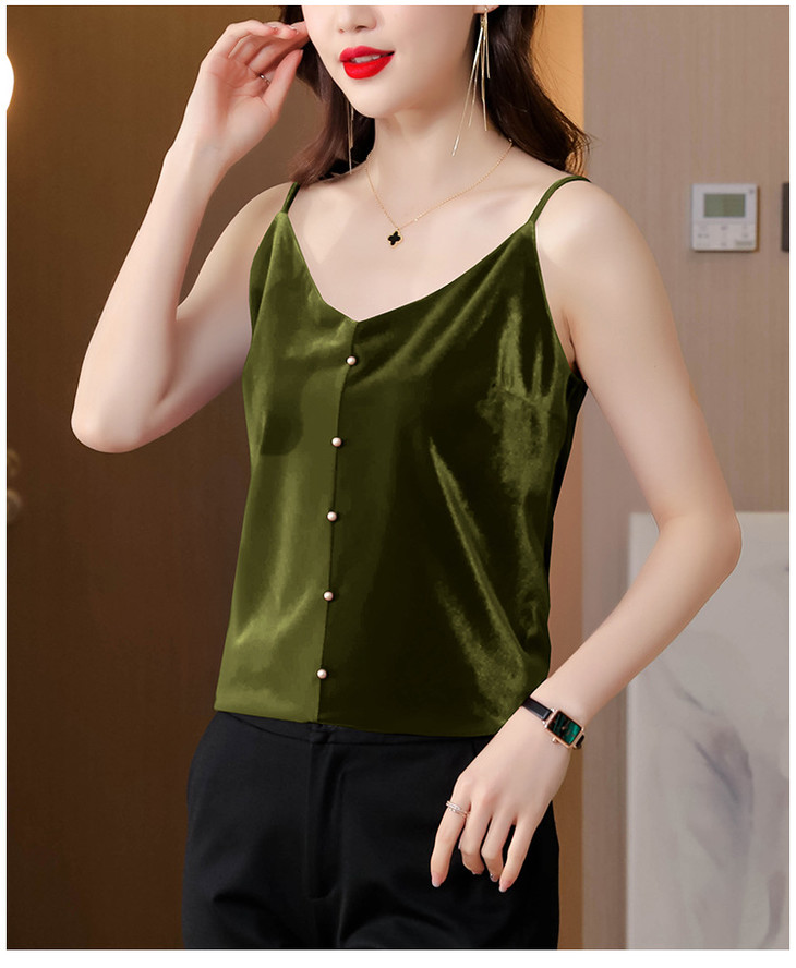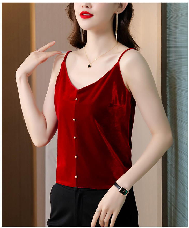 KQL-A83N8133新款时尚气质百搭细肩带双V领丝绒吊带背心