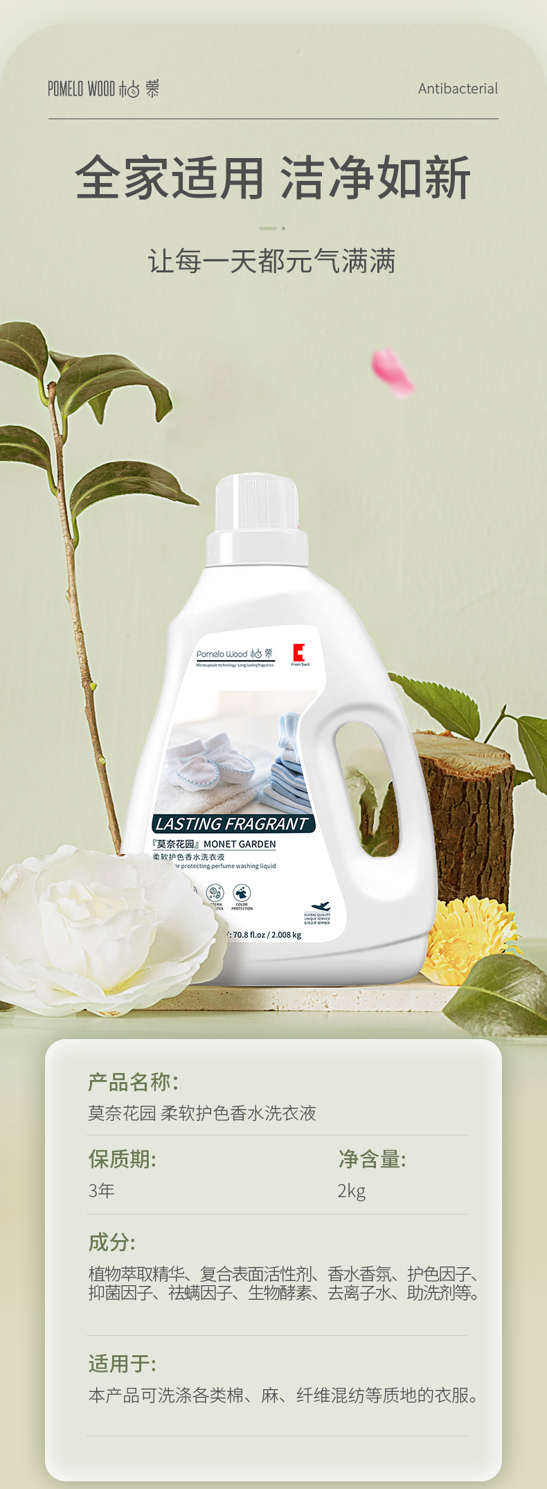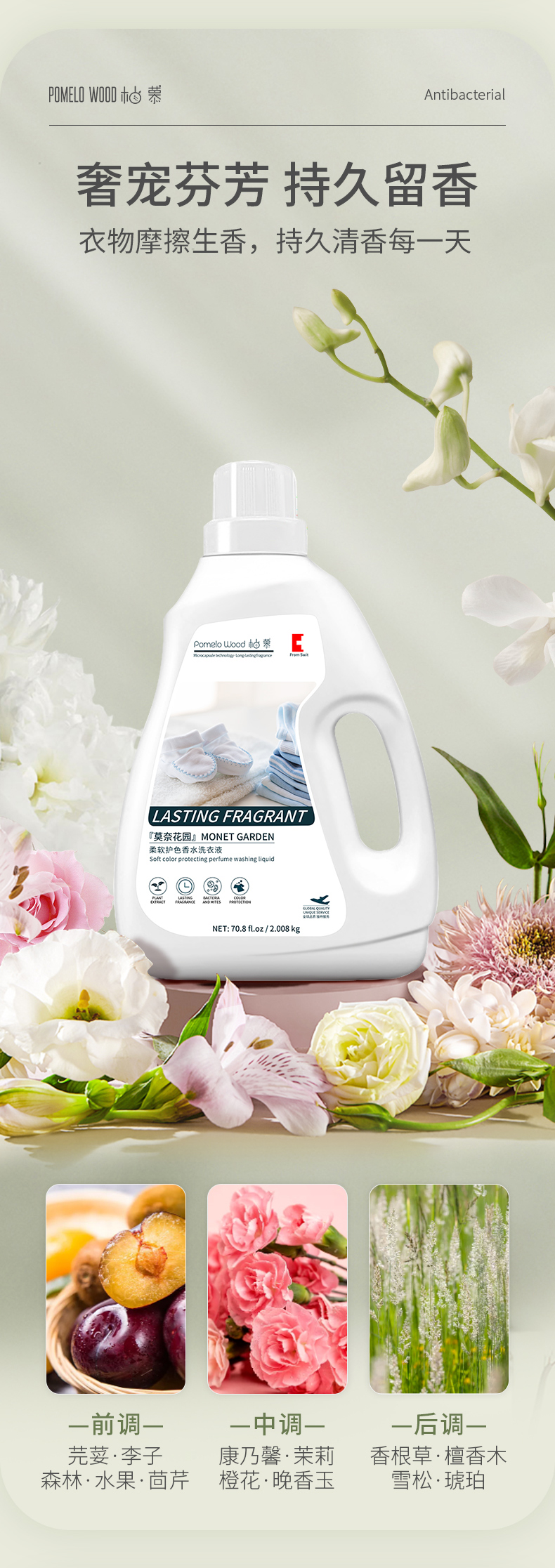 【植物萃取】柚慕『莫奈花园』柔软护色香水洗衣液保护衣物色彩同时避免伤害衣物纤维