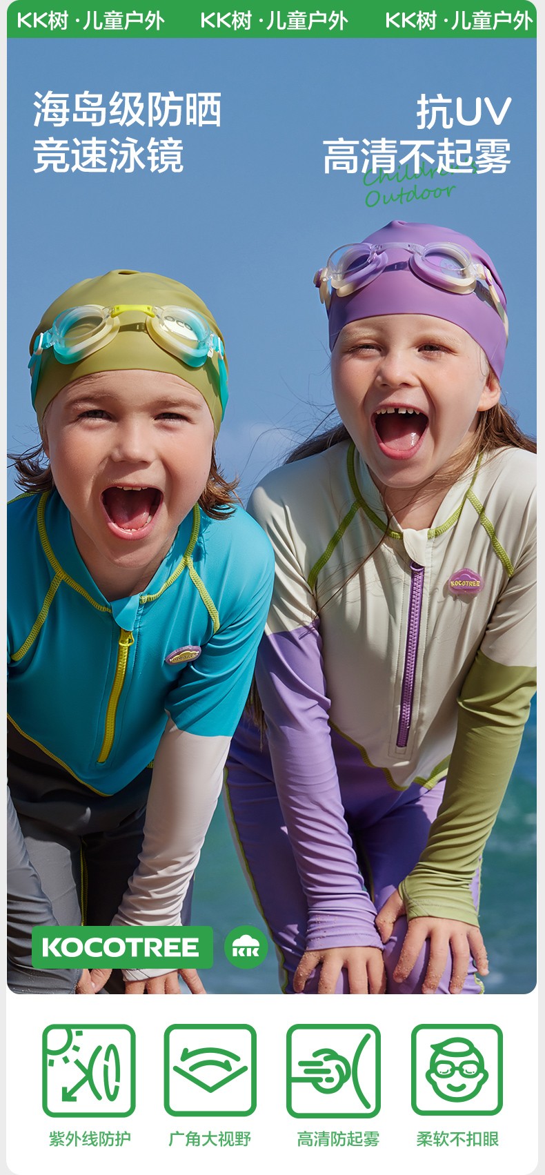 KK树儿童泳镜防水防起雾高清男孩潜水眼镜女孩护目镜专业游泳装备霓虹星球竞速泳镜