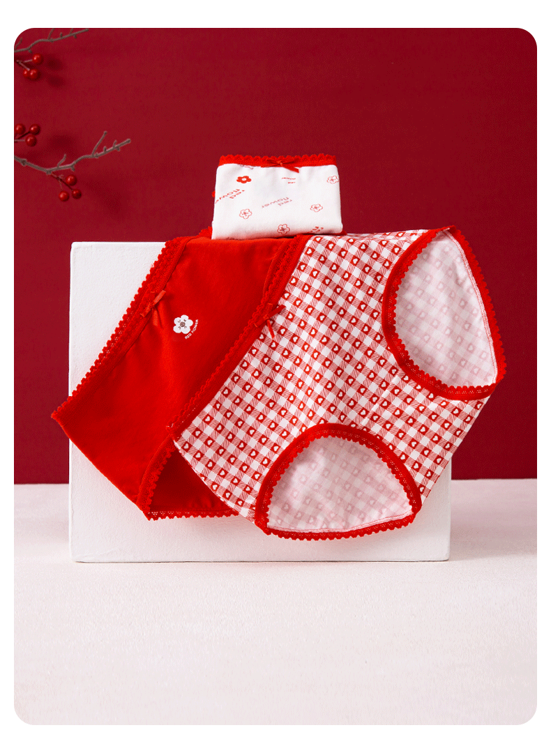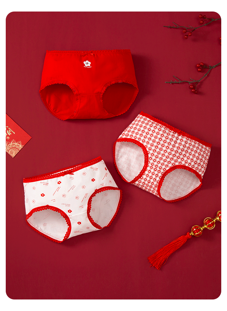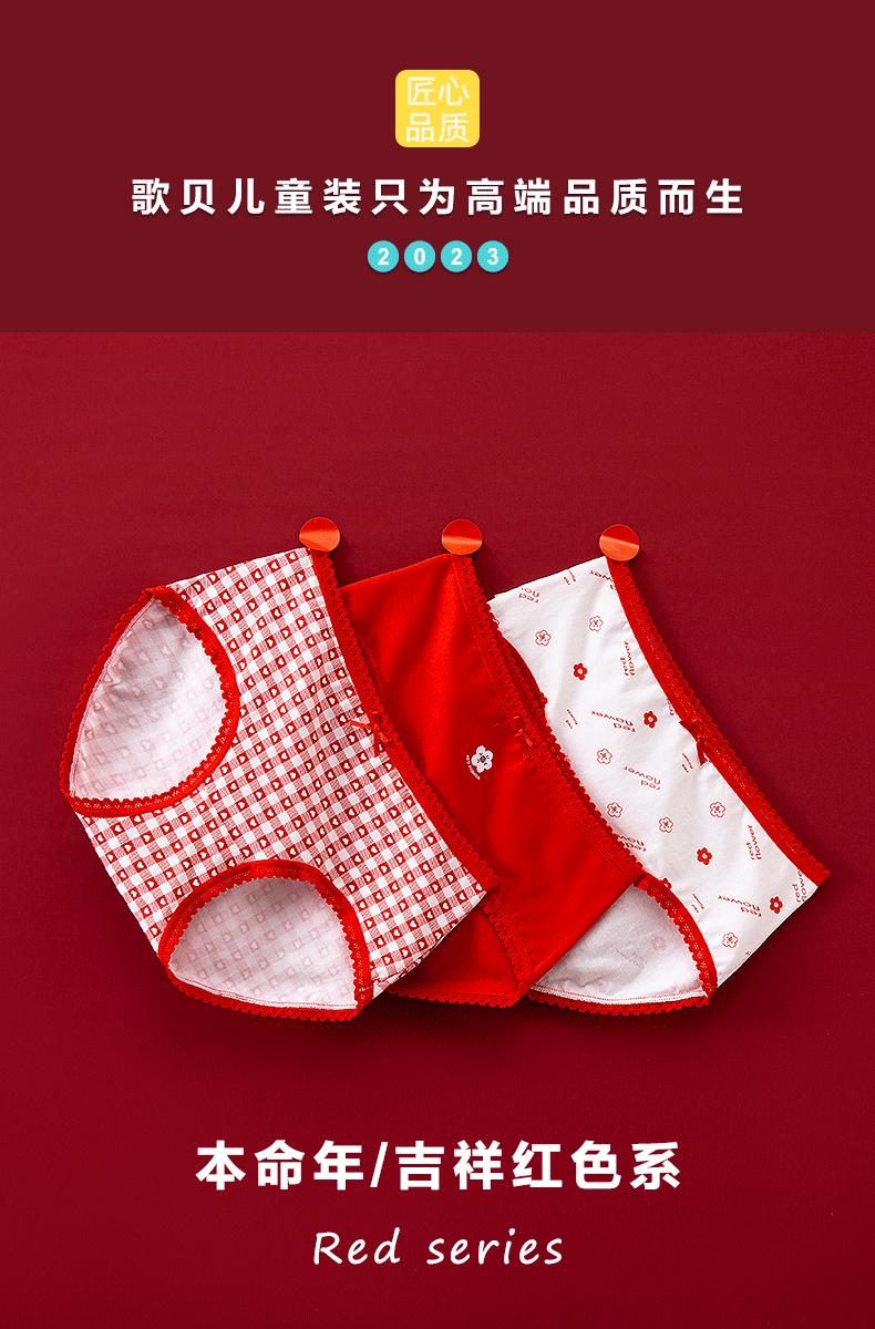 【健康无刺激,安全亲肤】本命年大红色儿童内裤5a类纯棉,小女孩女童宝宝三角内裤全棉3条盒装,3D立体裁剪贴身感受怎么动都很舒服!