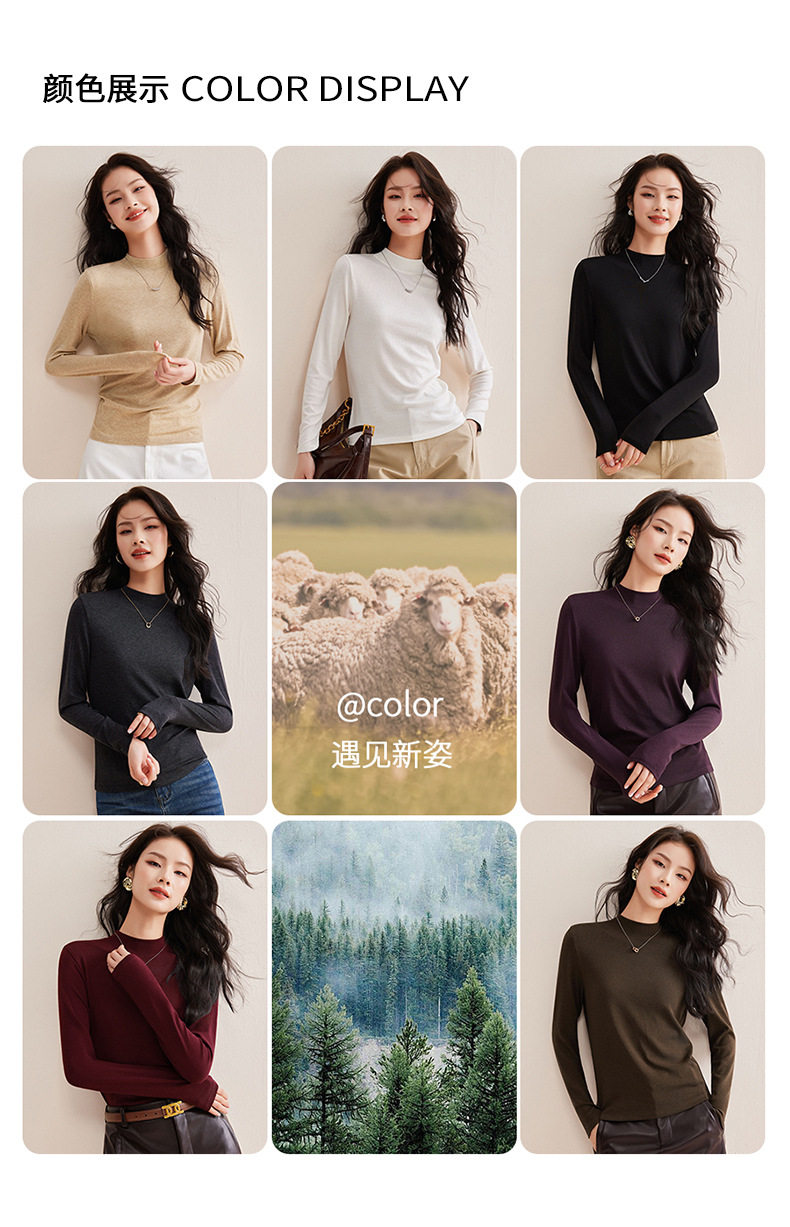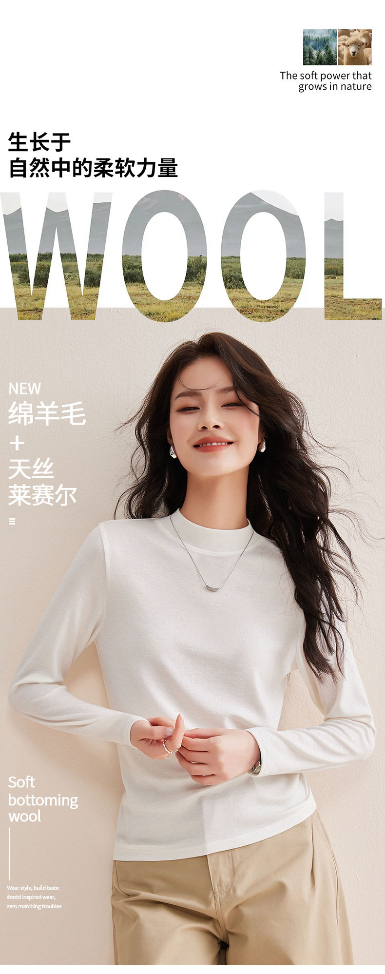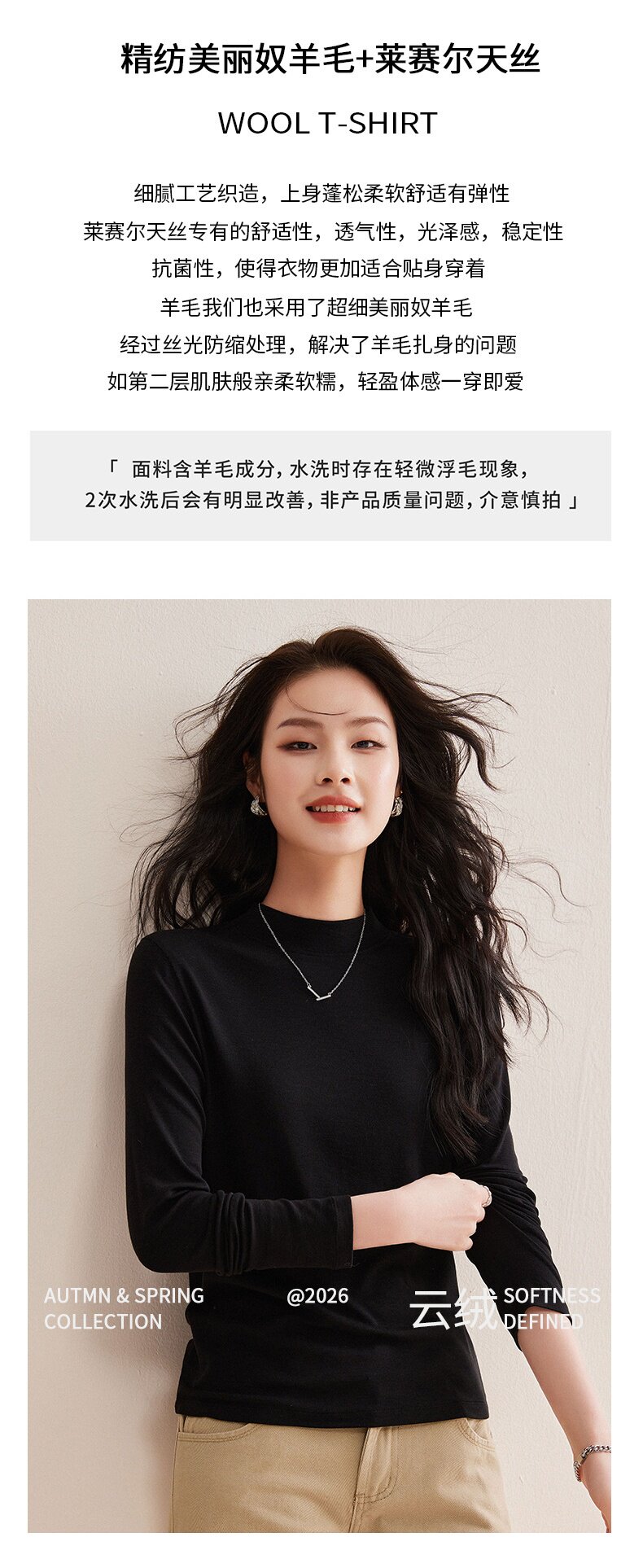「自」全新升级【铂金会员119/天猫159/差价40】(11320)洛诗琳天丝羊毛面膜T2026早春气质纯色长袖立领正肩上衣女