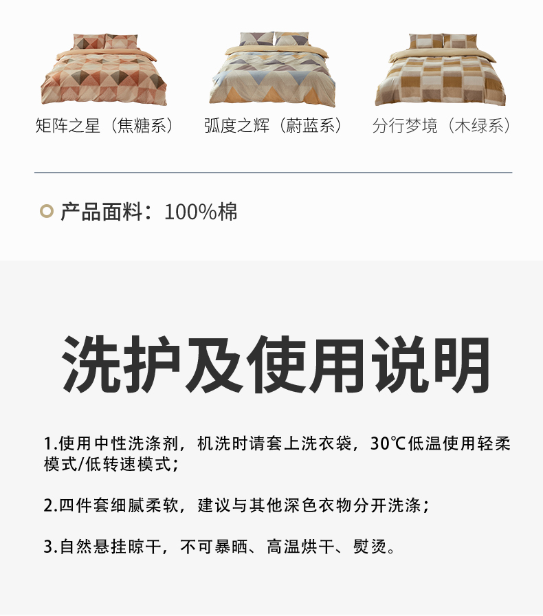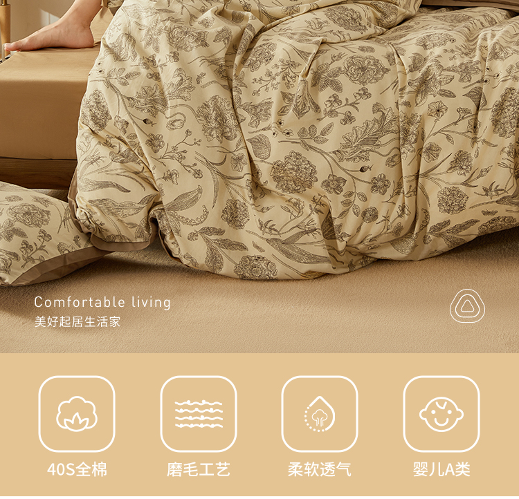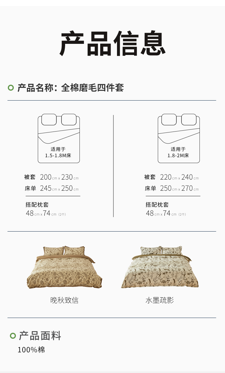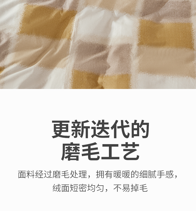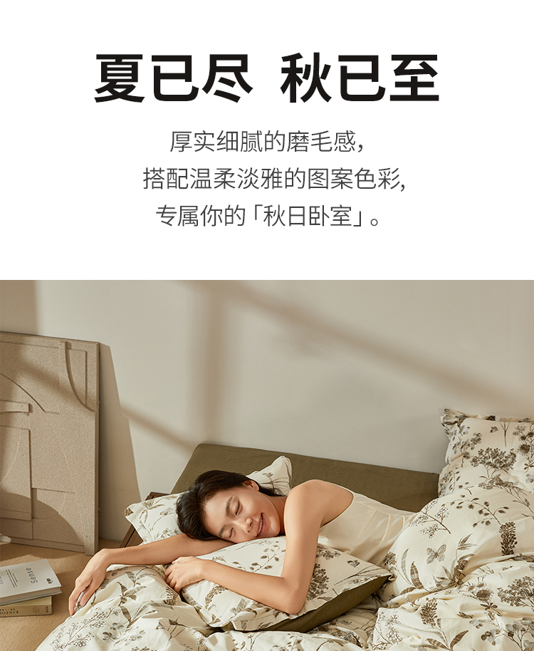 一默 全棉磨毛四件套 升级磨毛工艺,拥有羊绒般细腻手感;双面磨毛,储存更多暖空气,加速被窝暖感;舒适体感 A类标准