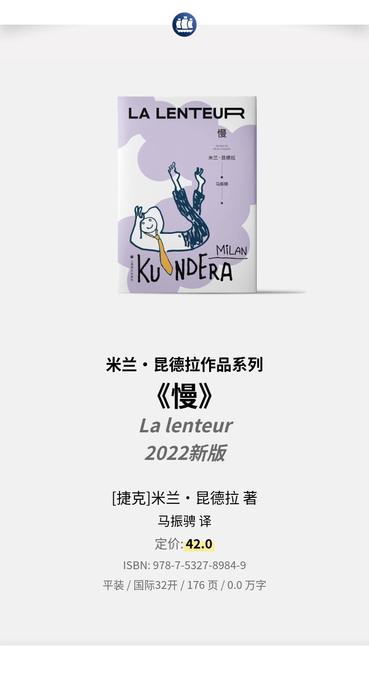 《慢》是米兰·昆德拉移民法国后用法文创作的第一部小说,将虚与实、过去与现在完美融合。小说中作者和妻子薇拉去一座已改为酒店的城堡度周末,驾车行驶在公路上时,一辆摩托车飞驰而过,引起了作者对速度的思索。由此他回忆起18世纪法国作家维旺·德农的小说《明日不再来》中贵妇人和年轻骑士的故事。与之交织的是一群现代人的荒诞之夜:20世纪的某一天,一群昆虫学家聚集在城堡酒店开研讨会,上演了一出又一出可笑的闹剧。 “慢是幸福的标志”,相较于《生命之中不能承受之轻》和《不朽》所探讨的沉重话题,《慢》的主题看上去令人惊奇,显然是昆德拉所有作品当中主题最为轻松的小说,通篇“没有一句正经话”。作者自己曾说:“作品没有任何一个严肃的词。”