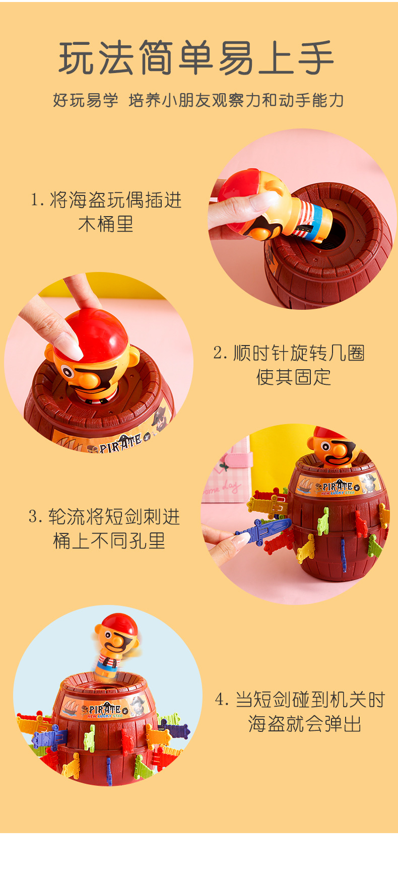 【既是玩具,也是存钱罐!】海盗桶网红玩具叔叔木桶插刀剑,亲子互动搞怪游戏减压解压,细致打磨任意拿捏不伤手