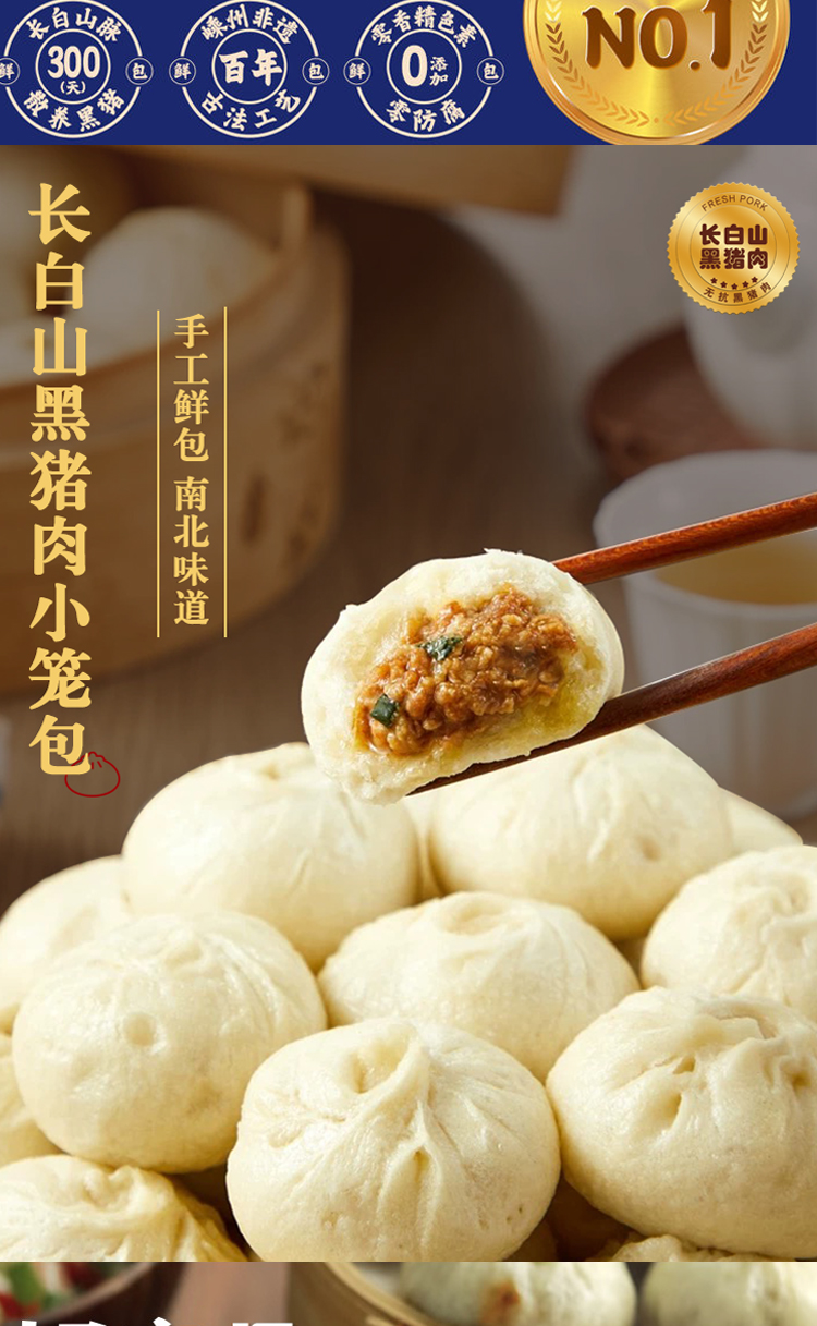 【高校专属&全场满99包邮】双无抗长白山黑猪肉小笼包 300g/袋/300枚*5袋(到手60枚)JL