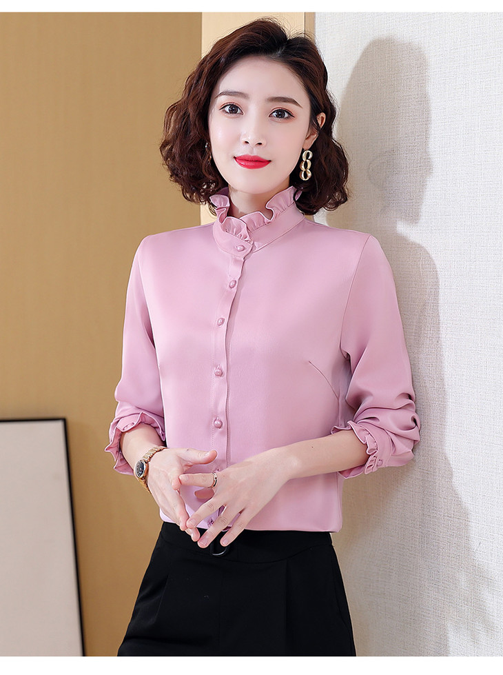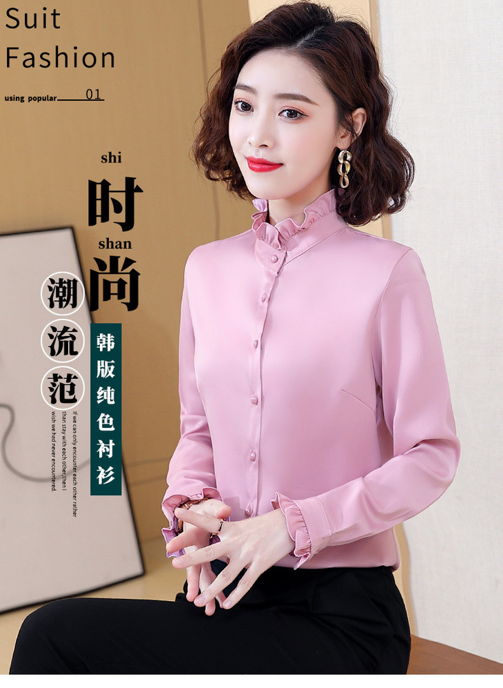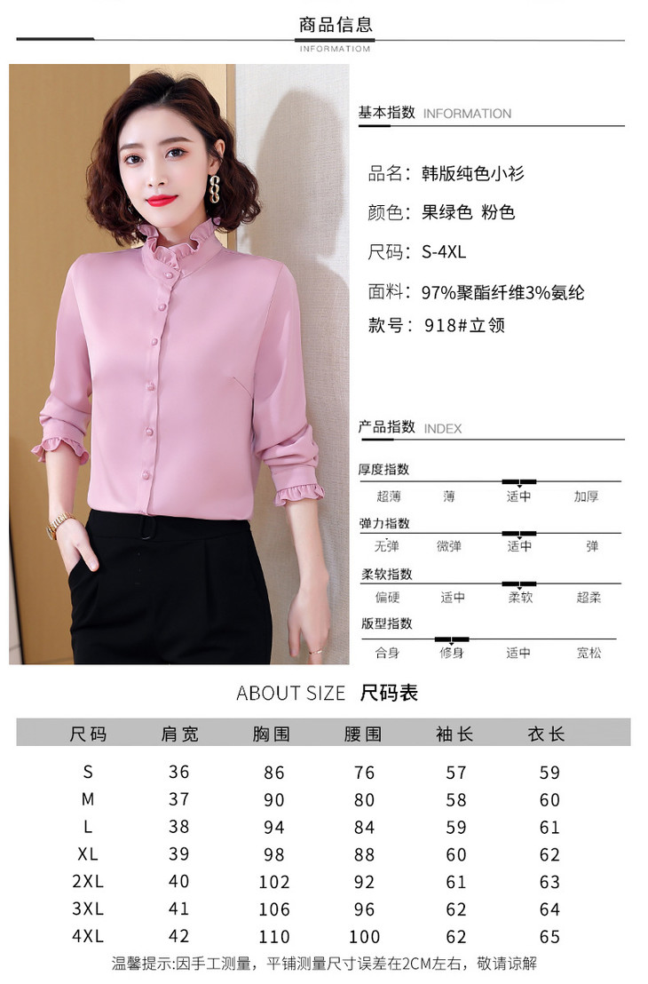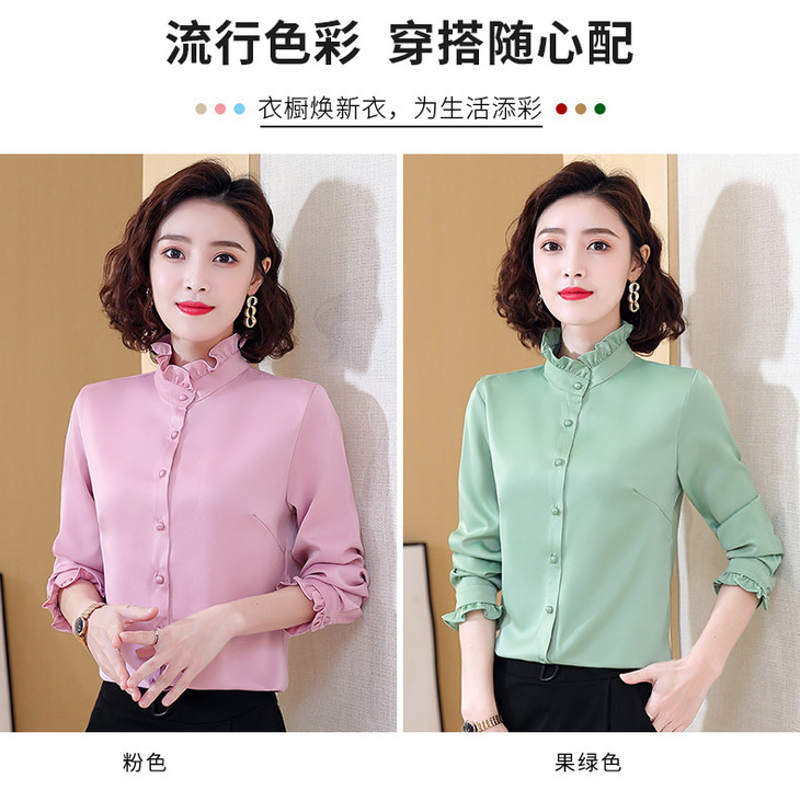 长袖秋冬季新款上衣加绒加厚打底衫立领衬衣 QB-LCX918加绒