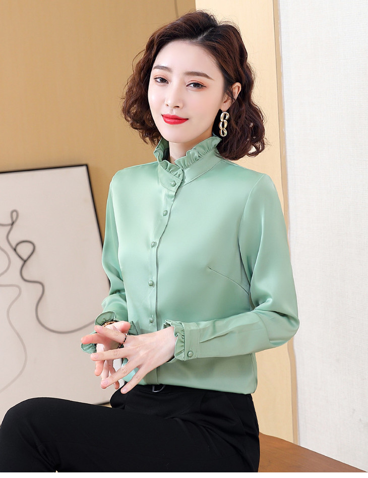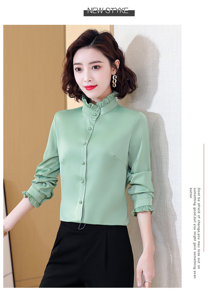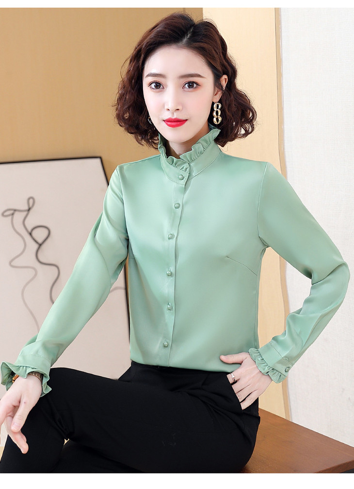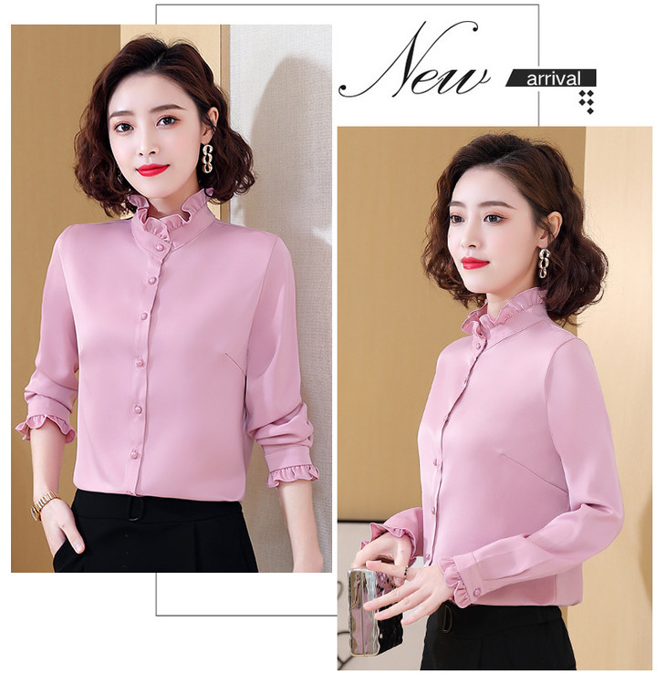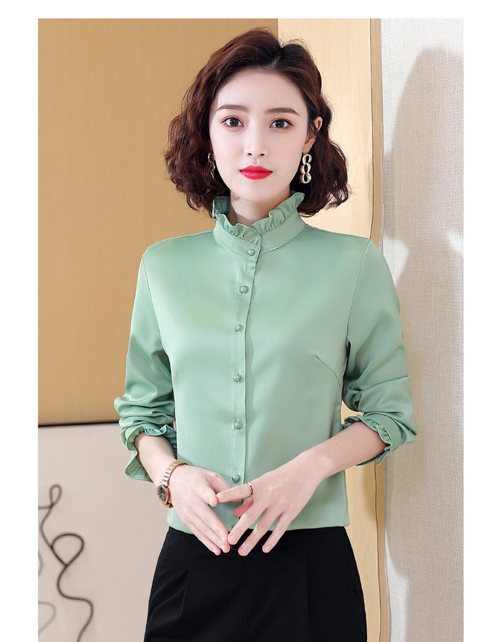 长袖秋冬季新款上衣加绒加厚打底衫立领衬衣 QB-LCX918加绒