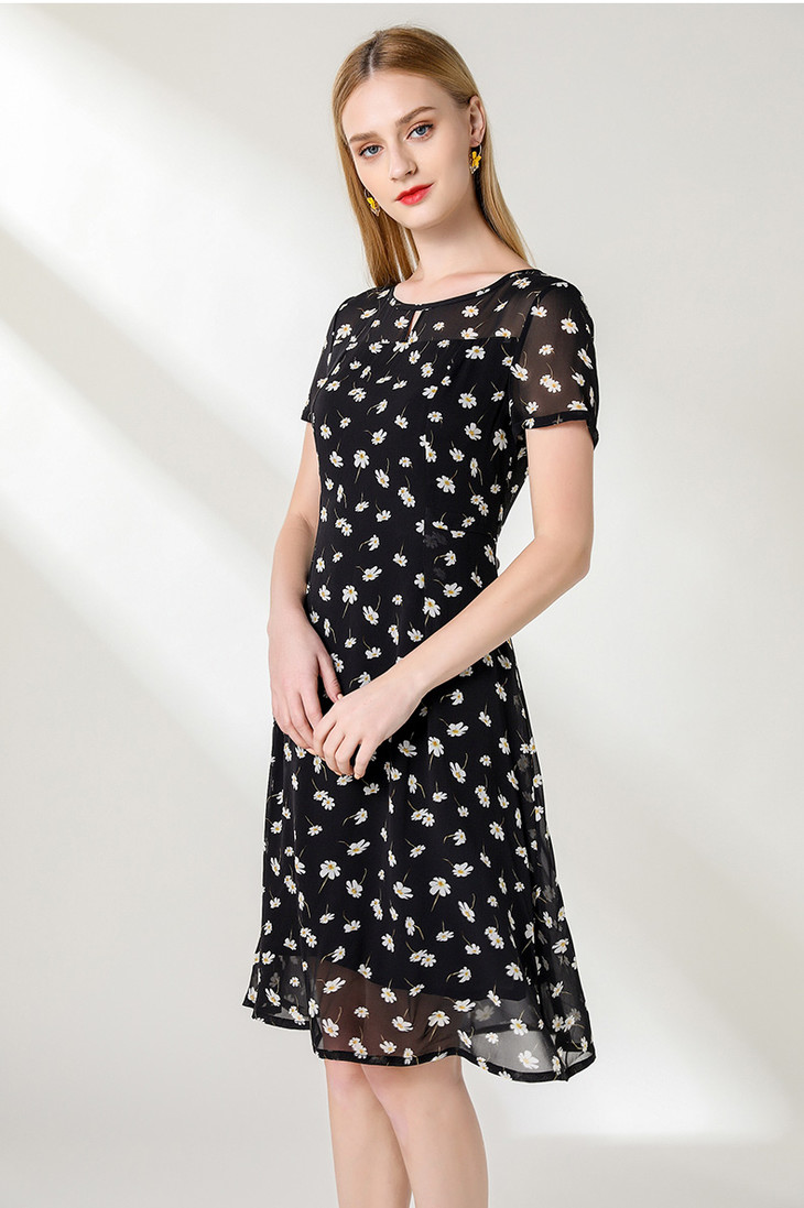 乔万尼夏季通勤印花时尚气质桑蚕真丝中长款连衣裙EN2E583