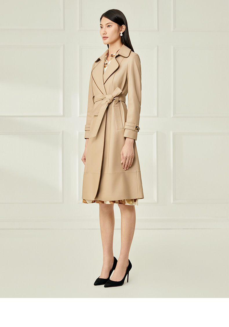 EITIE爱特爱女装早秋系领蕾丝镂空勾花喇叭袖大红连衣裙C1807150
