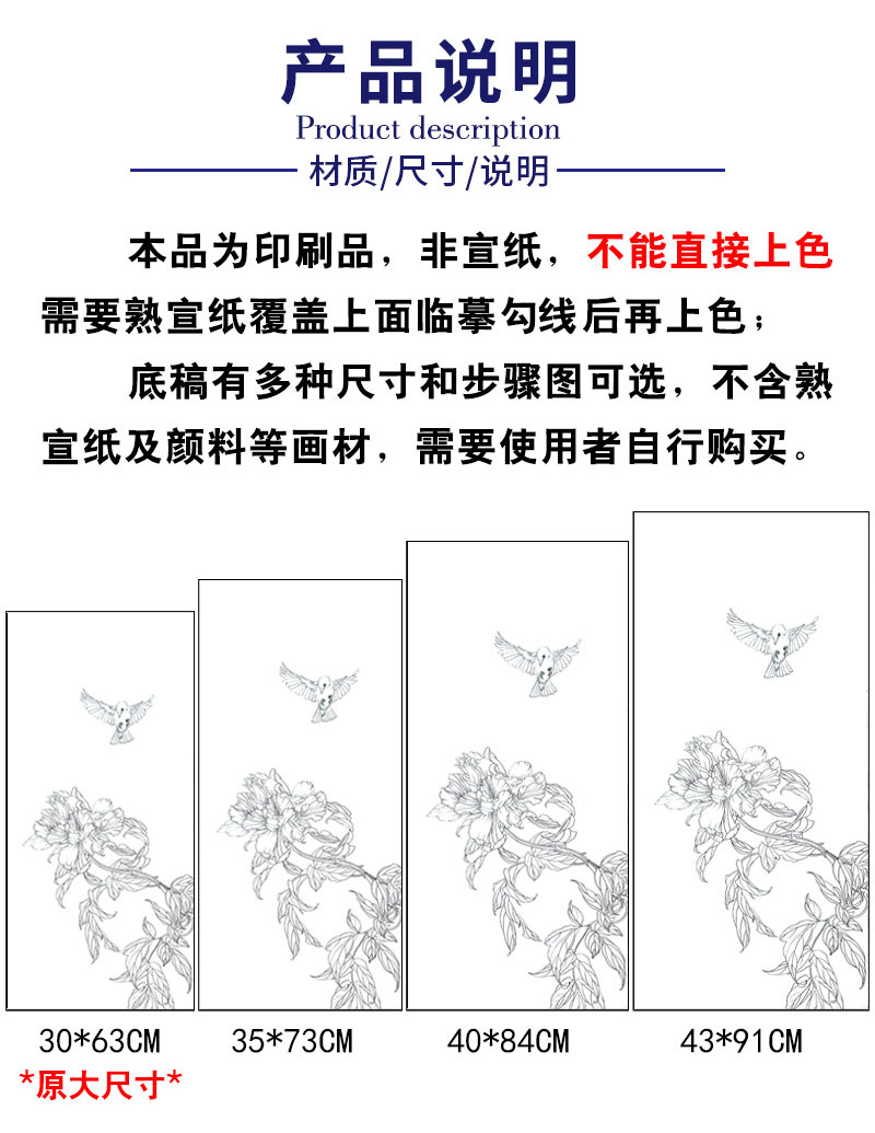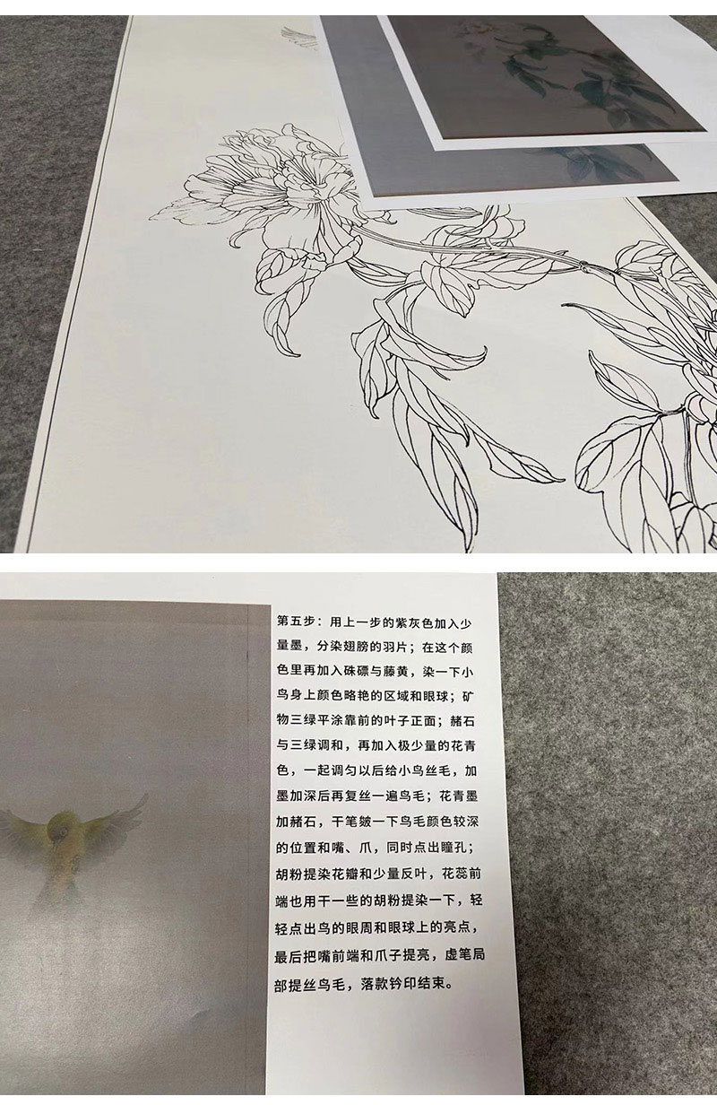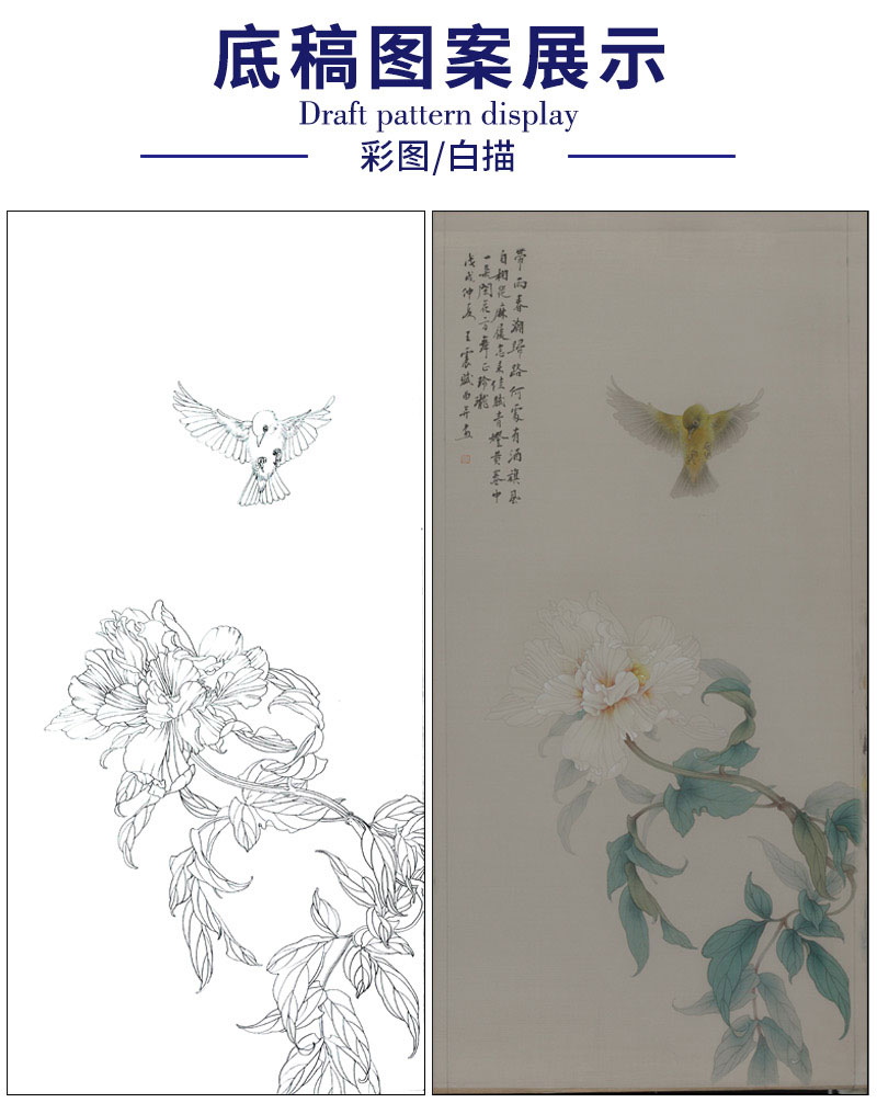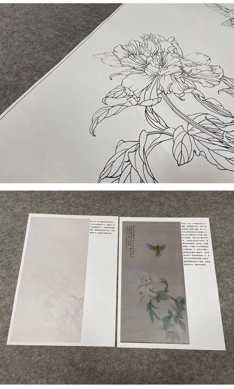 【有步骤】王震工笔画白描底稿《一朵闲花方舞》牡丹初学者临摹花鸟线稿WZ16