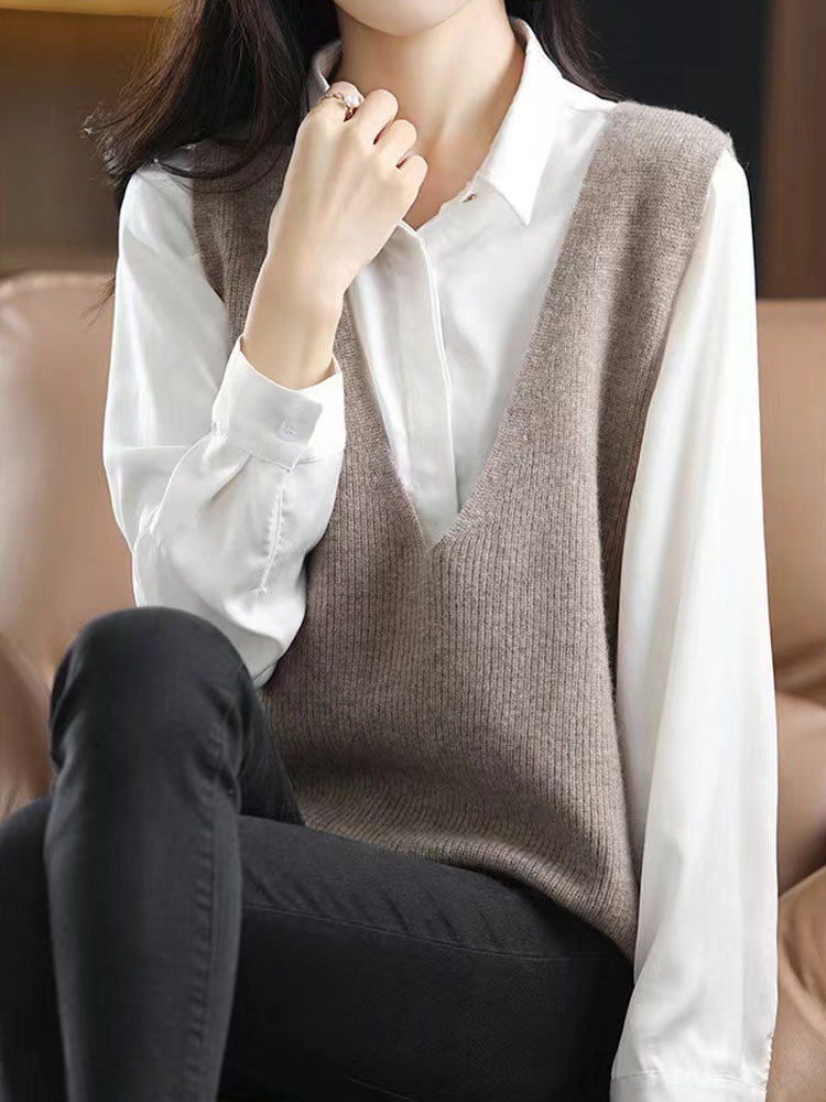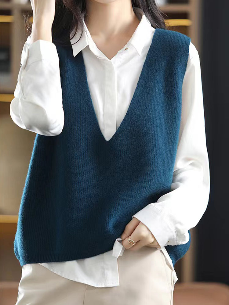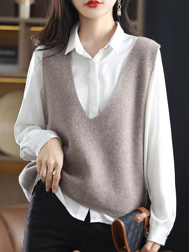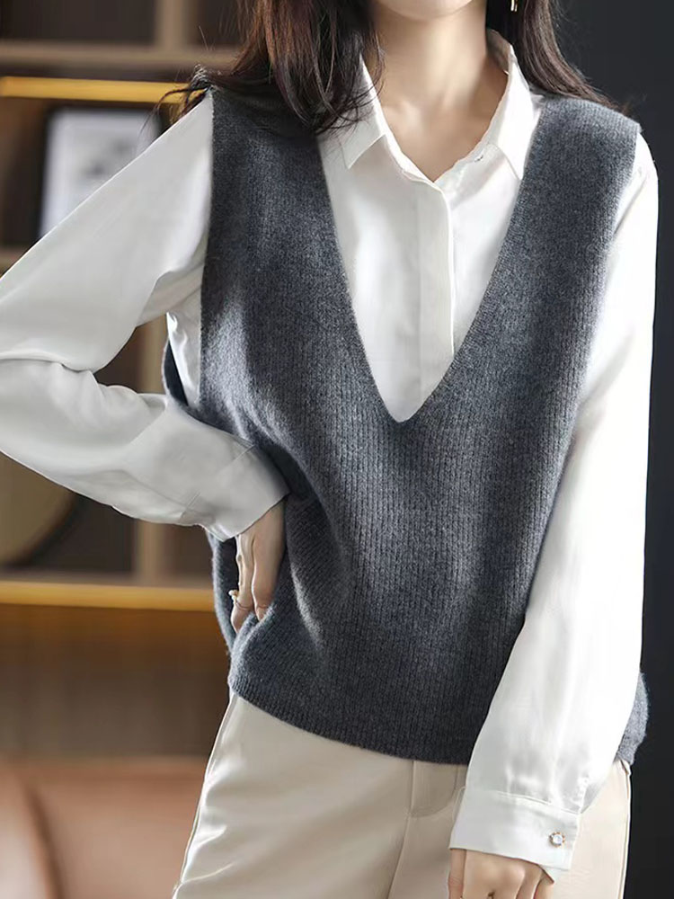 纤束马叠穿神器深V领针织马甲 XFT-0189