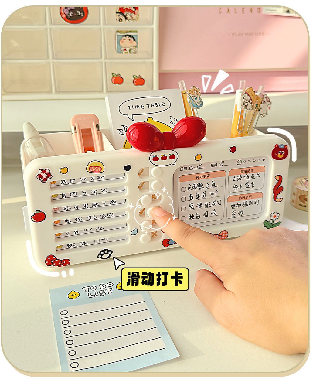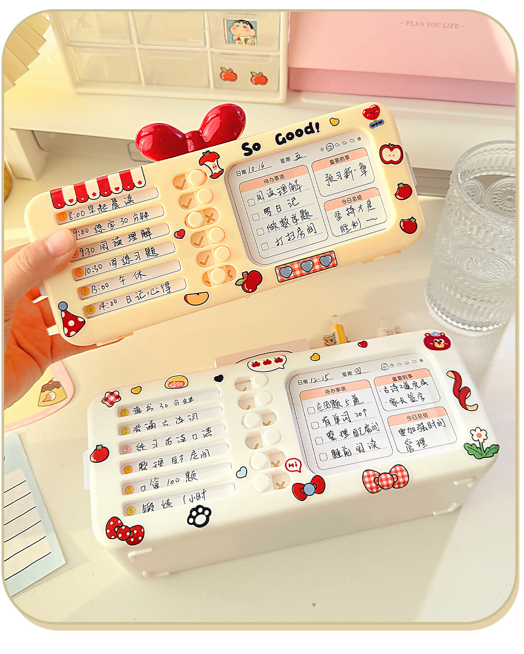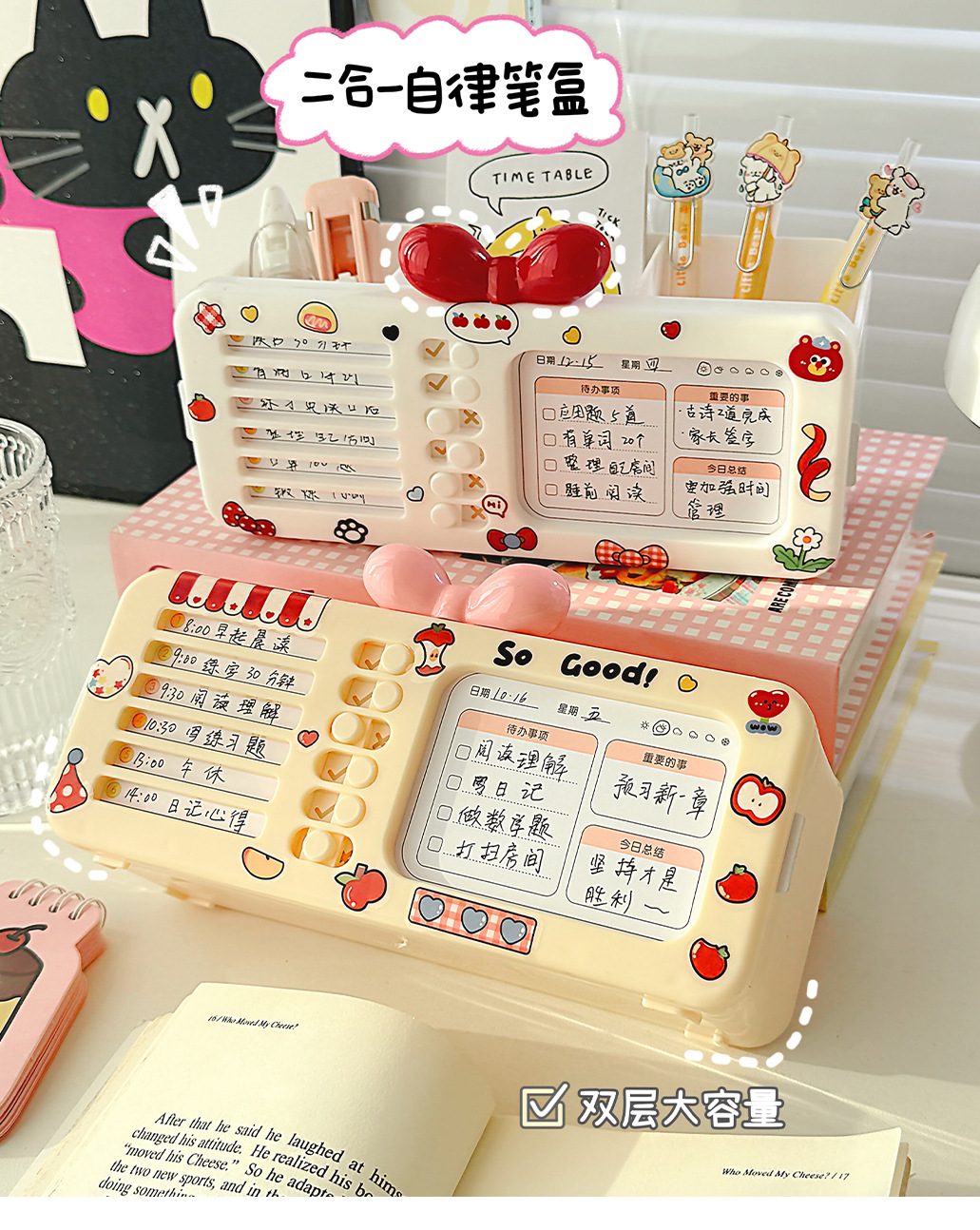 【二合一自律笔盒❗双层大容量】打卡器文具收纳盒笔筒多功能女孩款磁吸笔盒网红新款女生多层铅笔。rg