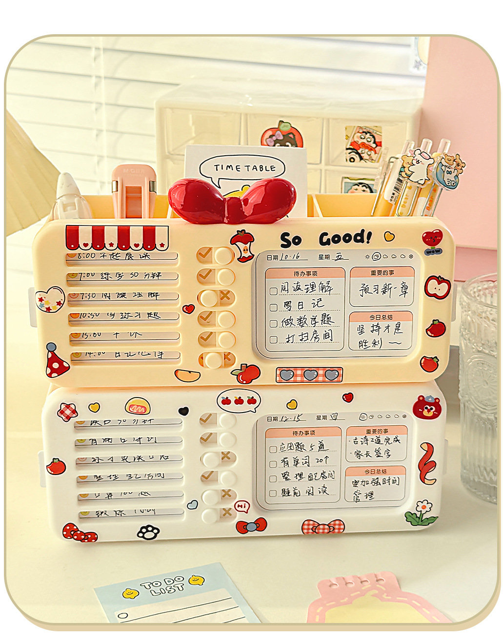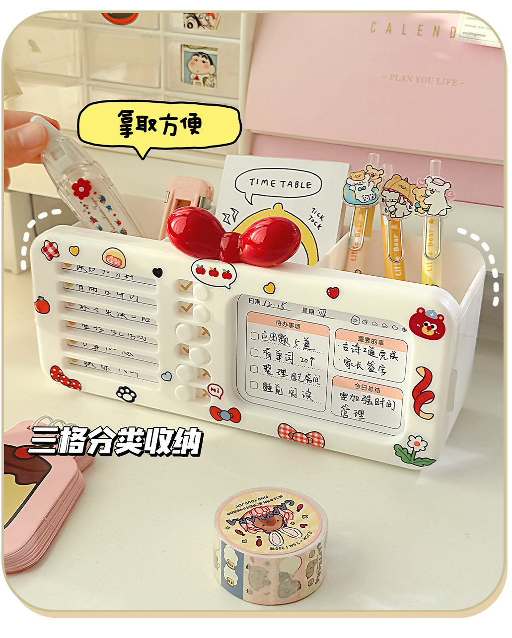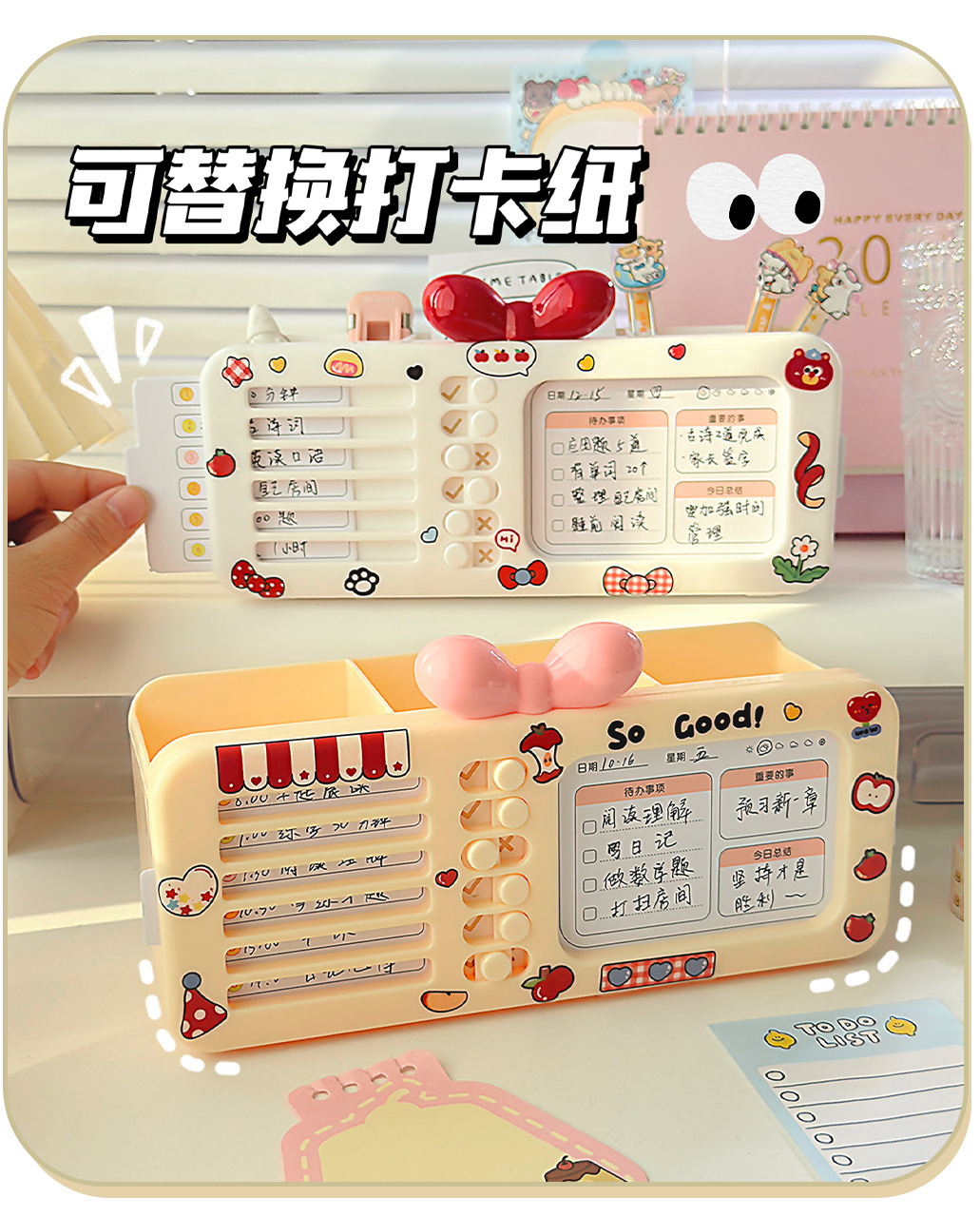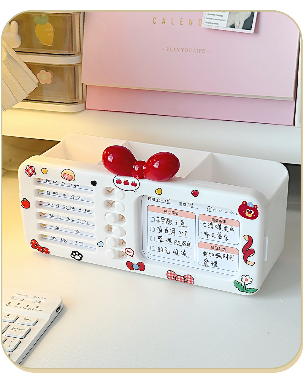 【二合一自律笔盒❗双层大容量】打卡器文具收纳盒笔筒多功能女孩款磁吸笔盒网红新款女生多层铅笔。rg