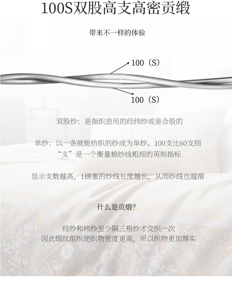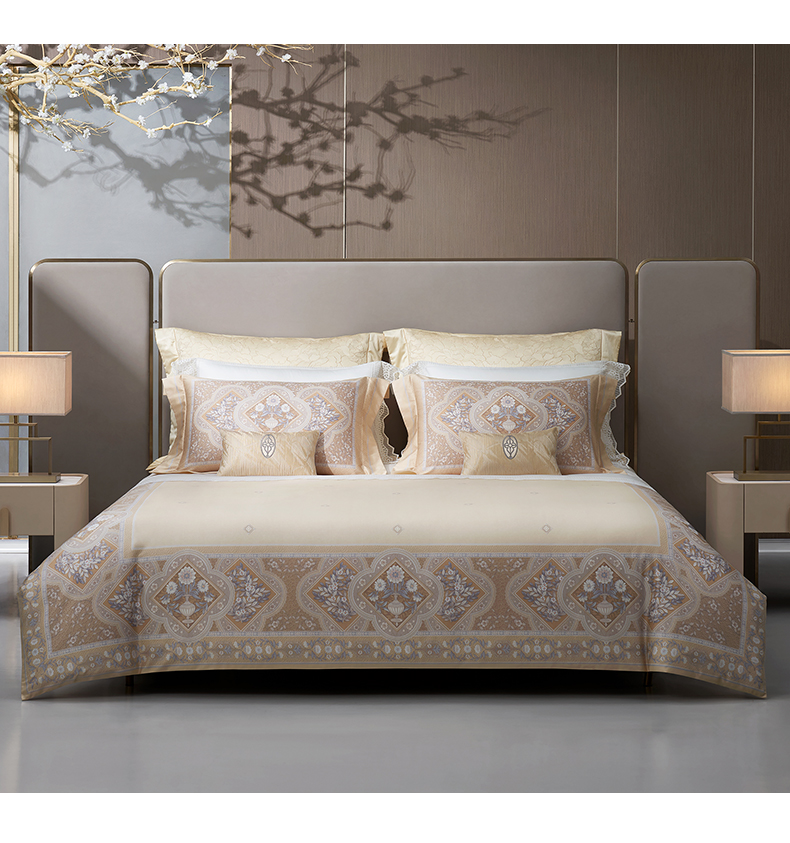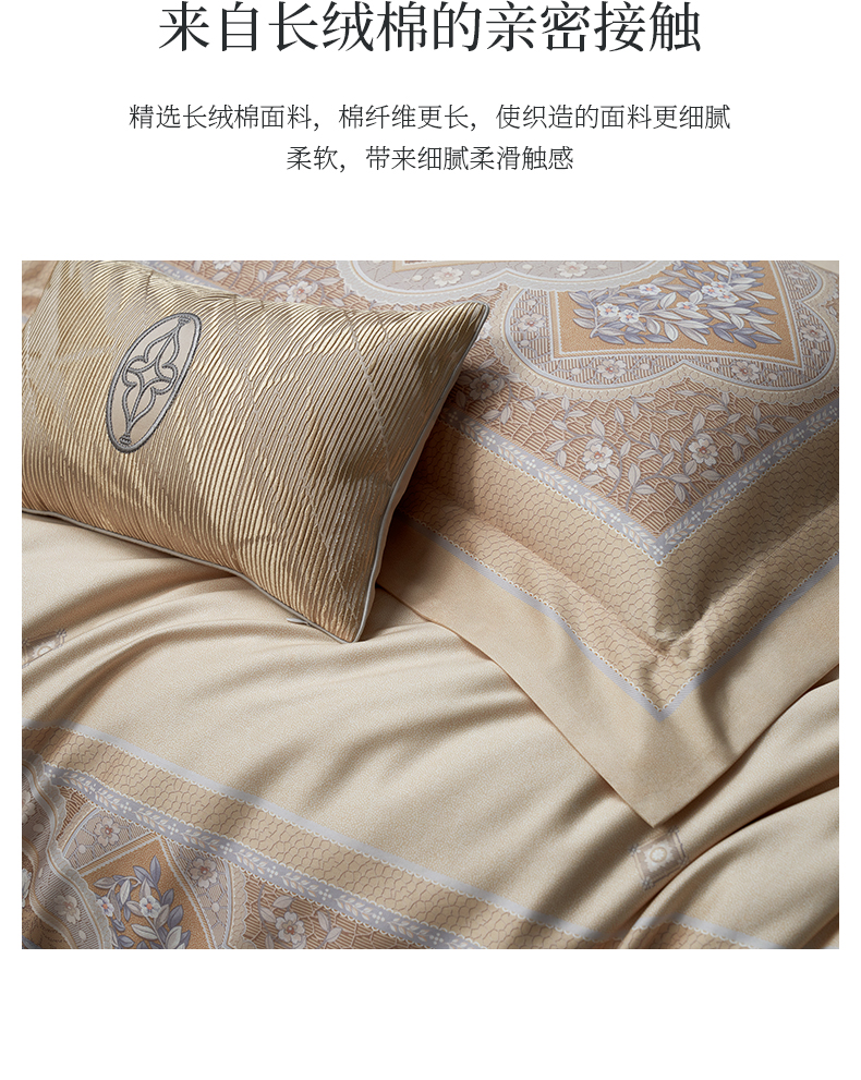 whinny/惠谊 新中式100s新疆长绒棉贡缎独幅数码印花四件套 雅望