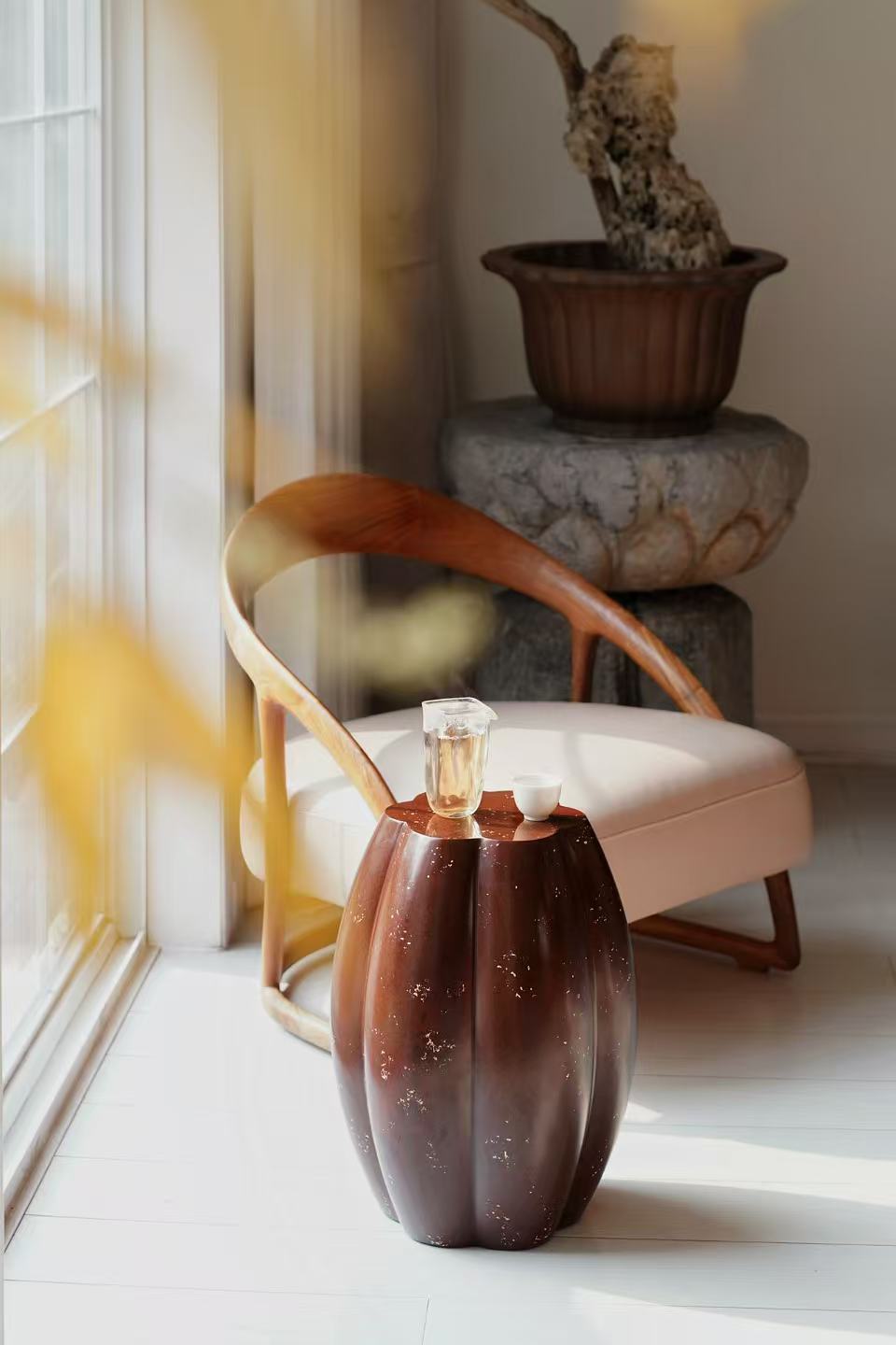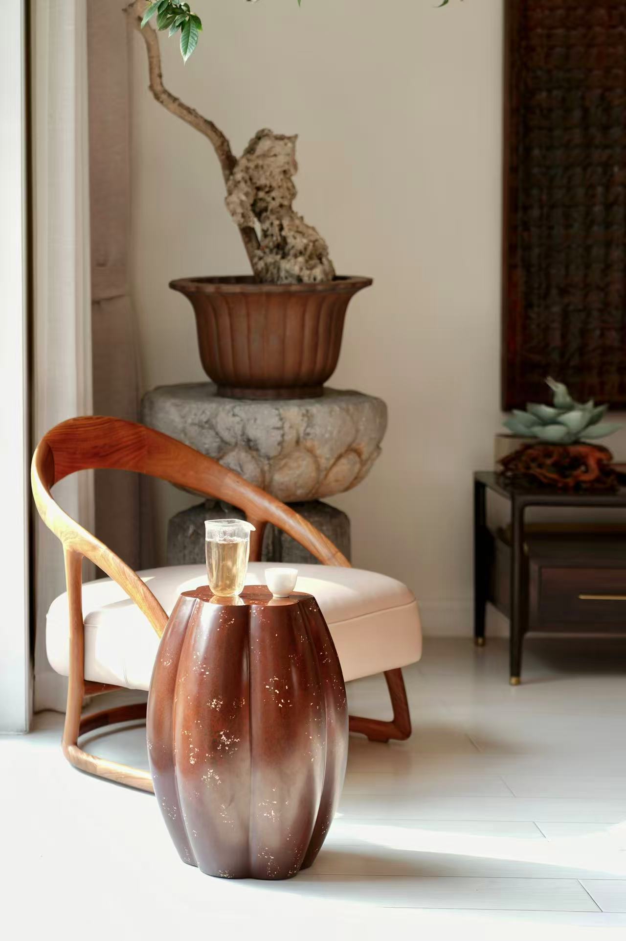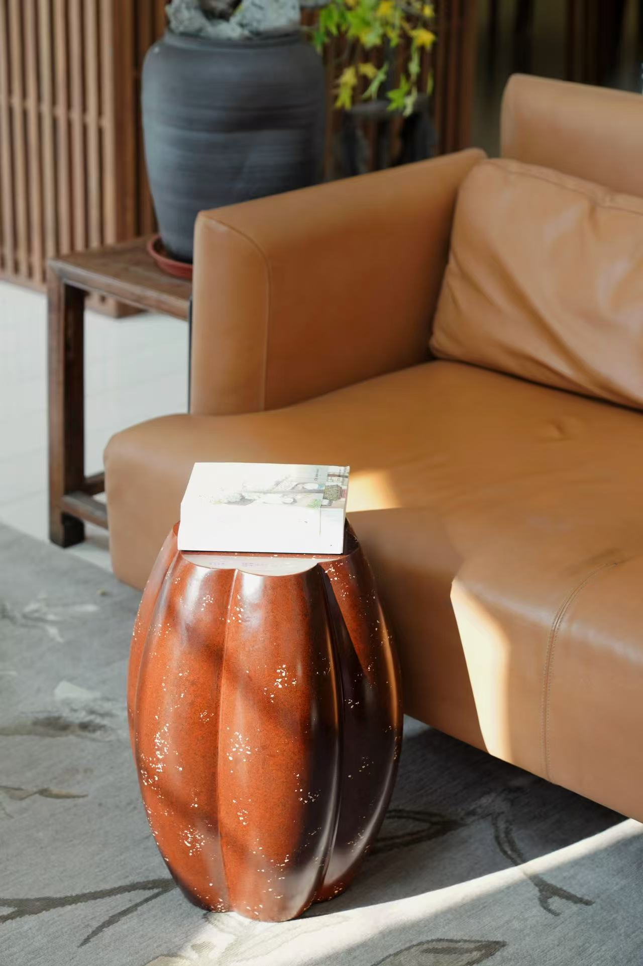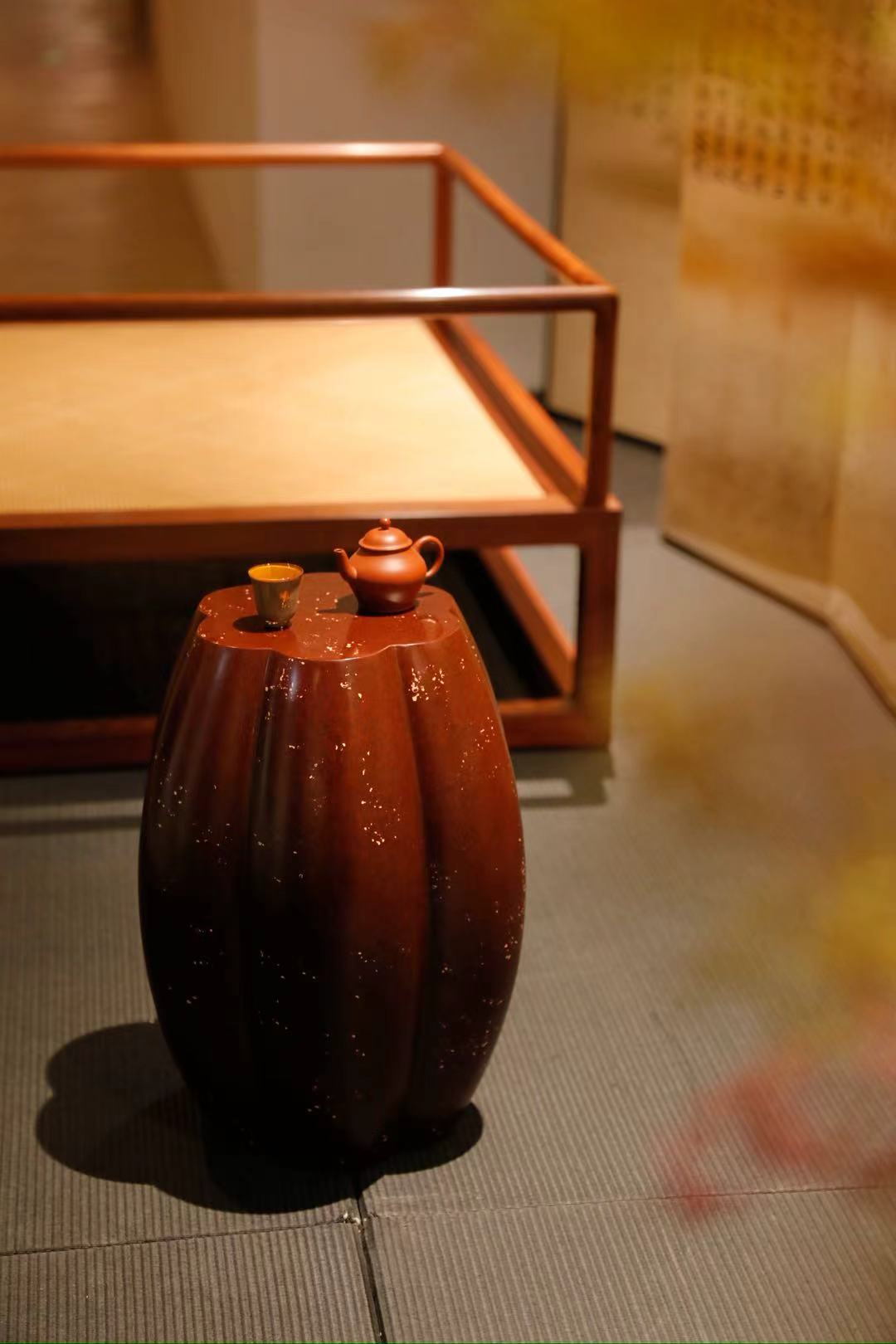 大漆坐玉秀墩 栗赭