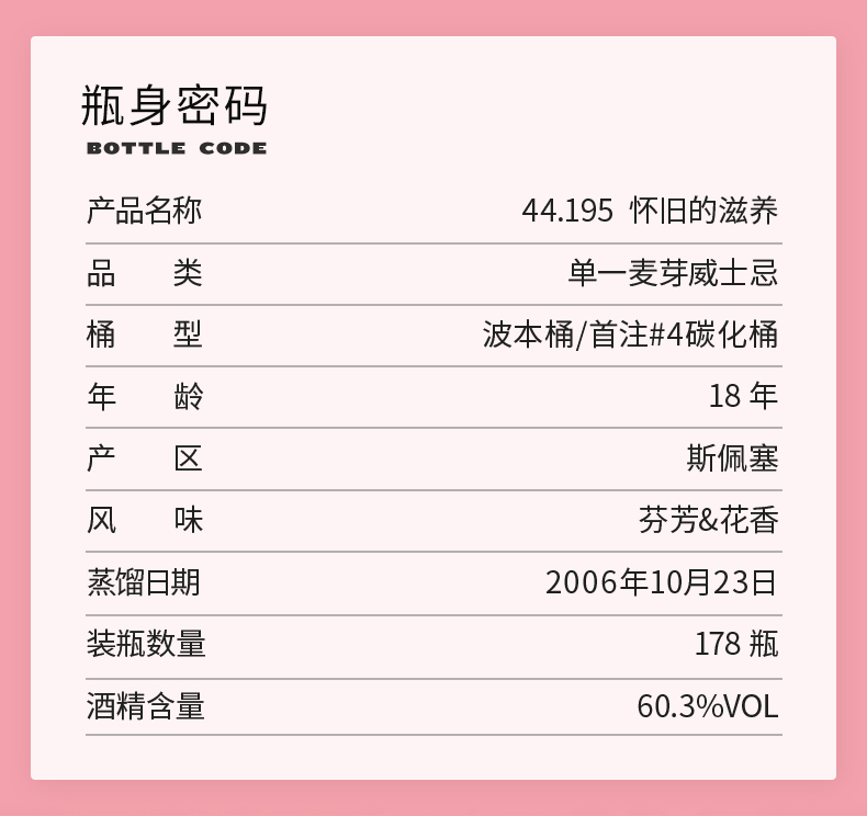 【SMWS】 44.195 怀旧的滋养 18年 单一麦芽 威士忌 洋酒
