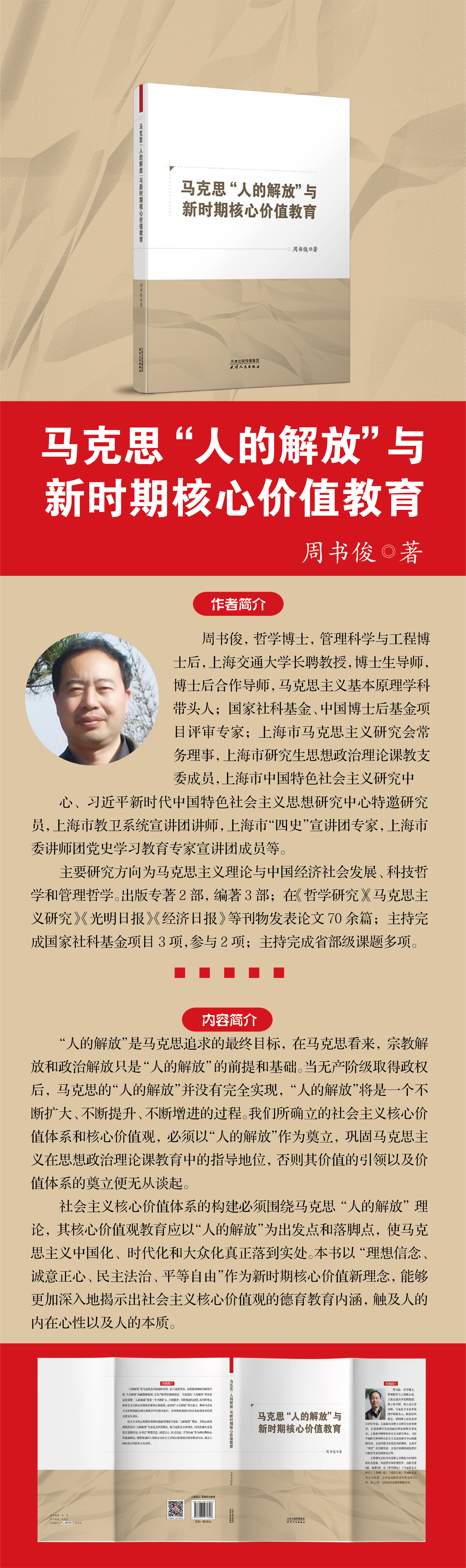 周书俊,河北省临西县人,中共党员,哲学博士,管理科学与工程博士后,上海交通大学长聘教授,博士生导师,博士后合作导师,马克思主义基本原理学科带头人。国家社科基金、中国博士后基金项目评审专家。中国伦理协会会员,中国产业哲学学会理事,邓小平生评研究会理事,上海市马克思主义研究会常务理事,上海市研究生思想政治理论课教支委成员,上海市中国特色社会主义研究中心、习近平新时代中国特色社会主义思想研究中心特邀研究员,上海市教卫系统宣讲团讲师,上海市“四史”宣讲团专家,上海市委讲师团党史学习教育专家宣讲团成员等。主要研究方向为马克思主义理论与中国经济社会发展,科技哲学,管理哲学。出版专著两部,编著三部;在《哲学研究》《马克思主义研究》《光明日报》《经济日报》等刊物发表论文七十余篇;主持完成国家社科基金项目(国家社科基金重大项目子课题、国家社科基金专项)三项,参与两项;主持完成省部级课题多项。