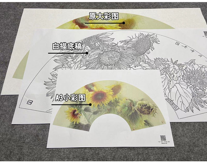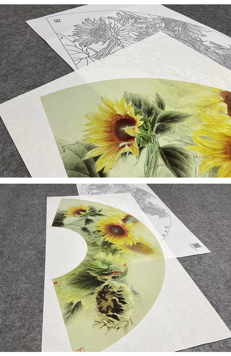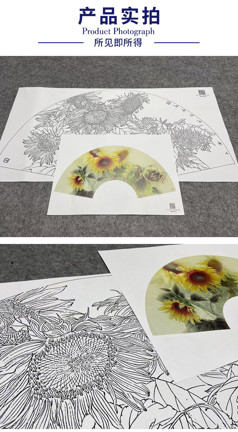 【大彩图】龚雪青工笔画白描底稿扇面小品《向日葵》临摹勾线花鸟线稿XQ19