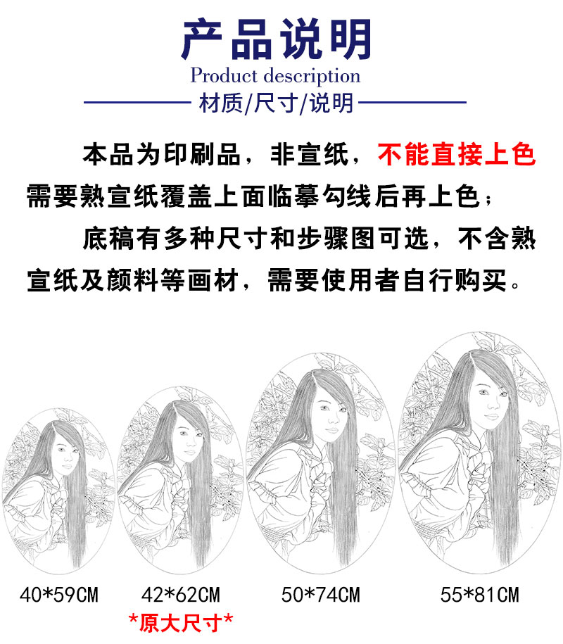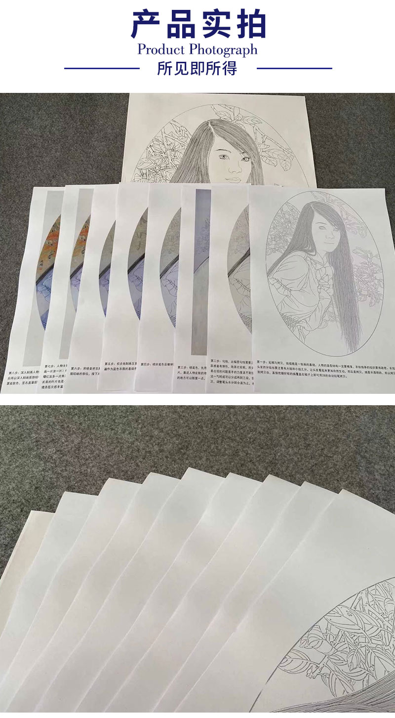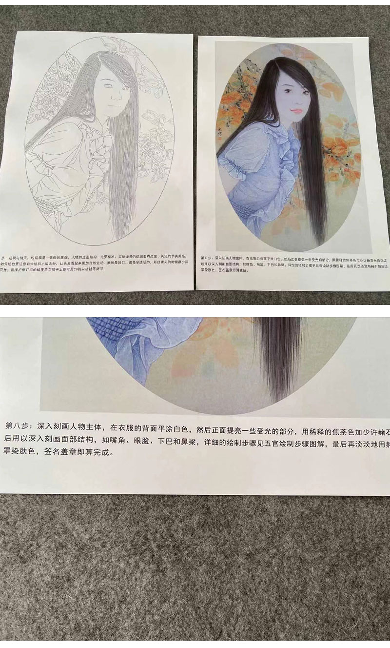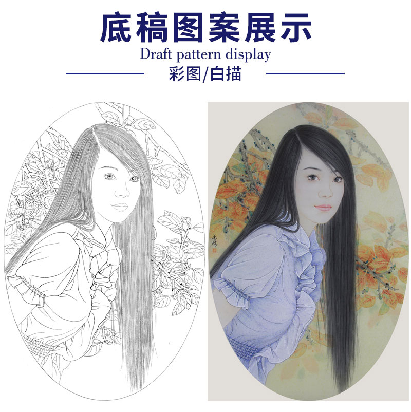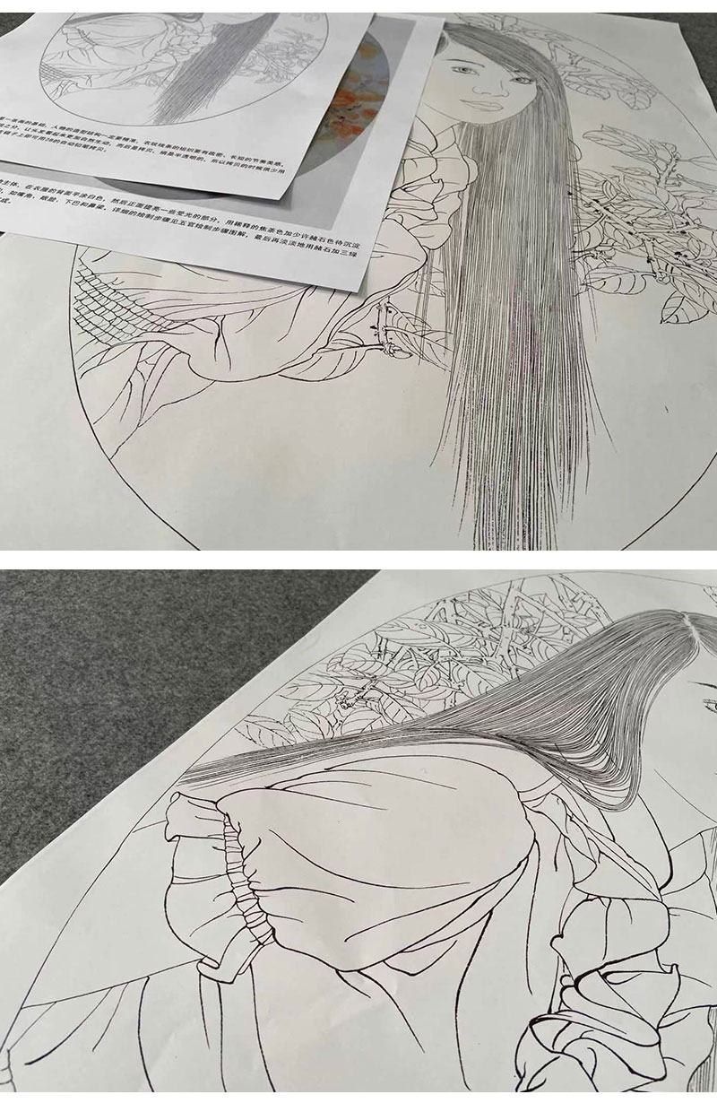 【有步骤、大彩图】盘虎杰工笔画白描底稿现代人物小品《恋青丝》初学者临摹人物线稿HJ41